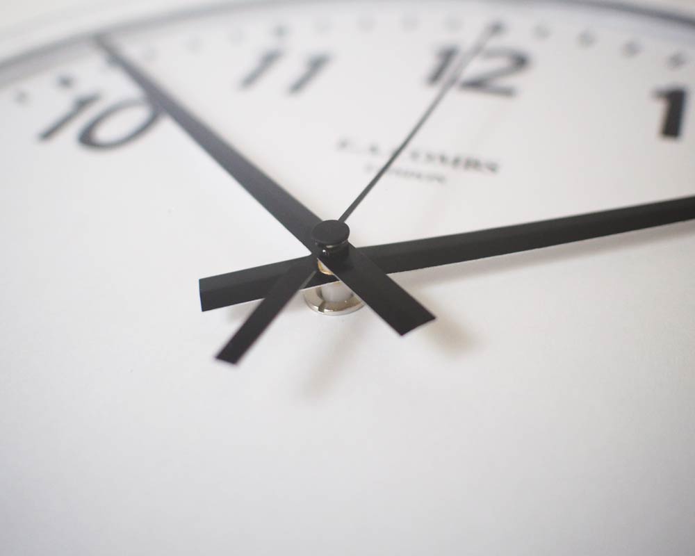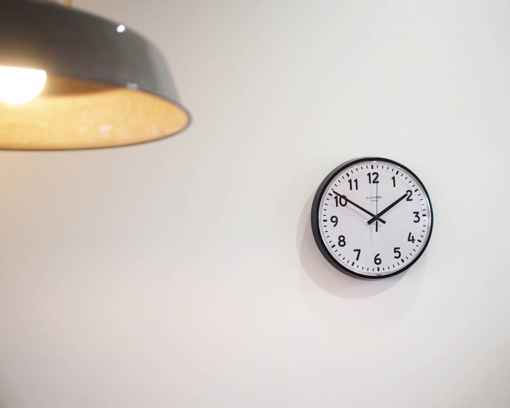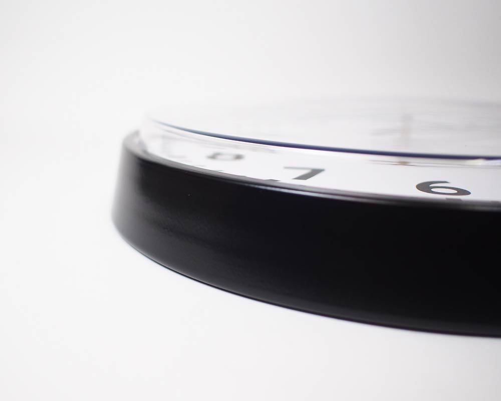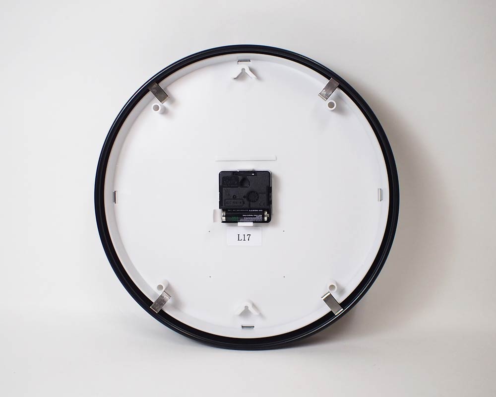 Pacific Furniture Service/パシフィックファニチャースサービスとイギリスのE.A.COMBS/E.A.コームス社と共同開発したウォールクロック/掛け時計です。1895年に創業し現在もイギリスで製作し、公共機関や工業用の大時計、スポーツ用のストップウォッチから家庭用の壁掛け時計まで広く供給している、ロンドンに拠点を置くE.A. COMBS社とP.F.S.が共同開発した掛け時計です。一瞥で時間を認識できるよう、余計なデザインを排除して時計本来の機能を追求しています。Bar/棒指標とArabic/数字指標の2種類からお選びいただけ、Arabic/数字指標はさらにフォントとフレームカラーが違うA,Bの2種類をご用意。共に潔い程の視認性のよい機能的な文字盤になっています。(こちらはArabic/数字指標のAタイプです) サイズは家庭にピッタリな12.5インチ(315mm)で、マットブラックの金属ボディにドーム型の樹脂製風防を備えます。すべてドイツ製のムーブメントを使用しています。※仕様変更により以前のモデルから文字盤を目に優しいオフホワイト色になりました。