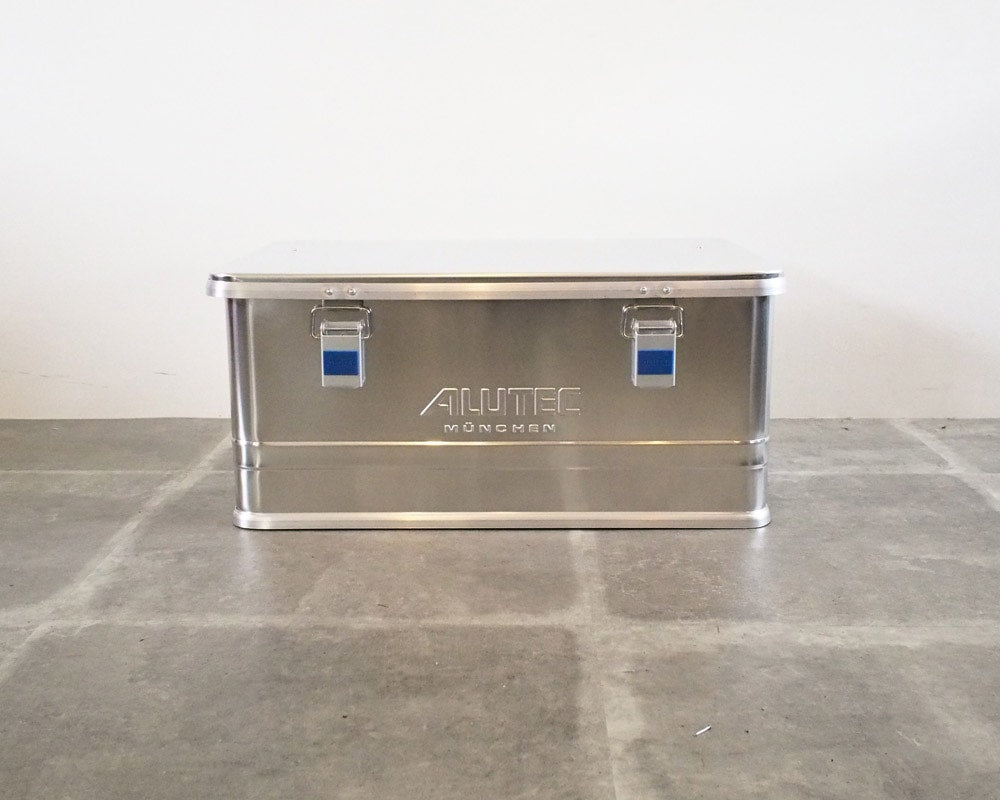 非常に軽量で耐腐食性にすぐれた、ドイツ「ALUTEC/アルテック」社のアルミコンテナです。ヨーロッパでは航空貨物輸送にも採用されている、十分な強度を有するアルミコンテナです。ガレージに散らばる小物の整理や、食料品、衣類、ショップでの在庫ストックなど蓋を閉めて保管しておきたいものの収納に最適です。非常に軽量なため、キャンプ用具のような散らかりがちなものをまとめ、そのまま持ち運びするのにも最適で、そのままテーブルとしても使用できます。蓋の内側にはストラップが付いていて、開いた時にちょうどいい位置に蓋が止まるようになっています。バックルでロックすることができ、持ち運び時にも安心です。また、防水ではありませんが、多少の水分の侵入は防ぐようなゴムパッキンも備えられています。