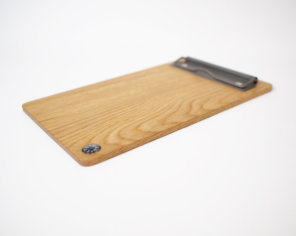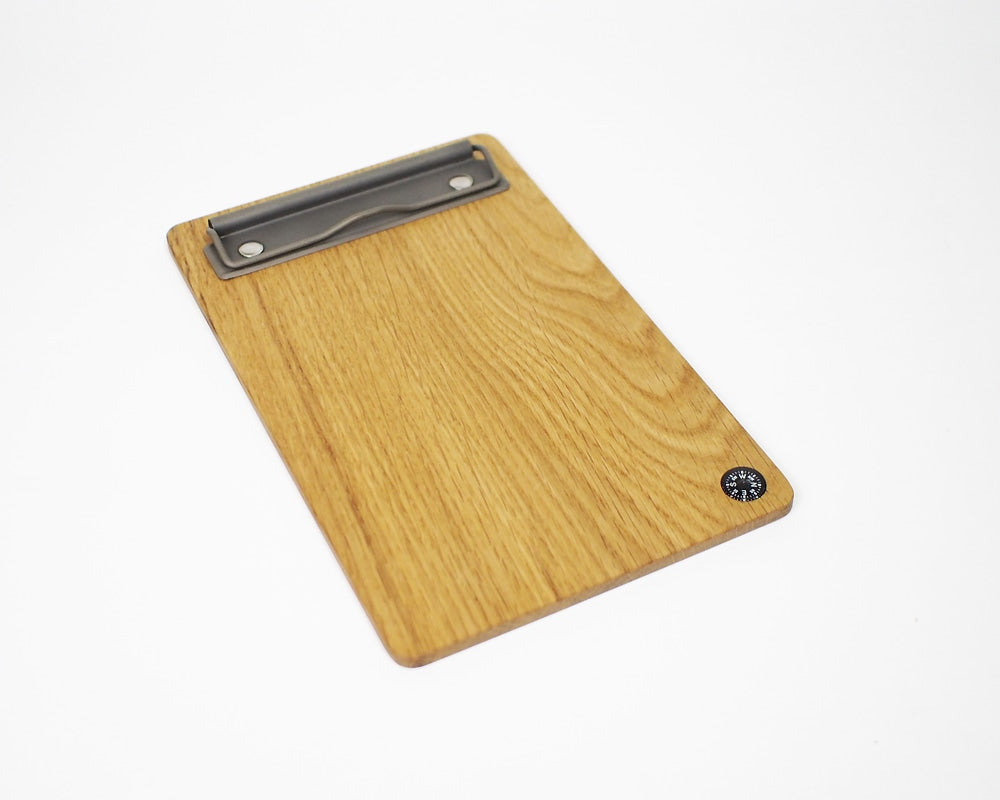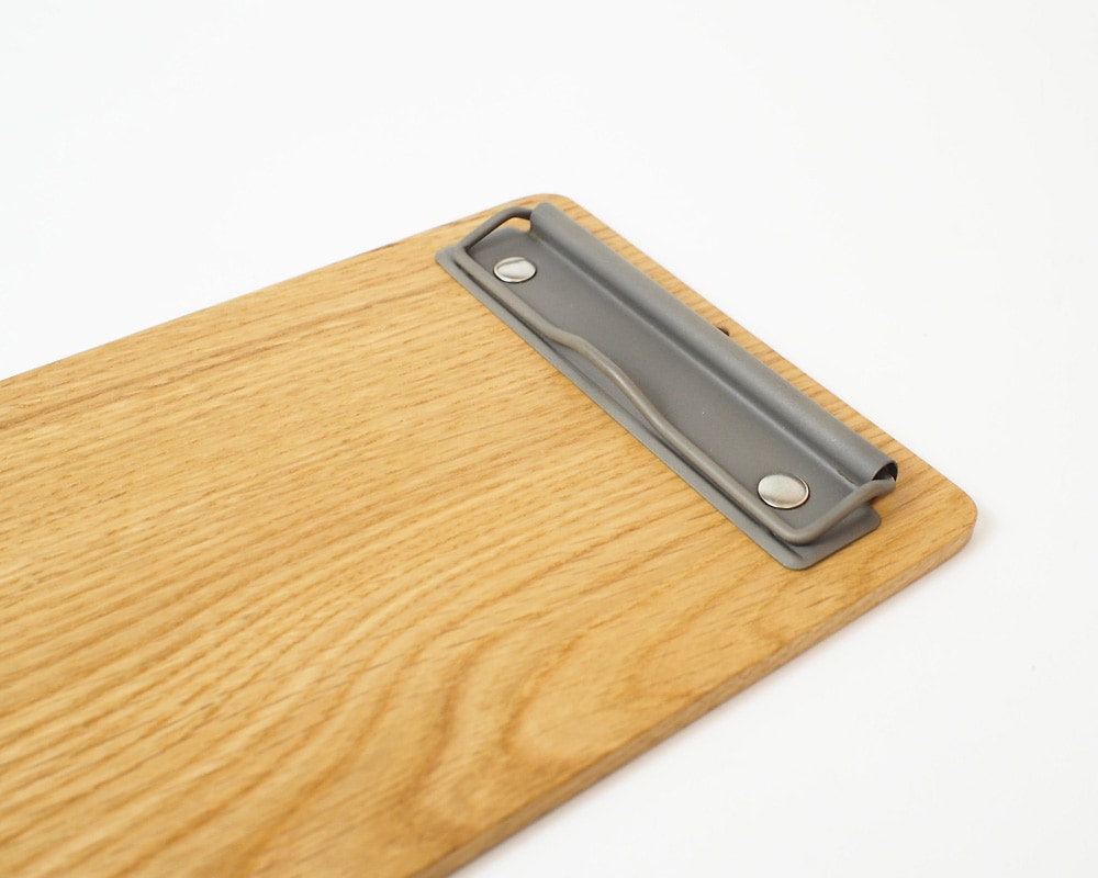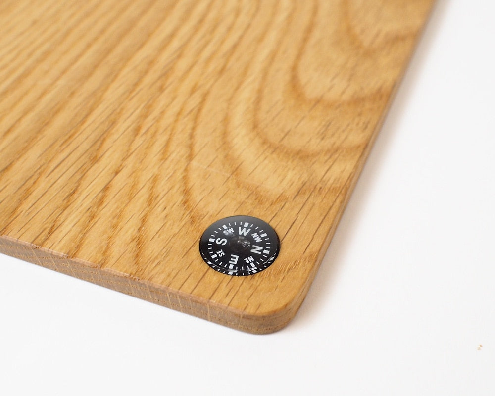 PAPERSKY/ペーパースカイが「木印」へ別注したオリジナルサイズの木製コンパス付きクリップボードです。 京都を拠点に活動する木工職人・溝上吉郎によるブランド「木印」による、旅にも山にも便利なコンパス付きクリップボード。 シンプルで機能的なデザインのクリップボードは、ある木工所の倉庫から出てきた、昔の木製のクリップボードに感銘を受けて製作をはじめたものだそう。家具製作にも使われる高品質なナラ材を使用することで、机の上で書いているような筆先の心地良さを実感させてくれます。 この定番のクリップボードにコンパスを付けて、旅やアウトドアでも使えるようにカスタムしたPAPERSKYオリジナルのクリップボードは、旅先や山のなかで地図を広げて歩き回っても、このクリップボードがあれば方角に迷うことはありません。 マップルの山と高原地図のサイズに合わせた、PAPERSKYオリジナルサイズになります。