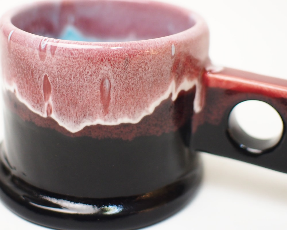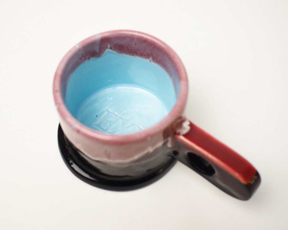 ポストモダンを彷彿させる独創的なフォルム。「ECHO PARK POTTERY(エコ・パーク・ポタリー)」のマグカップ。 Peter Shire(ピーター・シャイヤー)は、現在ロサンゼルスのスタジオで様々な作品を製作するアーティスト。 彼は80年代イタリアのポストモダンの代表的なデザインチーム「Memphis」のメンバーの中で唯一のアメリカ人でもありました。 そのPeter Shireが主宰するEcho Park Potteryのマグはポストモダンを彷彿させる、独特なかたちや釉薬が掛けられた、とても魅力的なものとなっています。 キャンバスで付けられたテクスチャー、2色での分け掛けやスプラッターと呼ばれる跳ね掛けによる色付けも、空間を鮮やかにしてくれます。 また、裏面には、Peterの遊び心が感じられるスタンプが施されこのマグをより愛着の湧くポイントにしてくれます。 そして何より、見た目からは想像できない使い勝手の良さも特徴です。