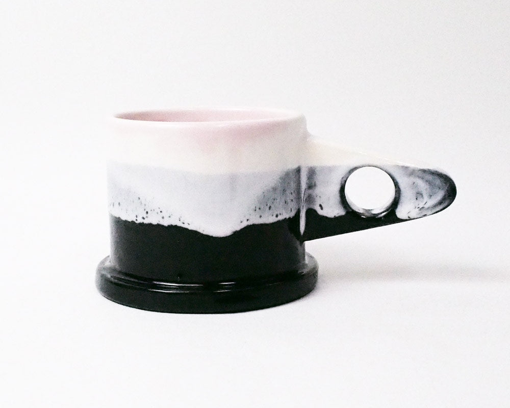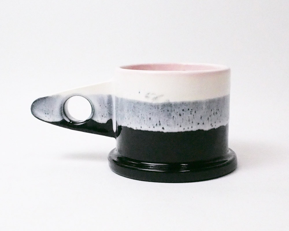 ポストモダンを彷彿させる独創的なフォルム。「ECHO PARK POTTERY(エコ・パーク・ポタリー)」のマグカップ。 Peter Shire(ピーター・シャイヤー)は、現在ロサンゼルスのスタジオで様々な作品を製作するアーティスト。 彼は80年代イタリアのポストモダンの代表的なデザインチーム「Memphis」のメンバーの中で唯一のアメリカ人でもありました。 そのPeter Shireが主宰するEcho Park Potteryのマグはポストモダンを彷彿させる、独特なかたちや釉薬が掛けられた、とても魅力的なものとなっています。 キャンバスで付けられたテクスチャー、2色での分け掛けやスプラッターと呼ばれる跳ね掛けによる色付けも、空間を鮮やかにしてくれます。 また、裏面には、Peterの遊び心が感じられるスタンプが施されこのマグをより愛着の湧くポイントにしてくれます。 そして何より、見た目からは想像できない使い勝手の良さも特徴です。