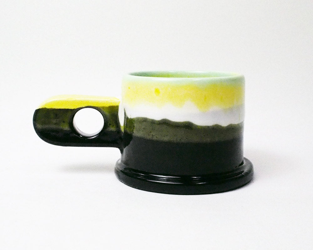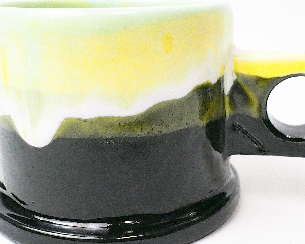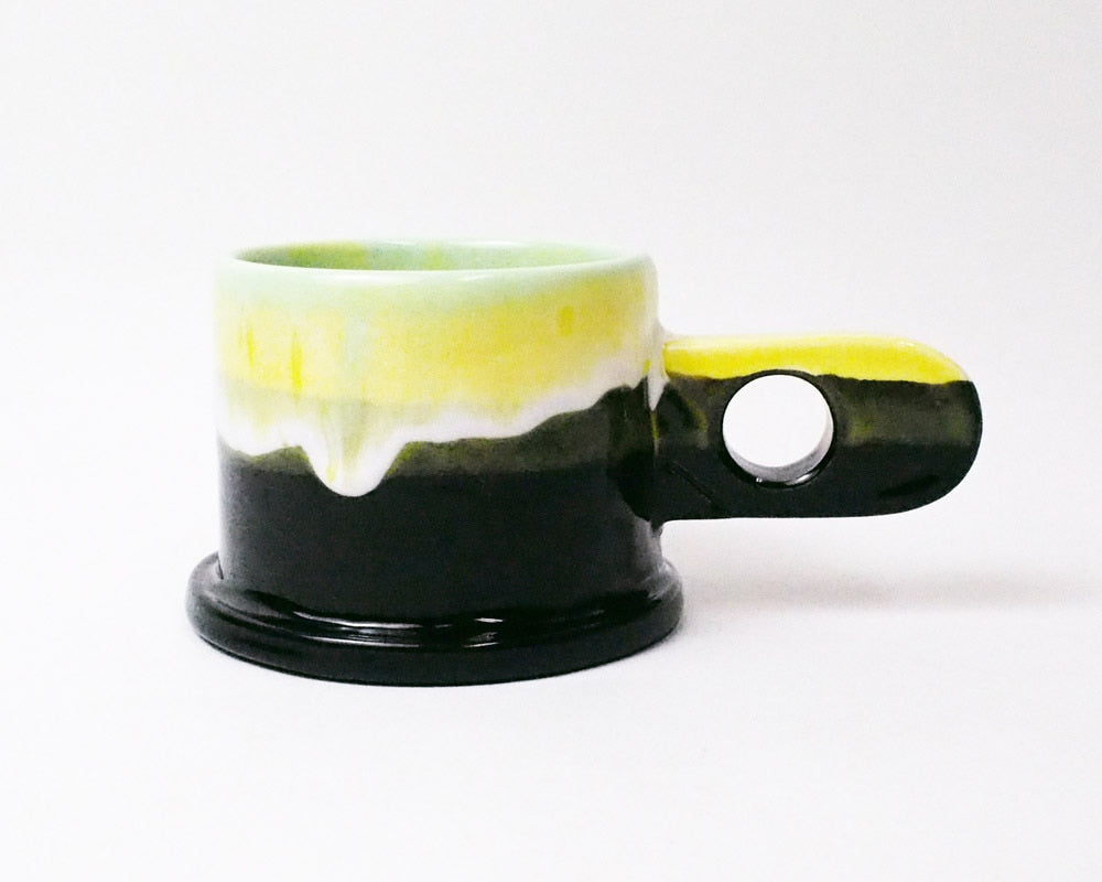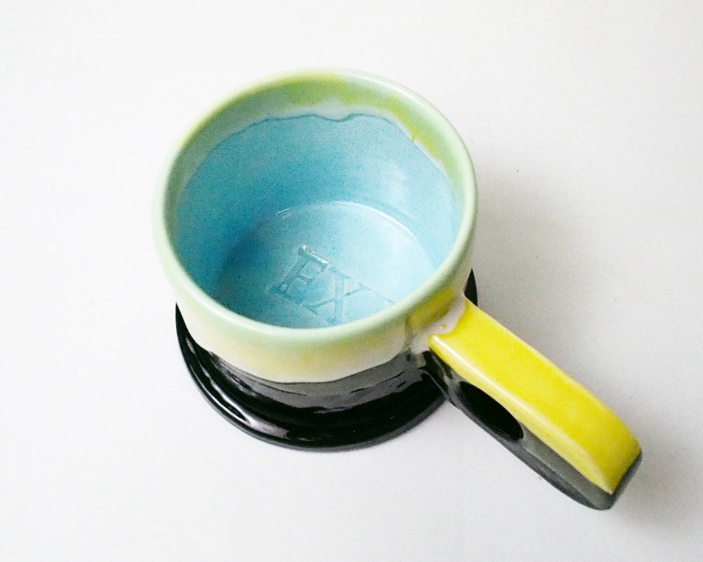 ポストモダンを彷彿させる独創的なフォルム。「ECHO PARK POTTERY(エコ・パーク・ポタリー)」のマグカップ。 Peter Shire(ピーター・シャイヤー)は、現在ロサンゼルスのスタジオで様々な作品を製作するアーティスト。 彼は80年代イタリアのポストモダンの代表的なデザインチーム「Memphis」のメンバーの中で唯一のアメリカ人でもありました。 そのPeter Shireが主宰するEcho Park Potteryのマグはポストモダンを彷彿させる、独特なかたちや釉薬が掛けられた、とても魅力的なものとなっています。 キャンバスで付けられたテクスチャー、2色での分け掛けやスプラッターと呼ばれる跳ね掛けによる色付けも、空間を鮮やかにしてくれます。 また、裏面には、Peterの遊び心が感じられるスタンプが施されこのマグをより愛着の湧くポイントにしてくれます。 そして何より、見た目からは想像できない使い勝手の良さも特徴です。