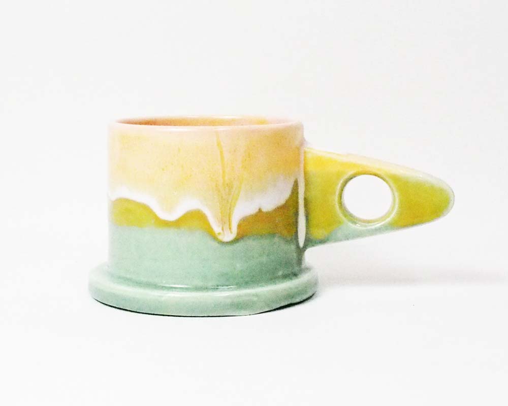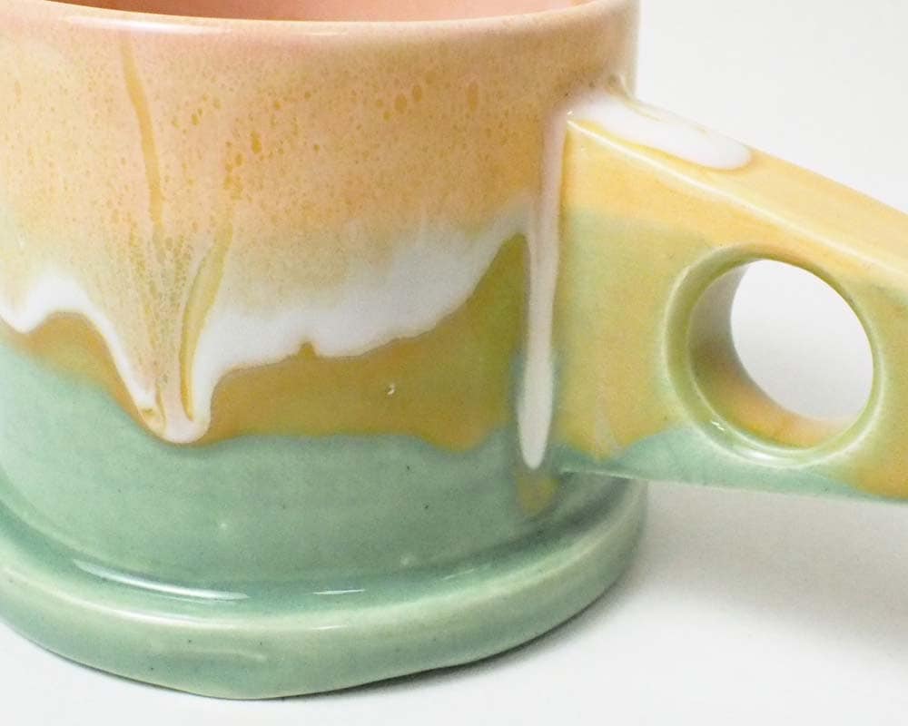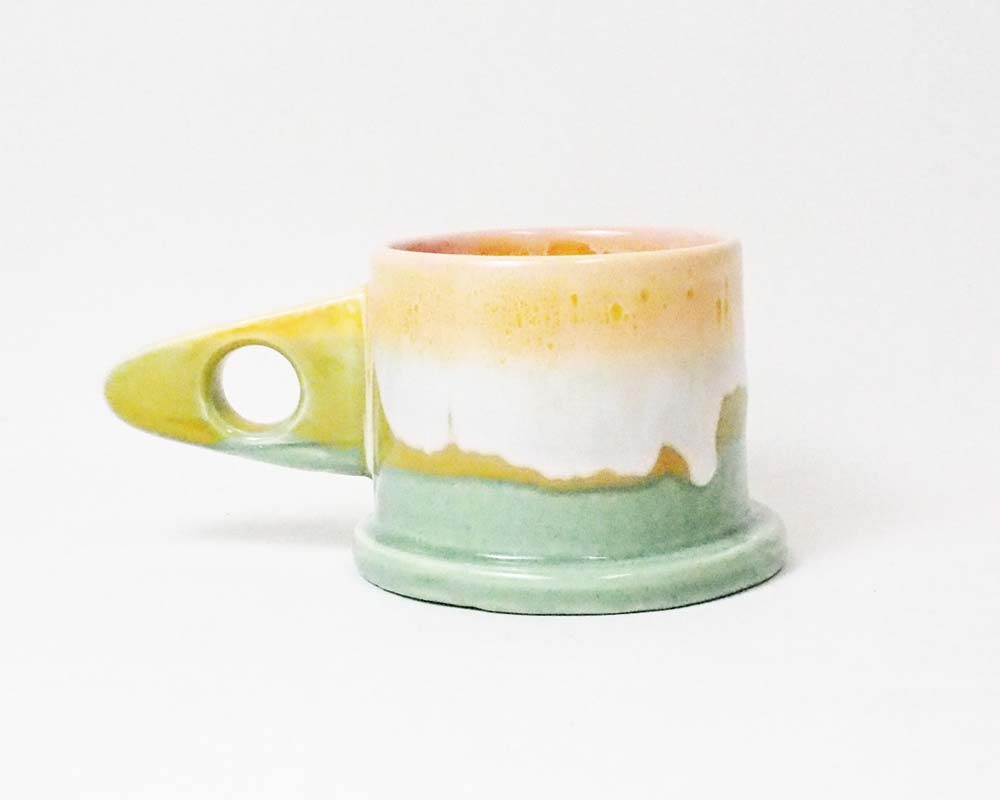 ポストモダンを彷彿させる独創的なフォルム。「ECHO PARK POTTERY(エコ・パーク・ポタリー)」のマグカップ。 Peter Shire(ピーター・シャイヤー)は、現在ロサンゼルスのスタジオで様々な作品を製作するアーティスト。 彼は80年代イタリアのポストモダンの代表的なデザインチーム「Memphis」のメンバーの中で唯一のアメリカ人でもありました。 そのPeter Shireが主宰するEcho Park Potteryのマグはポストモダンを彷彿させる、独特なかたちや釉薬が掛けられた、とても魅力的なものとなっています。 キャンバスで付けられたテクスチャー、2色での分け掛けやスプラッターと呼ばれる跳ね掛けによる色付けも、空間を鮮やかにしてくれます。 また、裏面には、Peterの遊び心が感じられるスタンプが施されこのマグをより愛着の湧くポイントにしてくれます。 そして何より、見た目からは想像できない使い勝手の良さも特徴です。