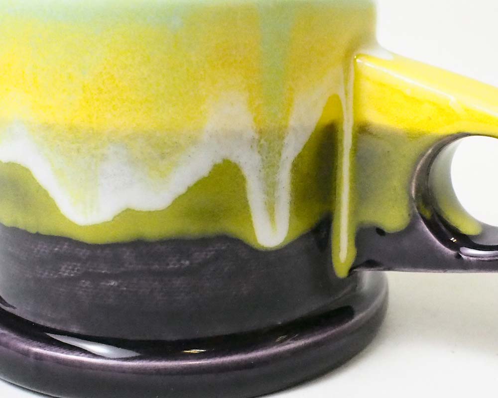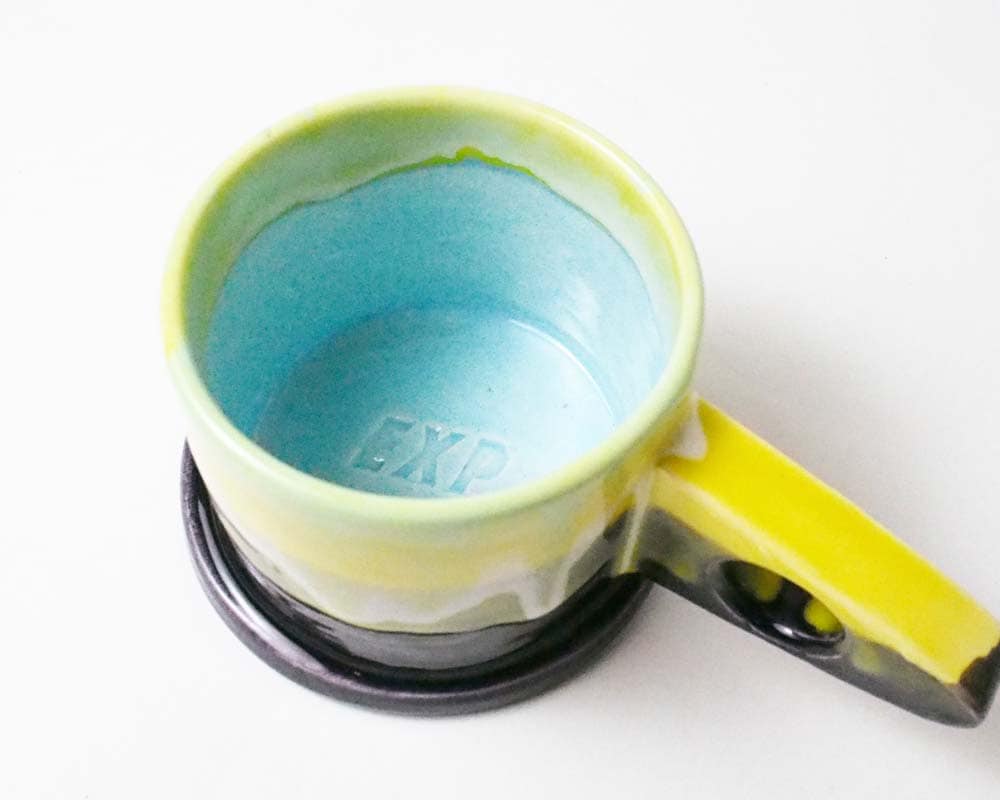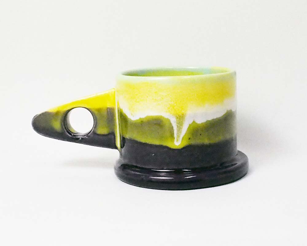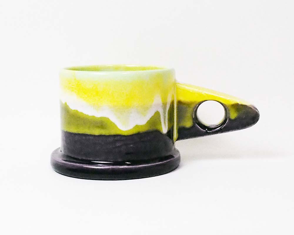 ポストモダンを彷彿させる独創的なフォルム。「ECHO PARK POTTERY(エコ・パーク・ポタリー)」のマグカップ。 Peter Shire(ピーター・シャイヤー)は、現在ロサンゼルスのスタジオで様々な作品を製作するアーティスト。 彼は80年代イタリアのポストモダンの代表的なデザインチーム「Memphis」のメンバーの中で唯一のアメリカ人でもありました。 そのPeter Shireが主宰するEcho Park Potteryのマグはポストモダンを彷彿させる、独特なかたちや釉薬が掛けられた、とても魅力的なものとなっています。 キャンバスで付けられたテクスチャー、2色での分け掛けやスプラッターと呼ばれる跳ね掛けによる色付けも、空間を鮮やかにしてくれます。 また、裏面には、Peterの遊び心が感じられるスタンプが施されこのマグをより愛着の湧くポイントにしてくれます。 そして何より、見た目からは想像できない使い勝手の良さも特徴です。