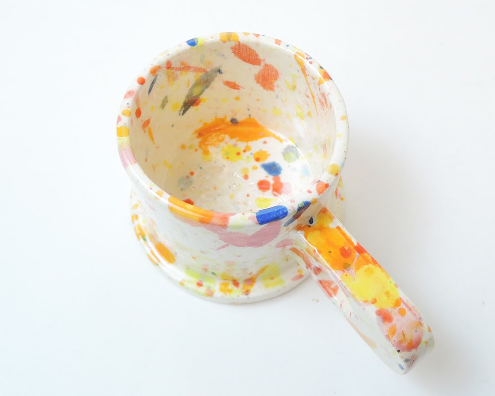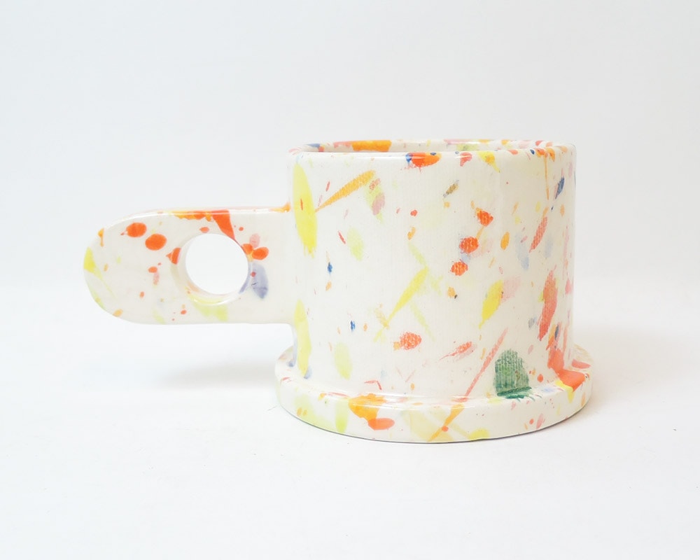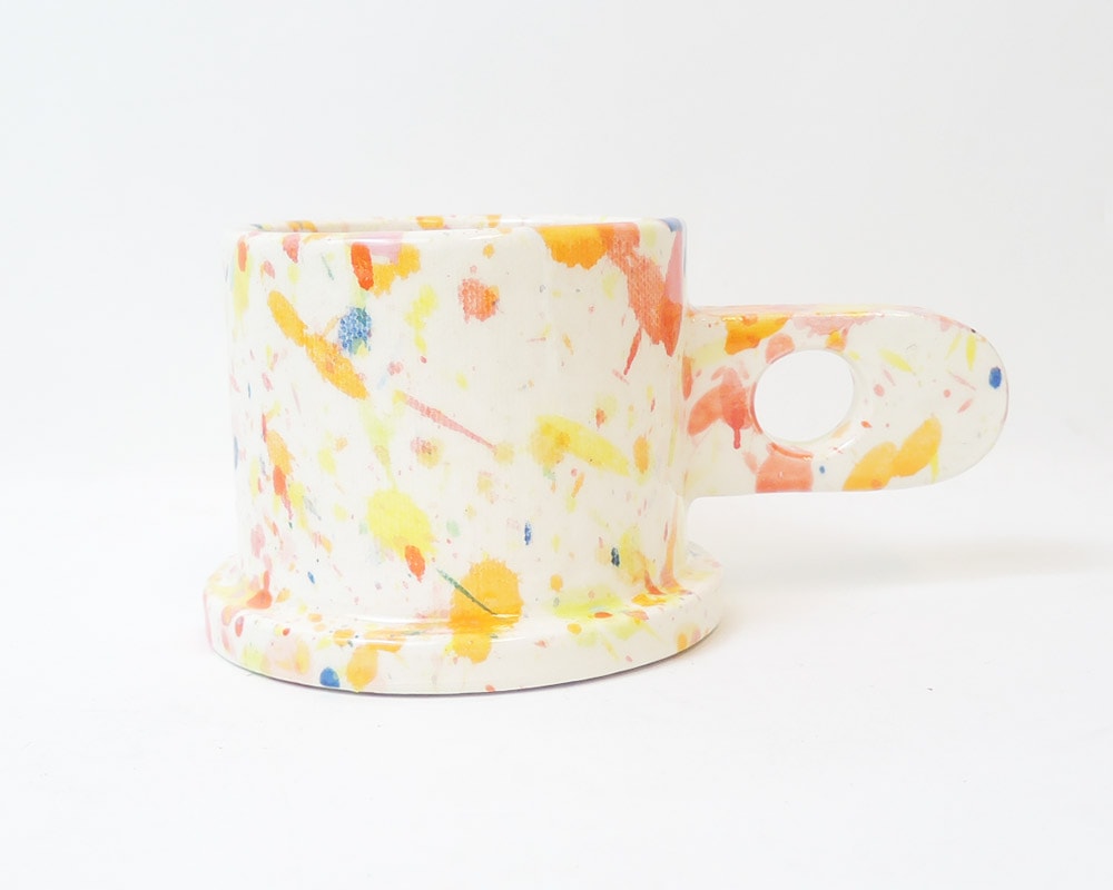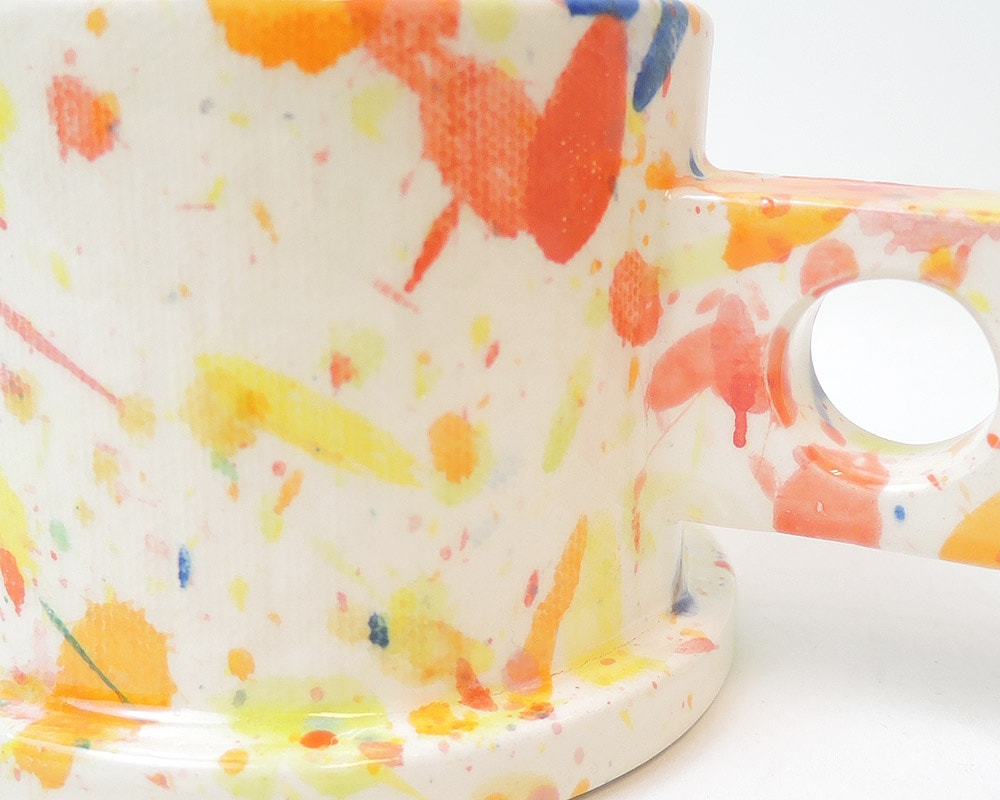 ポストモダンを彷彿させる独創的なフォルム。「ECHO PARK POTTERY(エコ・パーク・ポタリー)」のマグカップ。 Peter Shire(ピーター・シャイヤー)は、現在ロサンゼルスのスタジオで様々な作品を製作するアーティスト。 彼は80年代イタリアのポストモダンの代表的なデザインチーム「Memphis」のメンバーの中で唯一のアメリカ人でもありました。 そのPeter Shireが主宰するEcho Park Potteryのマグはポストモダンを彷彿させる、独特なかたちや釉薬が掛けられた、とても魅力的なものとなっています。 キャンバスで付けられたテクスチャー、2色での分け掛けやスプラッターと呼ばれる跳ね掛けによる色付けも、空間を鮮やかにしてくれます。 また、裏面には、Peterの遊び心が感じられるスタンプが施されこのマグをより愛着の湧くポイントにしてくれます。 そして何より、見た目からは想像できない使い勝手の良さも特徴です。