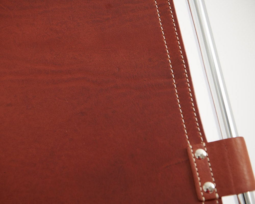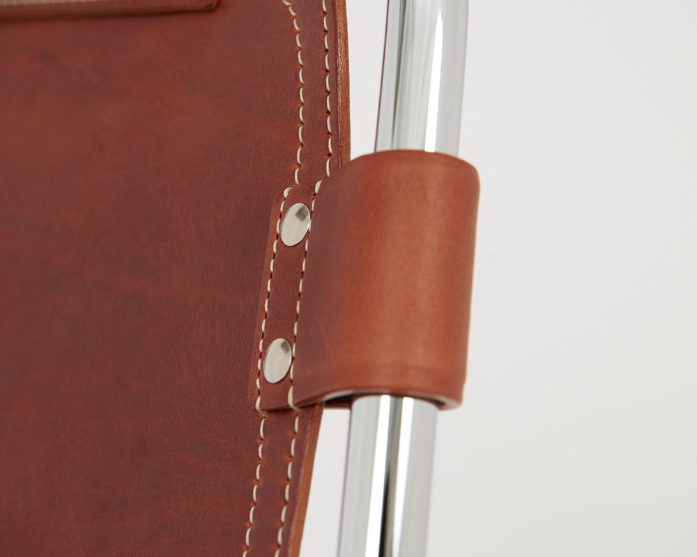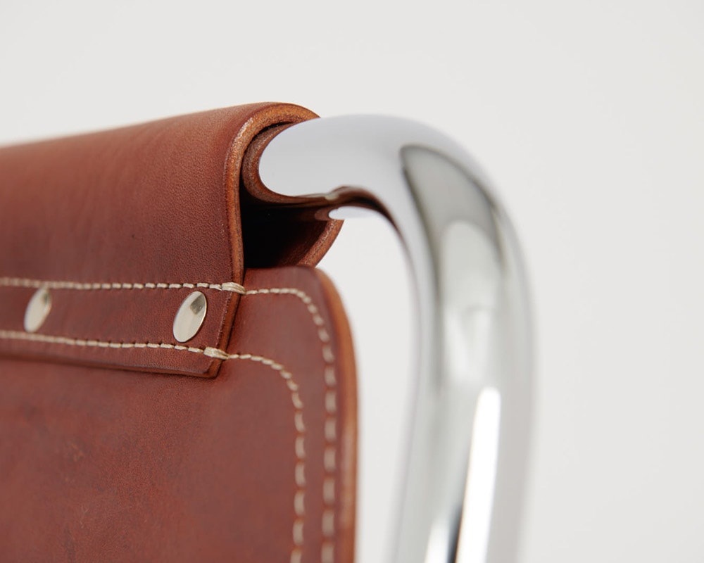 SYOTYL/ショテイルがオリジナルに忠実に再現した、名作「Les Arcs Chair /レザルクチェア」です。 フランスの建築家シャルロット・ペリアンが、レザルク・スキーリゾートの設計に伴いセレクトした「Les Arcs Chair/レザルクチェア」を復刻しました。 スチールパイプにレザーをリベットで留めたシンプルながら個性的なデザインのチェアで、使い込むほどに艶が増し、体に沿うレザーの経年変化が楽しめます。 この名作チェアへの多大なるリスペクトを持ちつつも、引けを取らない最高の「Les Arcs Chair/レザルクチェア」を目指し復刻されました。 1.革の質感/肉感 イタリアにてベジタブルタンニンにて鞣し加工を行ったレザーをCHESTNUT/BLACKに使用。経年変化を楽しめる革を採用しています。 2.コバ処理 家具における革加工にてあまり行われることのない加工ですが、全てのエッジ部分にはコバ処理を施しています。 3.ステッチのディテール 太番手の糸を用いて一針一針、熟練の職人が加工。シンプルだからこそ縫製の美しさが引き立つデザインのため、ステッチの見え方も大切にしています。 4.現代に合った脚先パーツの仕様変更 オリジナル品の場合、自宅での使用の際に床に傷をつけてしまう懸念があります。この部分はオリジナル品を現代版にアレンジし、床に傷の付きにくい素材を使用しています。 5.全ての商品にはシリアル番号を付与 全てのLC-01の座面裏には、シリアル番号が焼印されたピスネームが付けられています。