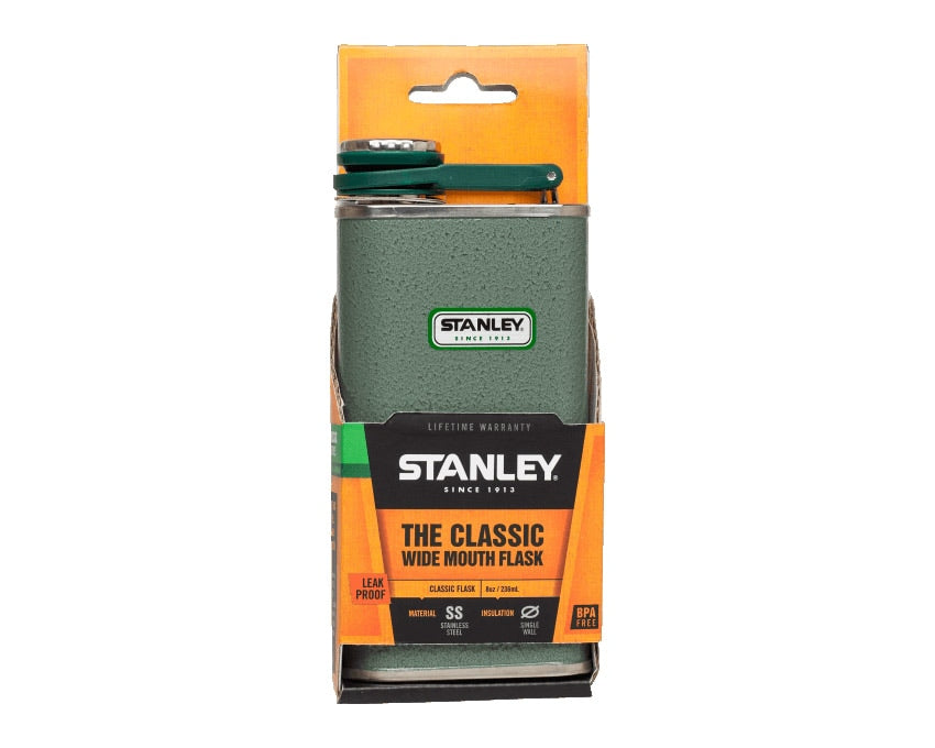 レトロかつヘヴィーデュティーな「STANLEY(スタンレー)」のステンレスフラスコです。スリムなボディ形状で、衣類やバッグ類のポケットにすっぽり収まるサイズ感、収納や携帯に便利なフラスコです。お気に入りのお酒と共にいつものフォールドに・・・そんな非日常なシーンを演出してくれるアウトドアに最適なアイテムです。回転させて開けるフタには紛失防止用のストッパーがついているなど、細部にまで拘りを感じます。