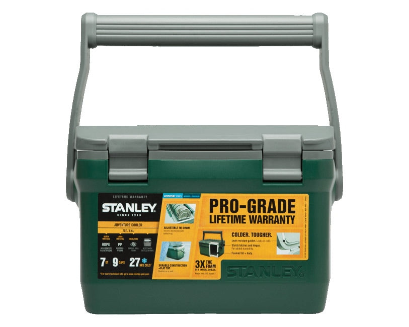 「STANLEY(スタンレー)」の頑丈な作りと抜群の保冷能力を備えたクーラーボックスです。スタンレーらしいカラーリングとデザインで、頑丈かつ実用的なクーラーボックス。断熱材として使わているフォームが、一般的なクーラーボックスの約3倍使用。高い保冷能力を有しています。片手で気軽に持ち運びがしやすいコンパクトサイズで、手軽にアウトドアやピクニック、スポーツシーンでお使いいただけます。上部には、カーゴネットを備え、クラシックボトル0.47Lがぴったり入るサイズになっています。クラシックボトル意外にも、お手持ちのボトルや小物を挟んで、一緒に持ち運びができるなど、様々な使い方が可能です。また、上部に人が座れるほど頑丈な構造で、スツール代わりとしてもお使いいただけます。※新仕様に変更になりました。画像は旧仕様の画像のため多少の違いがございます。