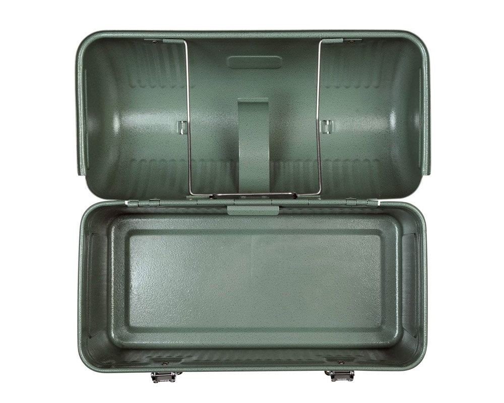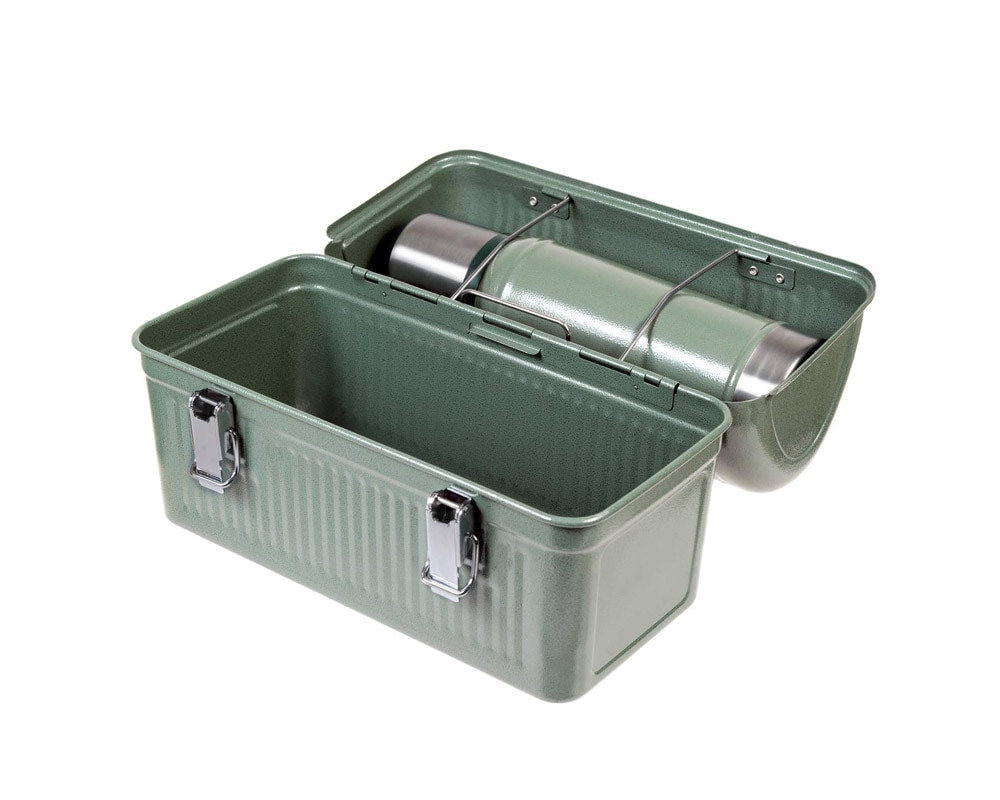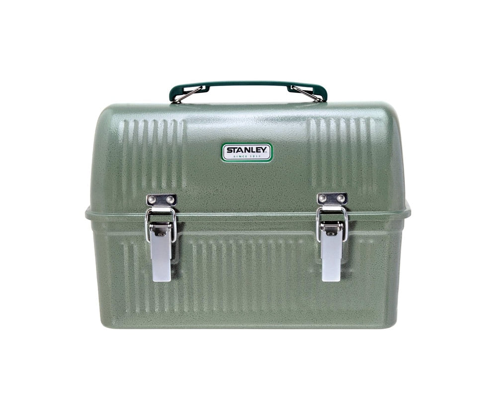 「STANLEY(スタンレー)」のボトルをセットできるスチール製のクラシックランチボックスです。まるで工具箱のような一見ランチボックスには見えない無骨なデザインが魅力のランチボックスです。サンドイッチや果物、飲み物と軽食を持ち運ぶのはもちろん、好きな雑貨や小物を収納したりもできる、スタンレーらしい重厚感のあるボディになっています。ドーム型トップと留め金具でスタンレーのボトル(0.75Lがジャストサイズ)やマグをフタ裏部分に収納できます。その他にも、コーヒーセットや調理道具入れなどマルチにご使用いただけます。