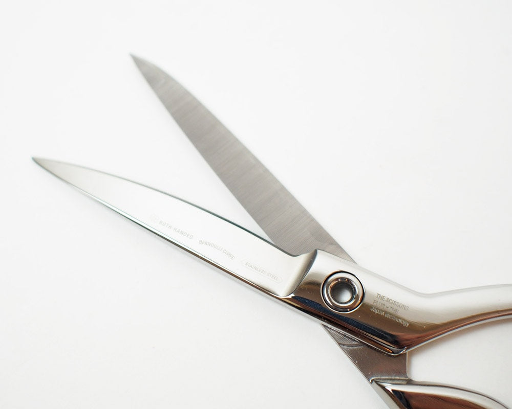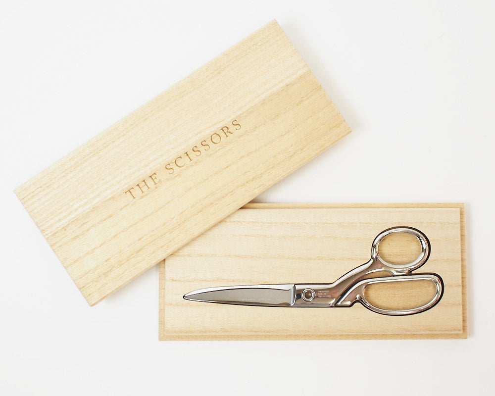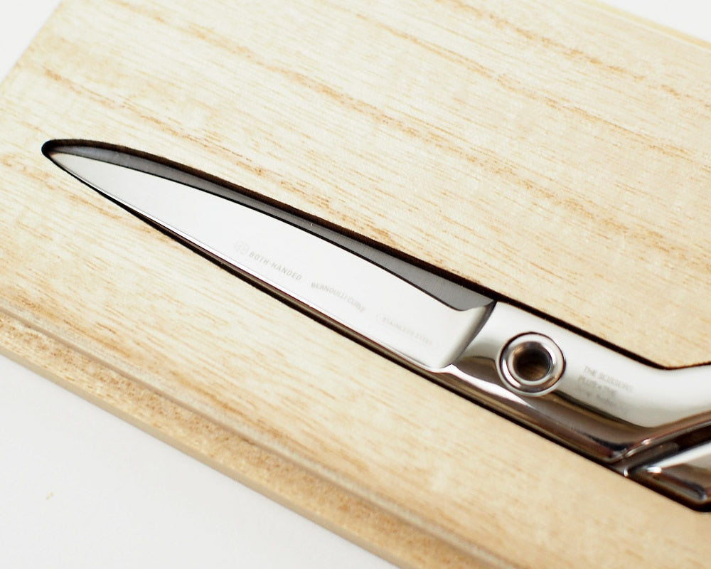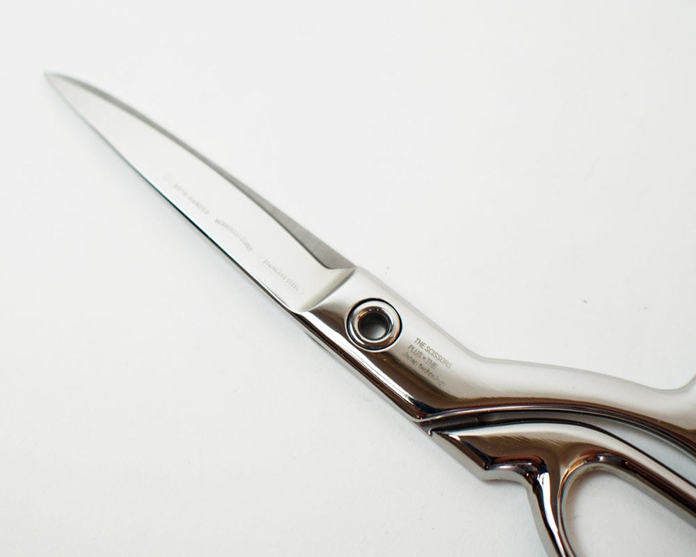 左右非対称 はさみは、今から約3000年前にエジプトで生まれ、ローマ時代には既に現在と似た形状でヨーロッパに普及していました。私たちが普段よく目にする事務用のはさみは持ち手が左右対称のものが主流ですが、これは向きを気にせずさっと手に取れることや、左右同じ形にすることで効率的に生産することを考慮して生まれた形です。元々、西洋でいう「Scissors」は握りやすさや切れ味を重視し、持ち手も刃も左右それぞれが機能的な形で作られた左右非対称のものだったそうです。そんなはさみの歴史に忠実に、細かい作業時の握りやすさや使い勝手を徹底的に追い求めたところ、THE SCISSORSも左右非対称のフォルムに行き着きました。日本刀と同じ鍛造製法 日本刀と同じ「鍛造」と呼ばれる金属を叩いて加工する製法により精度と切れ味を高め、「剣先」という刃の先端に向かって徐々に厚みが薄くなっていく加工を施すことで、最も切りにくいと言われるはさみの先端での切れ味も確保しています。どちらもステンレス板を加工して作る現在のはさみには見られなくなってしまった技術です。抜群の切れ味と心地よさ 一般的なはさみの刃付け角度は55度前後ですが、THE SCISSORSは45度。切るのが困難と言われるガーゼが切れることを1丁ずつ手作業で確認して出荷されます。サイズは、全長176mm。ハンドルの大きさ、刃渡りの長さ、 持ち手の重量バランスなど全体のボリュームを総合的に見た際に、はさみとして最もバランスの良いサイズです。製造は事務用はさみのNO.1メーカー、プラス株式会社。プラスが生み出した、根元から刃先まで一定の力で切ることができる「ベルヌーイカーブ刃」の新技術と、古来から続くはさみの伝統的な加工技術を掛け合わせて生まれたはさみです。ギフトにも対応 刃物は贈り物には縁起が悪いと言われがちですが、実は「災いを断ち切り幸運を切り開く」と言われ、皇室でも慶事に刀剣を贈る習慣があることや、海外でも「魔を切る」と言われ縁起の良い神聖なものとして様々な祭り事や式典に使用されてきました。そんな歴史をモチーフに、桐箱入りでつくっています。