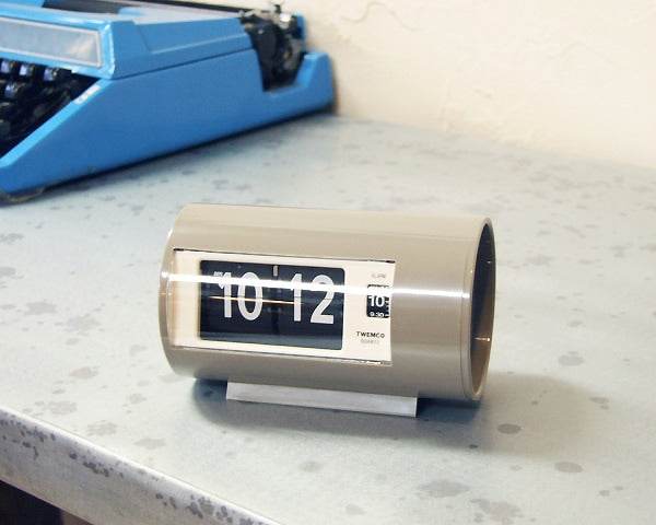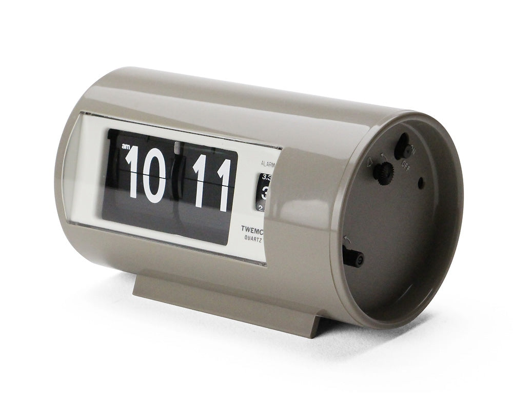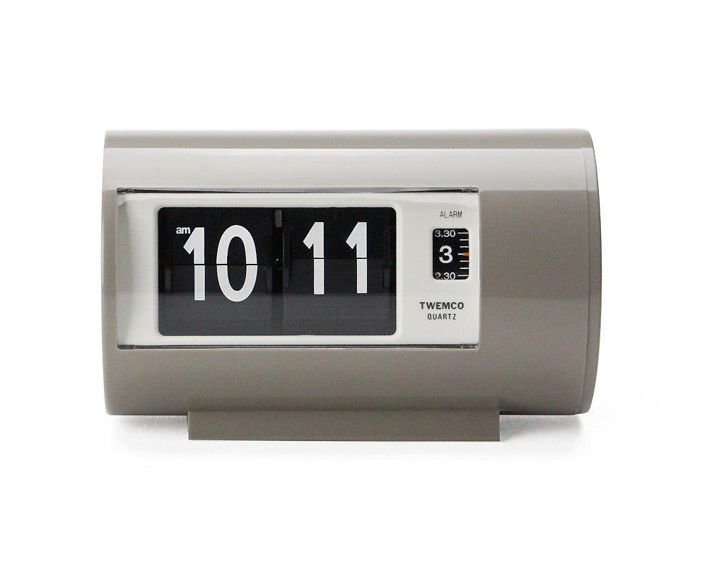 1969年設立のTWEMCO(トゥエンコ)社のアラーム機能付きのフリップクロックAP-28 。定番外カラーのグレーです。 コンパクトで置き場所を選ばない、筒型のアラーム付きフリップクロックです。 中間色のグレーカラーが、インテリアに良く馴染みます。 高精度ムーブメントによるドラム式の時間表示は視認性が高く、時刻が変わるときの音も皆無。 アラーム付きなので、ベッドサイドやキッチンでの使用も良いです。