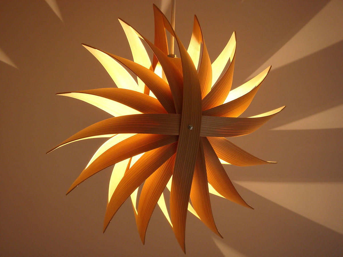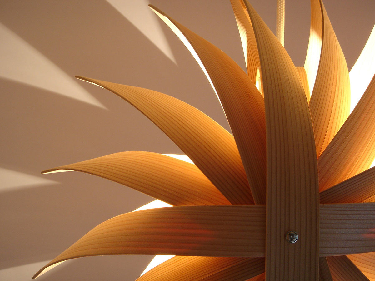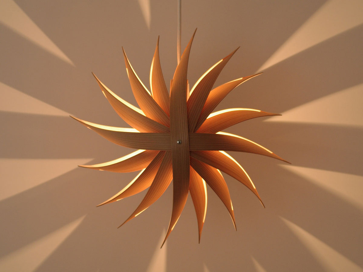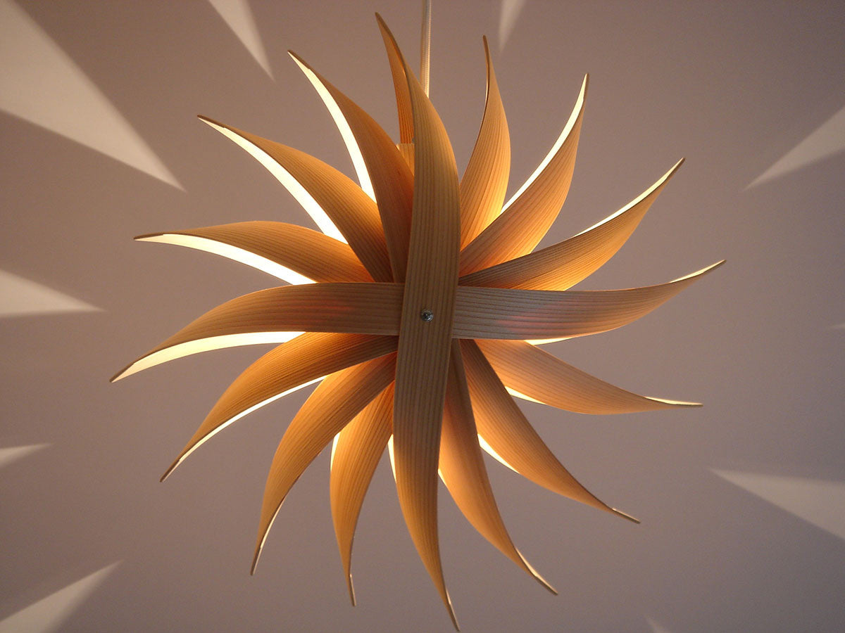 日本の伝統工芸「曲げわっぱ」の技法を用いた作品。秋田杉の単板を熱湯の中で曲げながら、おひつや茶筒を作る「曲げわっぱ」。秋田杉を無塗装で使用することで、独特の風合いと香りが生まれ、視覚と嗅覚を刺激します。デザインだけでなく、曲げ・貼付け・組立てに至るすべての工程を作家である谷氏本人が制作しています。“ 日本のインテリアのほとんどが輸入物であり、今では日本の伝統工芸も下火になりつつある。その日本の伝統工芸を海外の人が買っていき、また新たな形として日本に「逆輸入」として登場する。なぜ日本に住みながら身近にある「日本の良い物」に気が付かないか、自分の作品を通してもっと多くの人に日本の伝統工芸を知ってもらいたい、そう考えました。実際、自分自身伝統工芸に触れる為に秋田に修行に行き、「曲げわっぱ」という伝統に触れて来ました。今までのインテリアは視覚的な情報でしかなかった物を「曲げわっぱ」に使われる素材、秋田杉から出る香りで嗅覚的情報、人間の五感のうちの二つで感じるインテリアを実現させました。”(照明作家 谷俊幸)