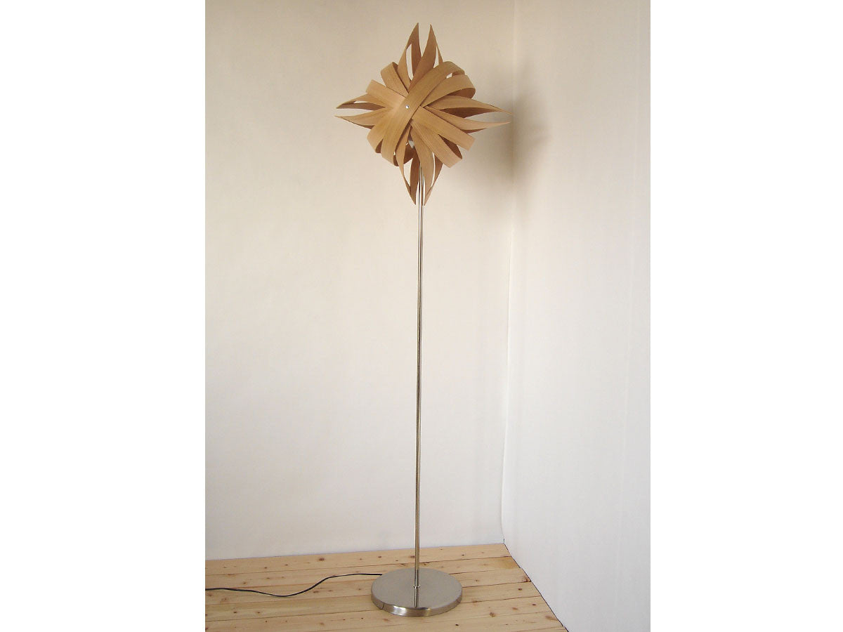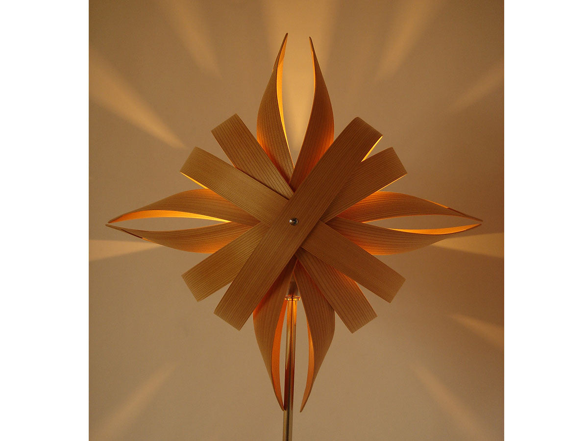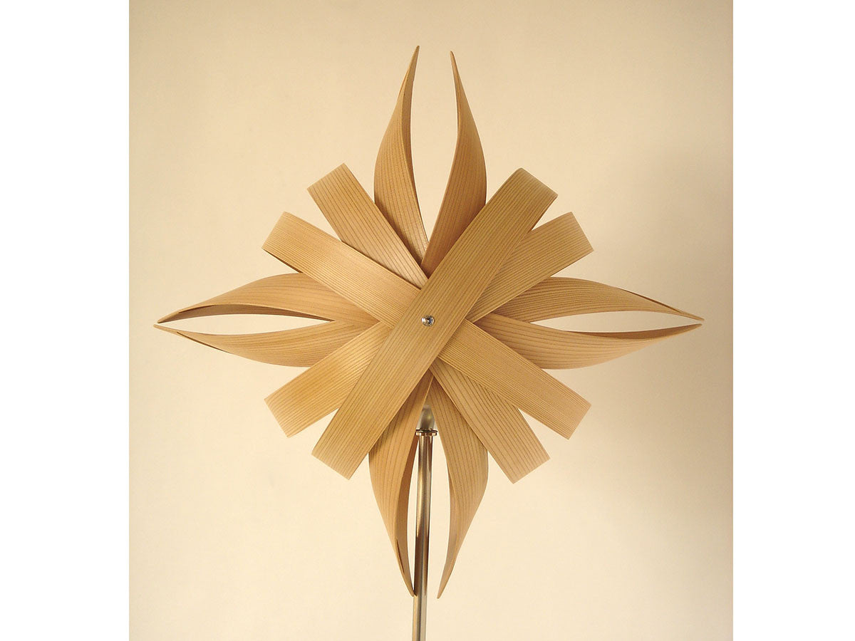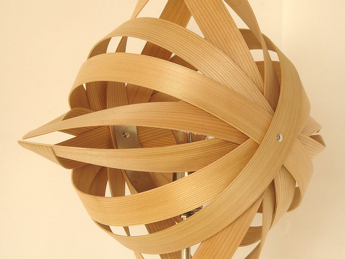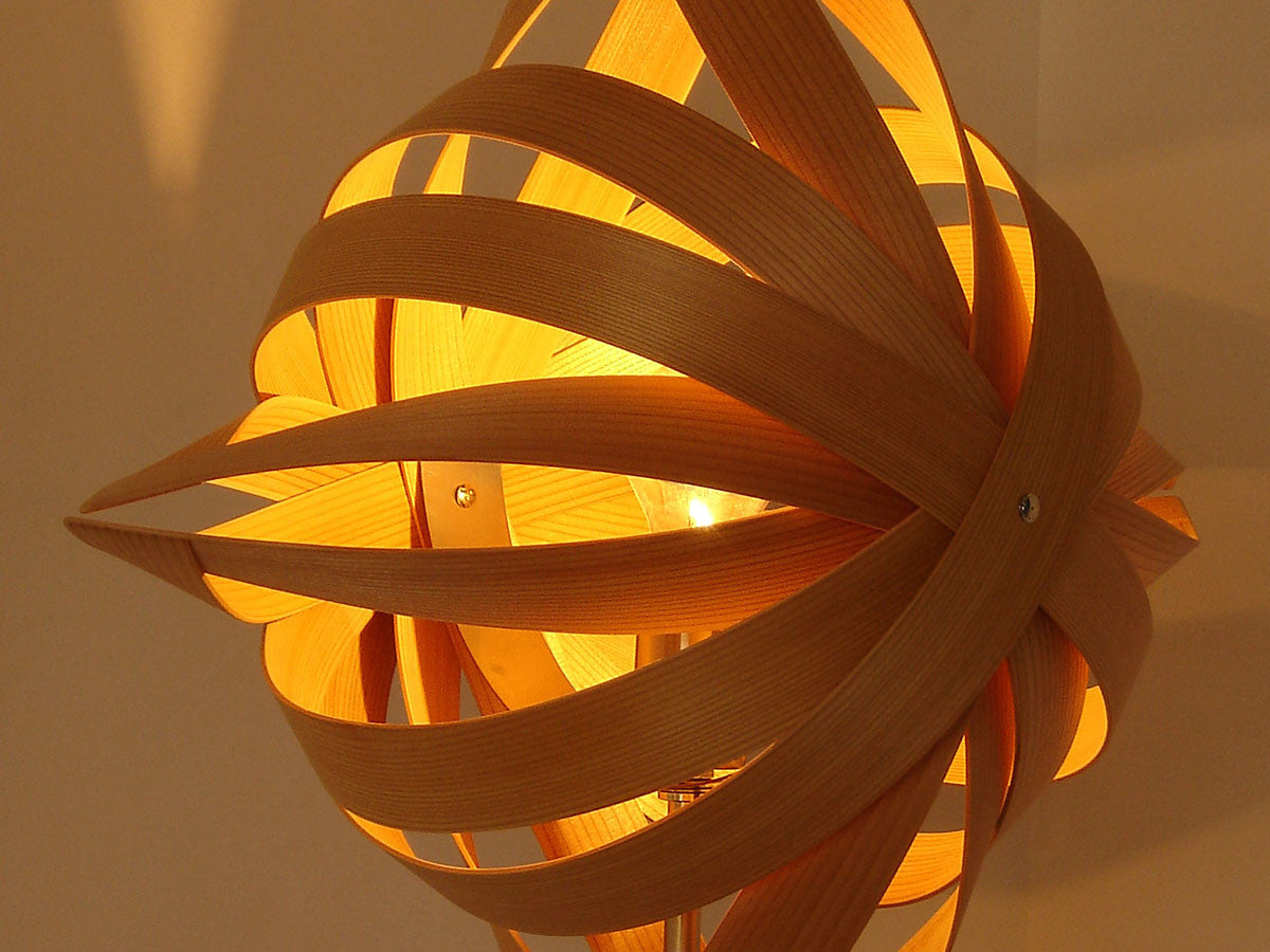 日本の伝統工芸「曲げわっぱ」の技法を用いた作品。秋田杉の単板を熱湯の中で曲げながら、おひつや茶筒を作る「曲げわっぱ」。秋田杉を無塗装で使用することで、独特の風合いと香りが生まれ、視覚と嗅覚を刺激します。デザインだけでなく、曲げ・貼付け・組立てに至るすべての工程を作家である谷氏本人が制作しています。シルバーのスタンドが付属するフロアライトはモダンな空間にも取り入れやすく、日常空間の中で伝統工芸を身近なインテリアとしてお使いいただけます。“ 日本のインテリアのほとんどが輸入物であり、今では日本の伝統工芸も下火になりつつある。その日本の伝統工芸を海外の人が買っていき、また新たな形として日本に「逆輸入」として登場する。なぜ日本に住みながら身近にある「日本の良い物」に気が付かないか、自分の作品を通してもっと多くの人に日本の伝統工芸を知ってもらいたい、そう考えました。実際、自分自身伝統工芸に触れる為に秋田に修行に行き、「曲げわっぱ」という伝統に触れて来ました。今までのインテリアは視覚的な情報でしかなかった物を「曲げわっぱ」に使われる素材、秋田杉から出る香りで嗅覚的情報、人間の五感のうちの二つで感じるインテリアを実現させました。”(照明作家 谷俊幸)