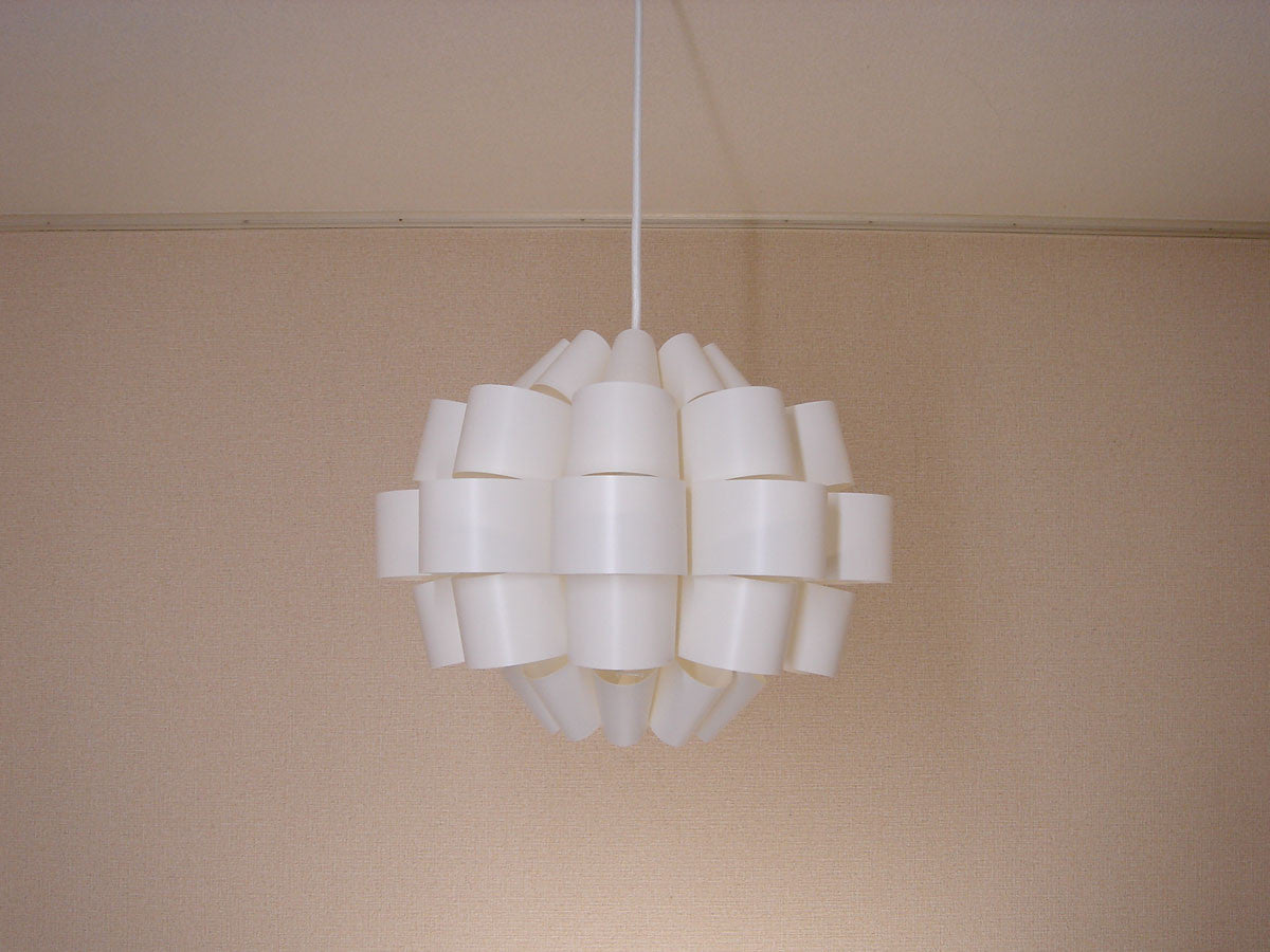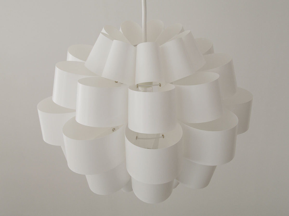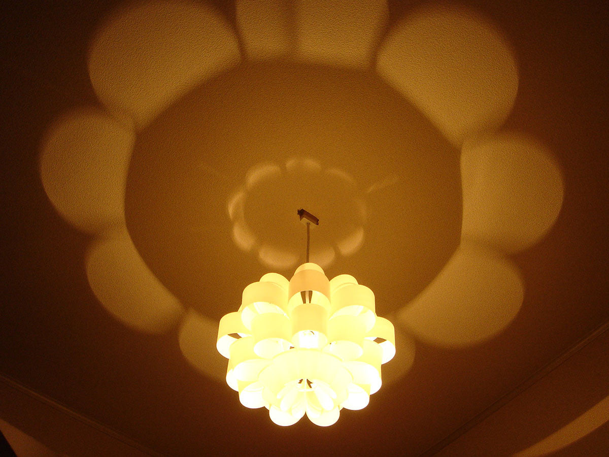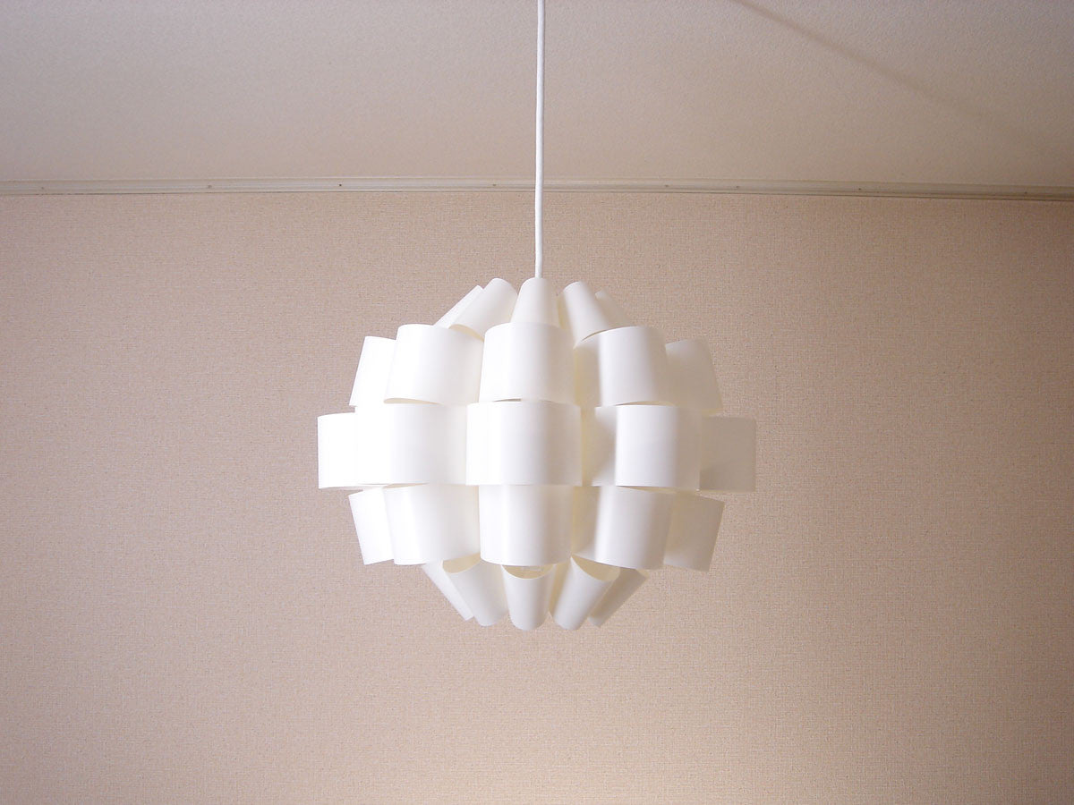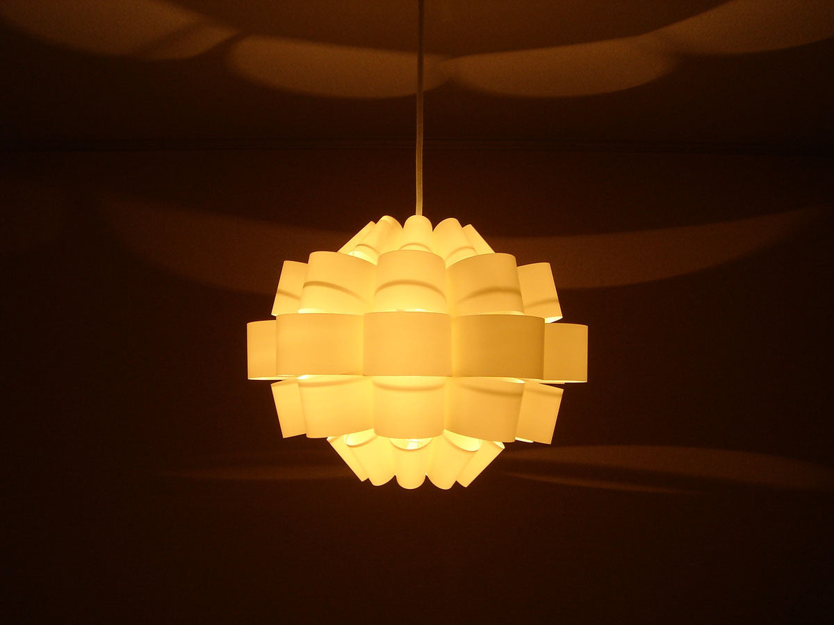 1950年前後に流行したミッドセンチュリーテイストを感じさせるランプです。素材に工業製品などに用いられるP.P.(ポリプロピレンシート)を使うことで、光りは柔らかく、そして暖かく変化し、和紙に似た特有の効果を発揮します。ランプによって生まれる光と影が、花のように壁や床に広がります。