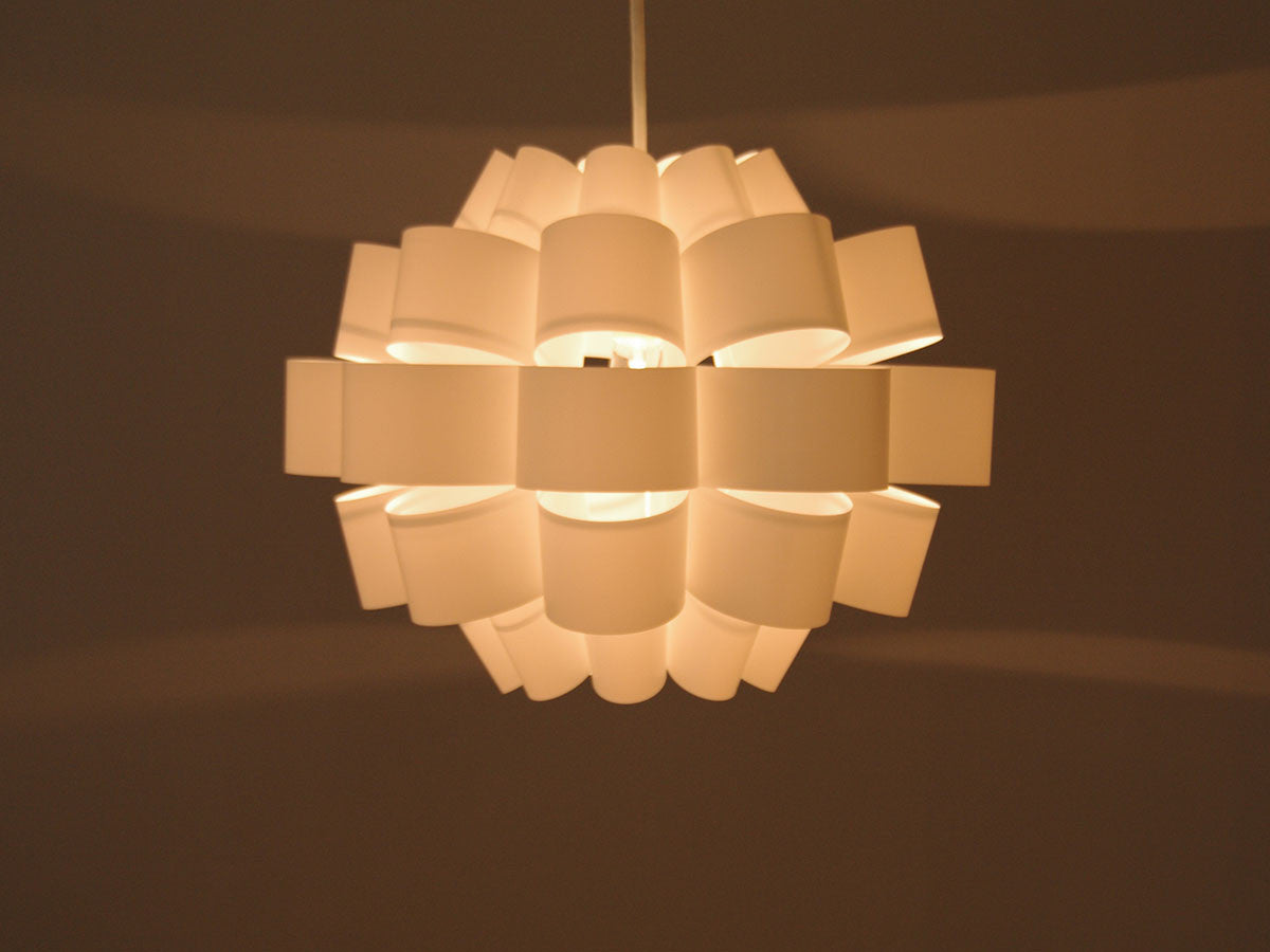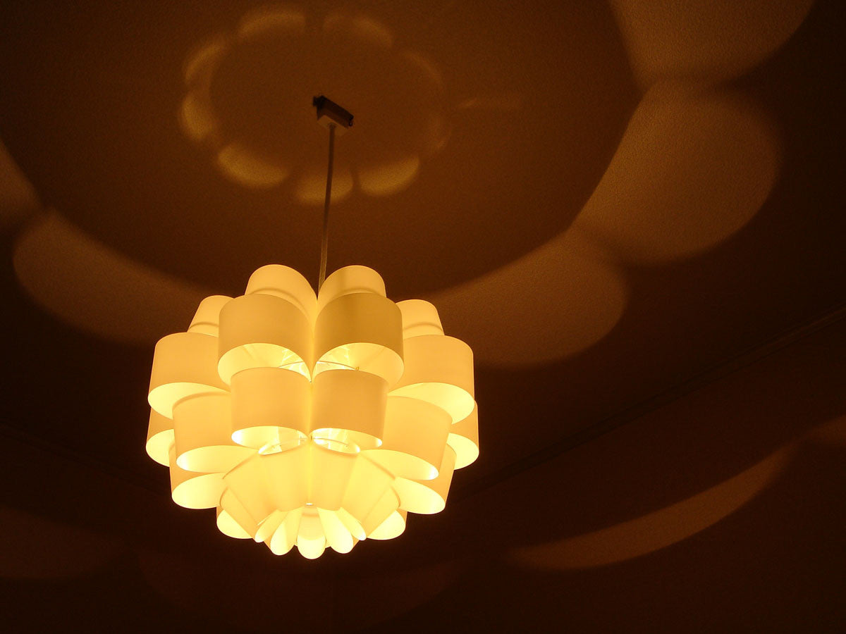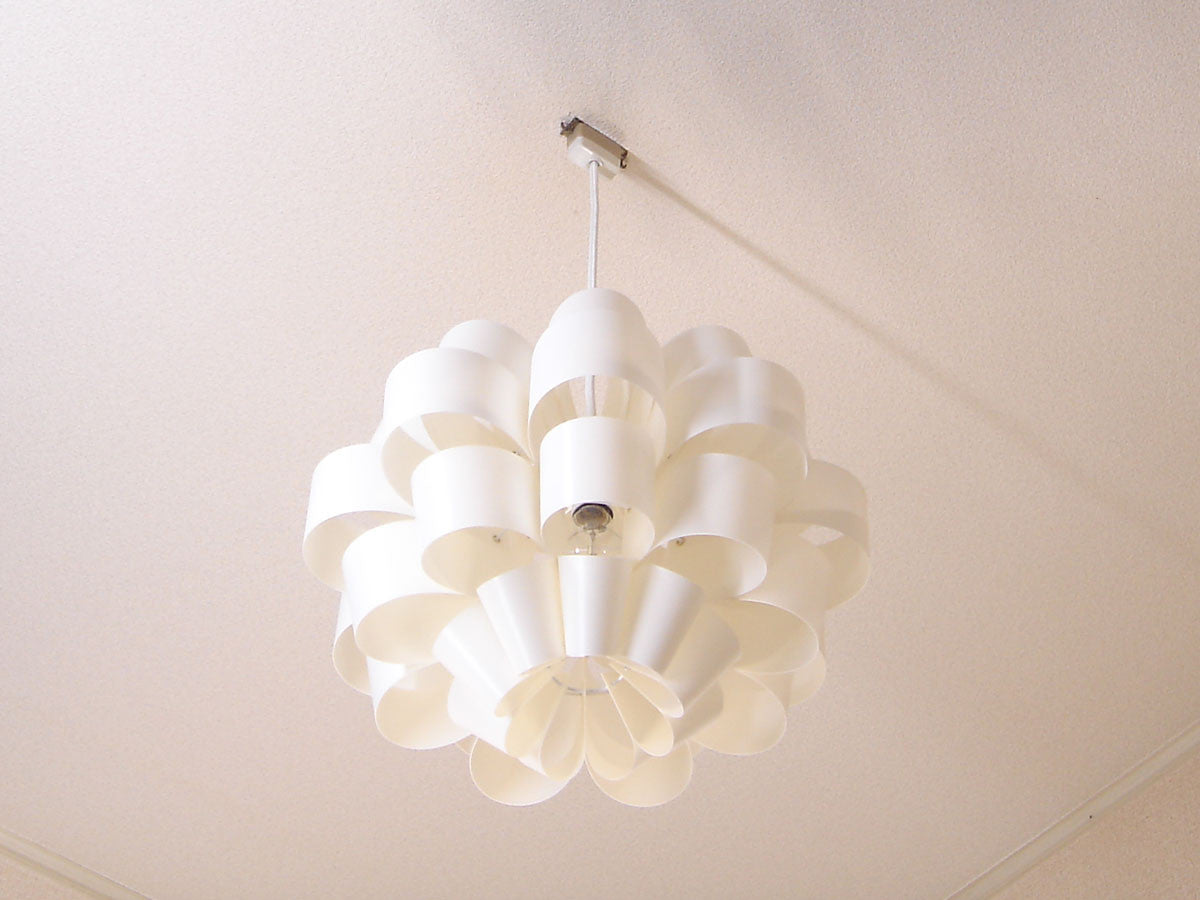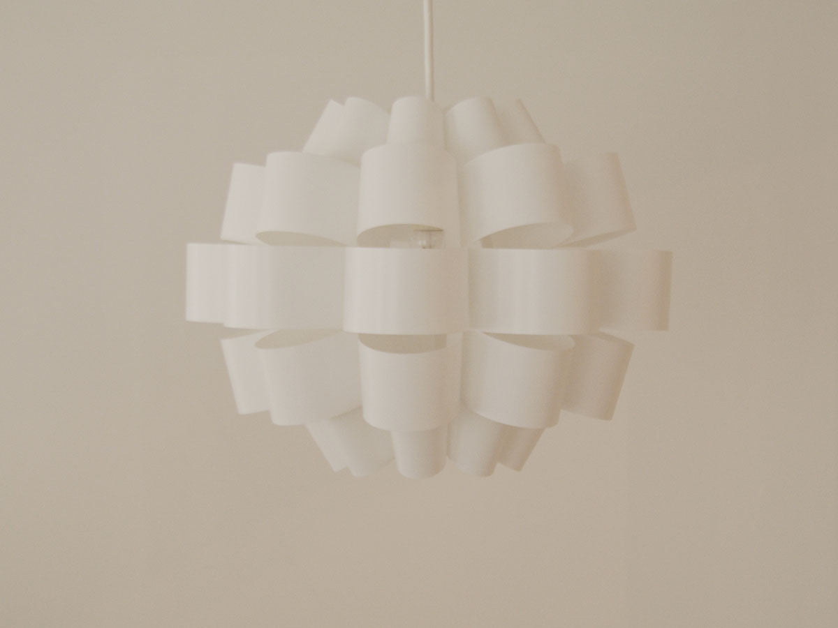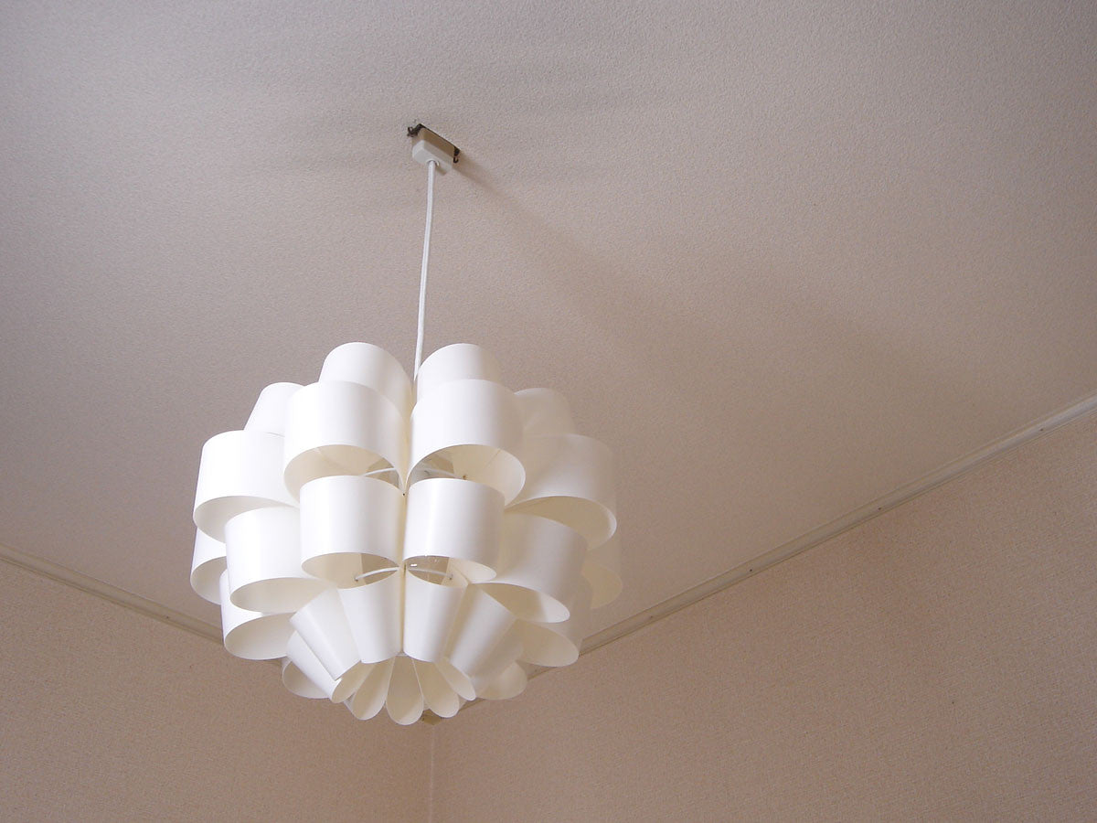 1950年前後に流行したミッドセンチュリーテイストを感じさせるランプです。素材に工業製品などに用いられるP.P.(ポリプロピレンシート)を使うことで、光りは柔らかく、そして暖かく変化し、和紙に似た特有の効果を発揮します。ランプによって生まれる光と影が、花のように壁や床に広がります。
