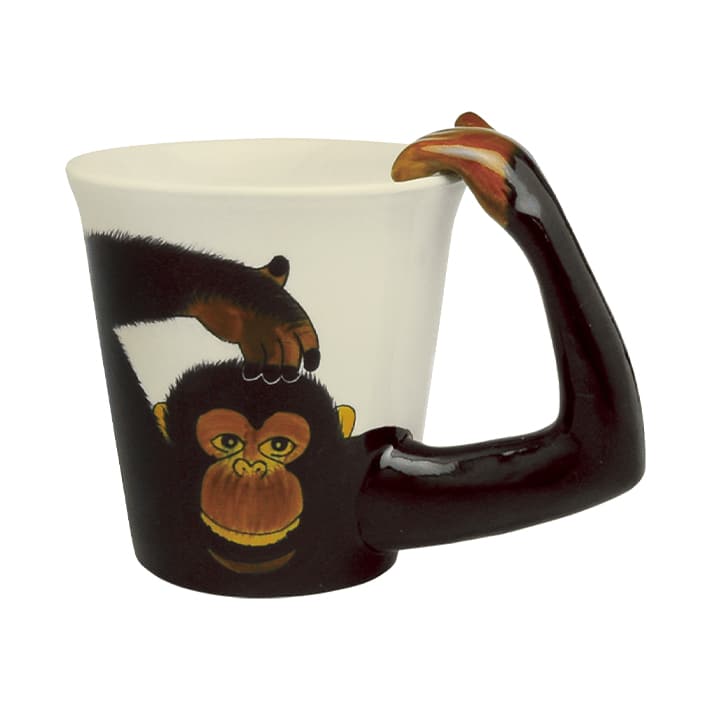 サルをモチーフにしたマグカップ。手や顔がマグからはみ出たような立体感のあるデザインがポイントです。一点一点にていねいに手作業でペイントされた、ハンドメイドならではの温もりを感じられます。マグカップとしてはもちろん、ペン立てや歯ブラシホルダーとしてもおすすめです。