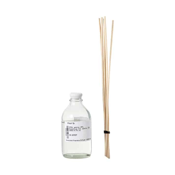 医療機関で使用されるボトルと、薬品サンプルのようなラベルデザインが印象的なディフューザー。ハーブのようなすっきりとした香りです。