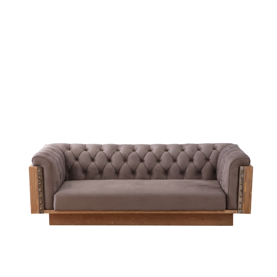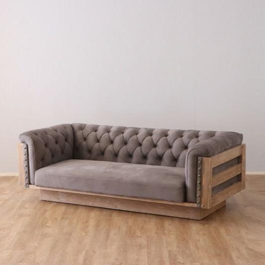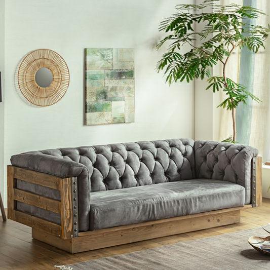 イギリスの伝統的なソファのチェスターフィールドをアップタウン人気シリーズPULLEYの柔らかい印象の木目がキレイなパイン材でデザインしたアンティークな魅力のあるソファです。マットな高級感のあるスエードをあしらった張地は肌触りがよく、丸みを帯びたフォルムで存在感を引き立たせながらも落ち着きのある大人なお部屋作りにオススメできます。