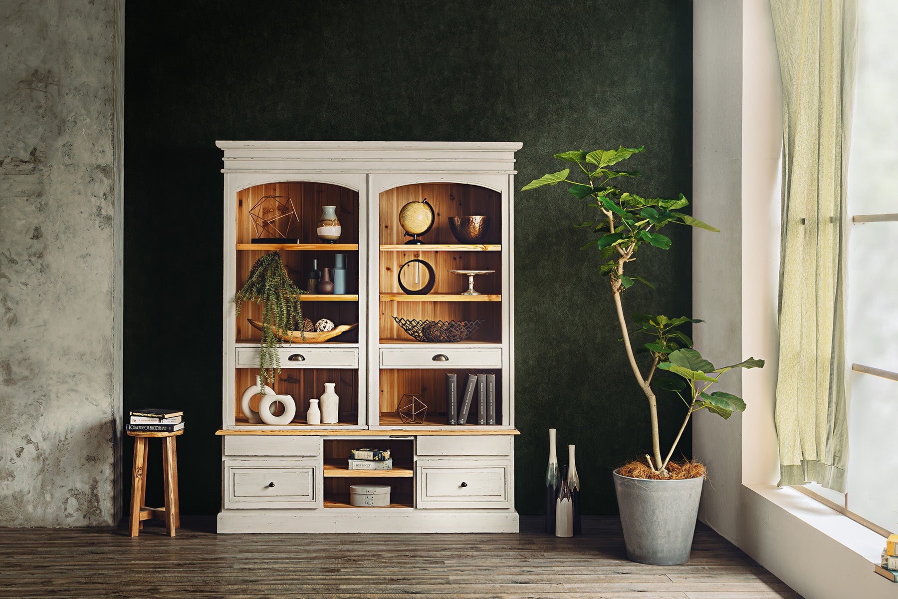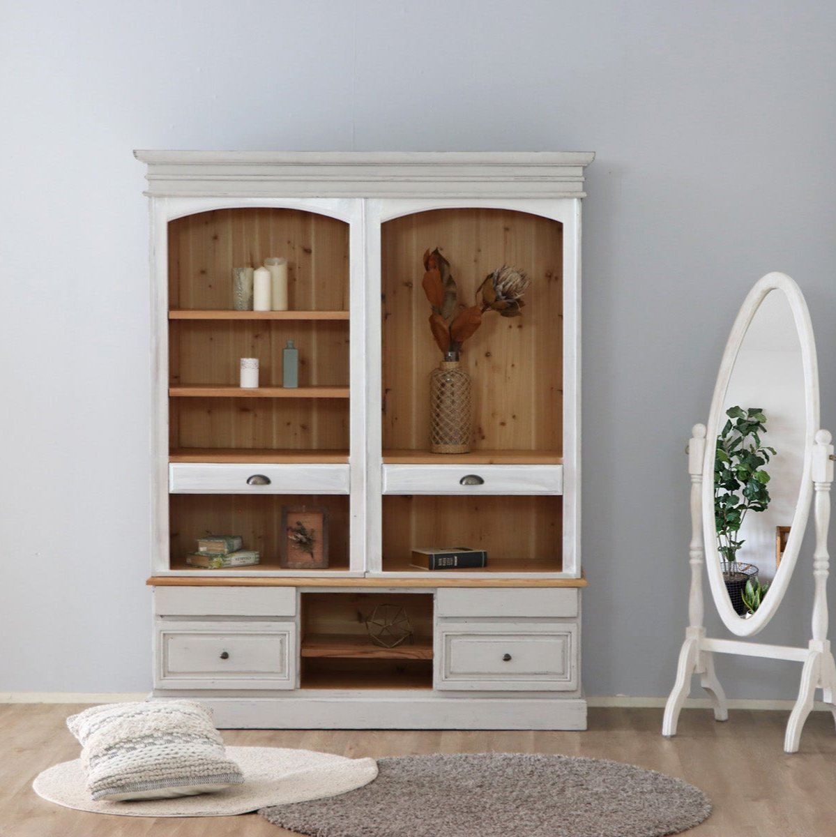 シャビーシックでクラシカルな他にないシェルフです。シャビーシックでクラシカルな雰囲気を醸し出すアイテムです。非日常の空間を作り出すのに一役買います。