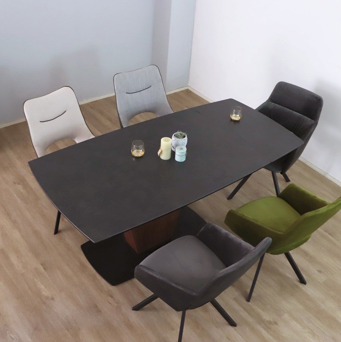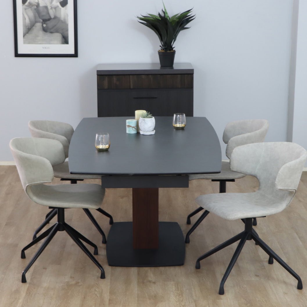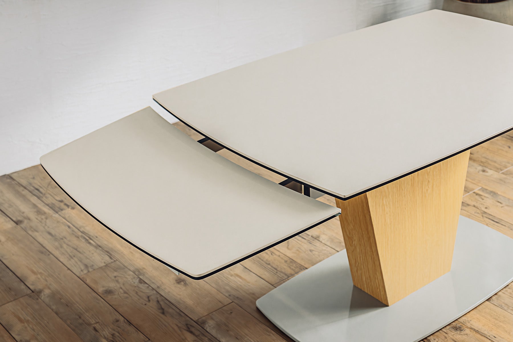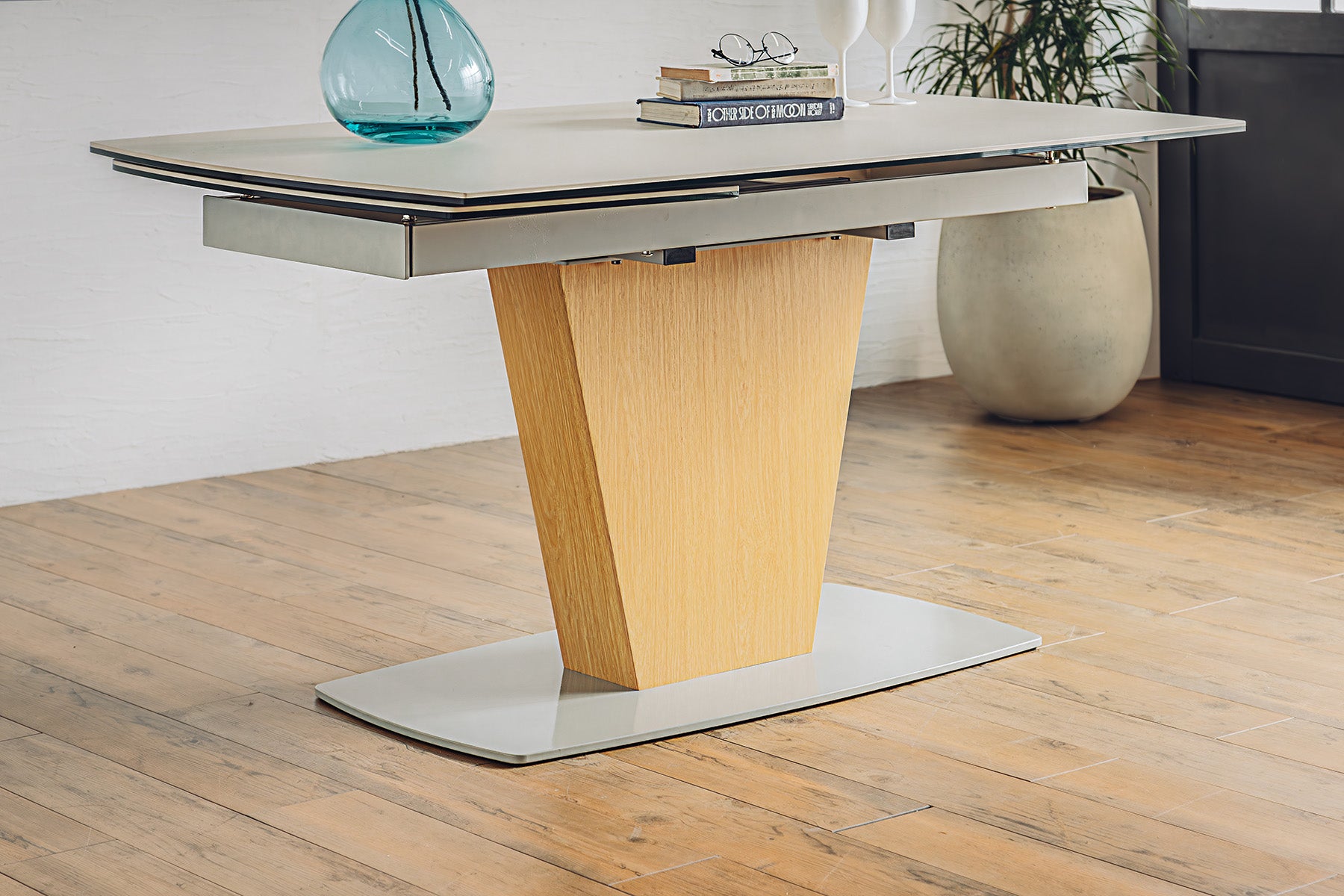 一本脚で片側伸長のセラミックダイニングテーブルです。1本脚テーブルでさらに片側が伸長するので急な来客にも、家族が増えても対応可能です。片側慎重なので壁付けで配置しても問題ありません。さらに清潔と頑丈さを兼ね備えたセラミックテーブルは近年のトレンドとなっています。