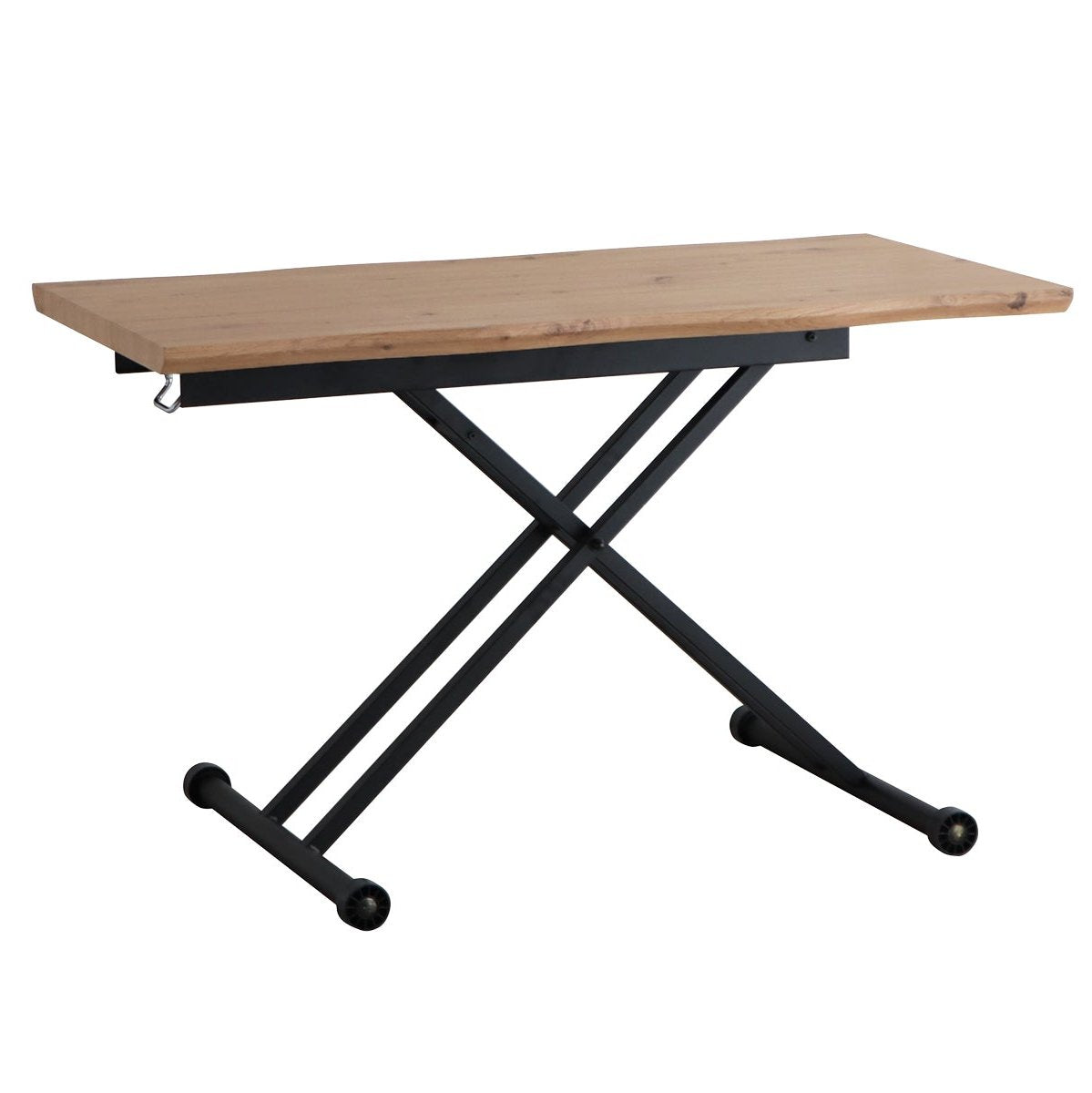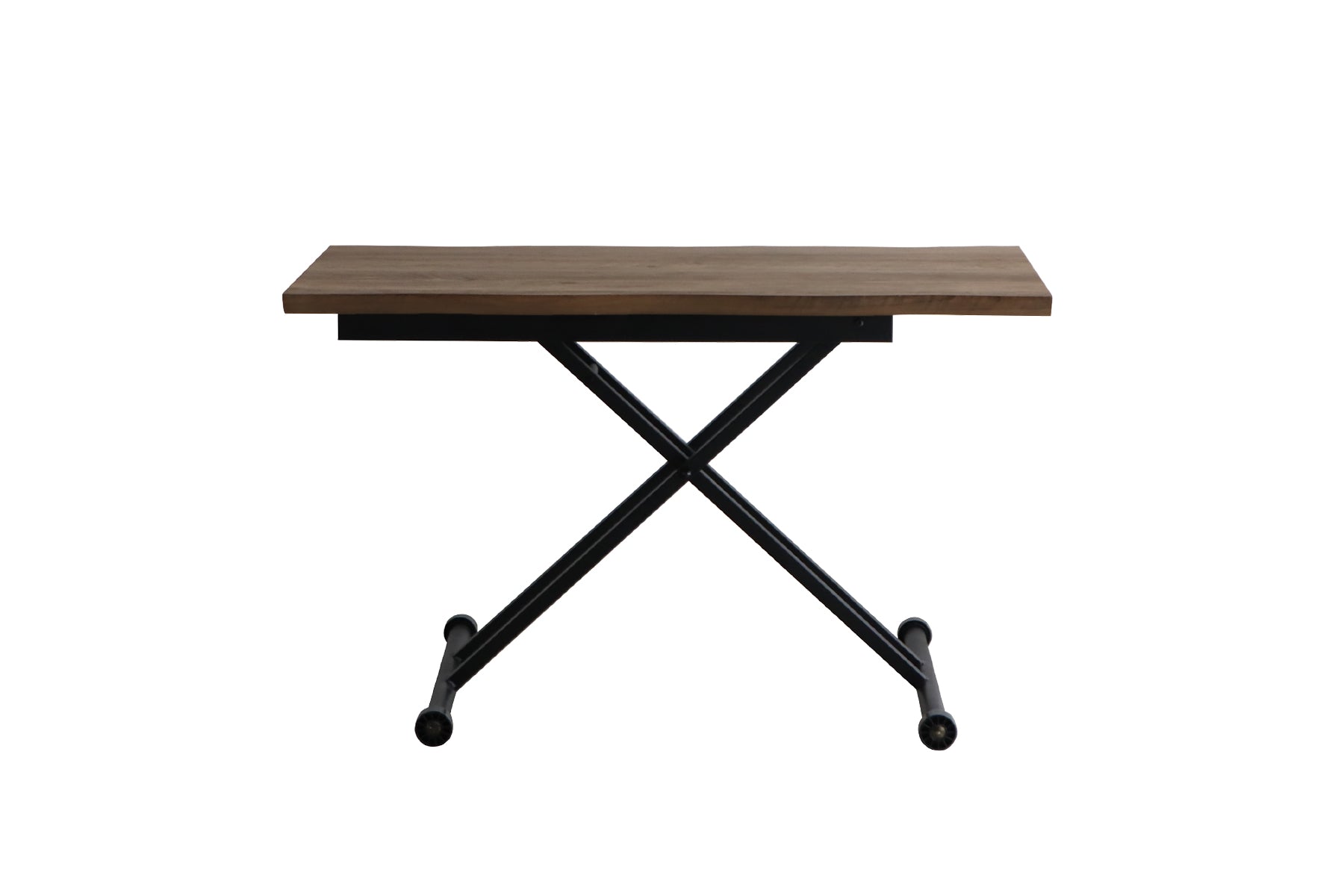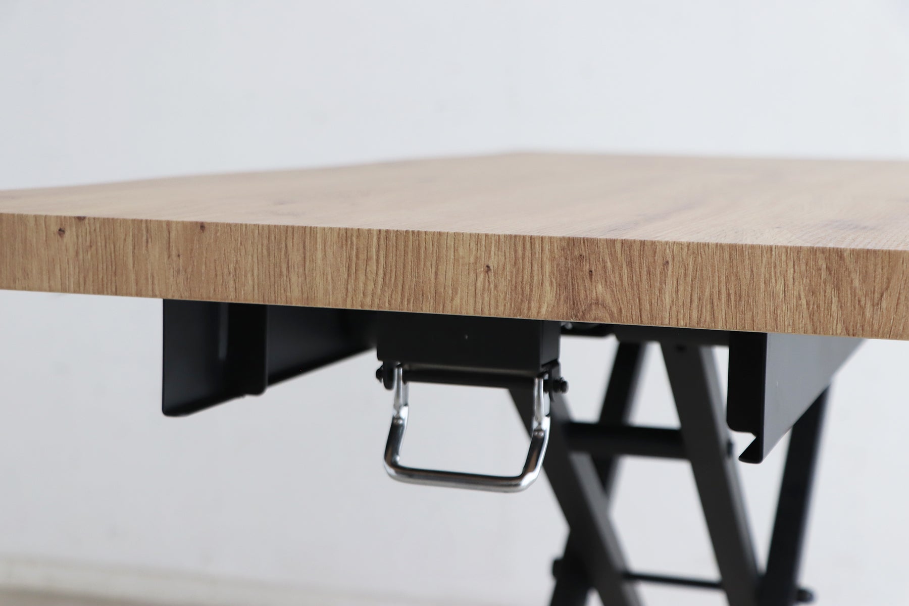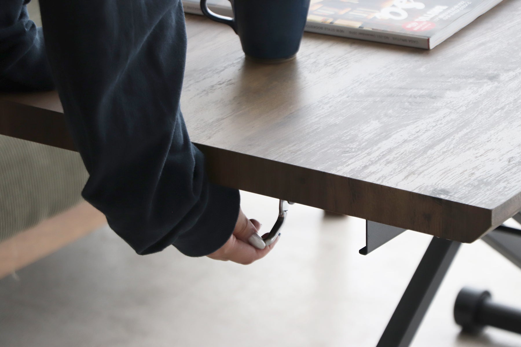 まるで本物の一枚板に見えるリアルシートを使った天板に、波打った小口がリアルで高見えするテーブルです。昇降機能も付いているのでさまざまな使い方が可能です。