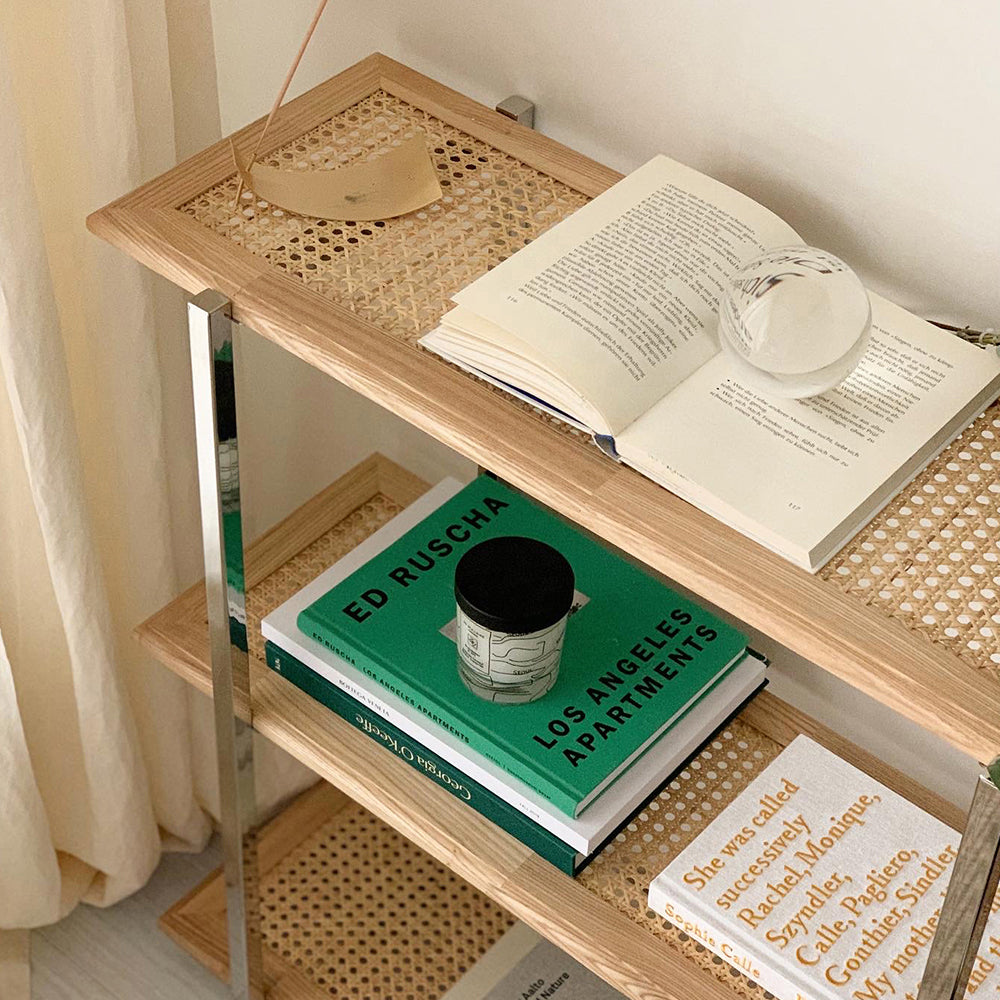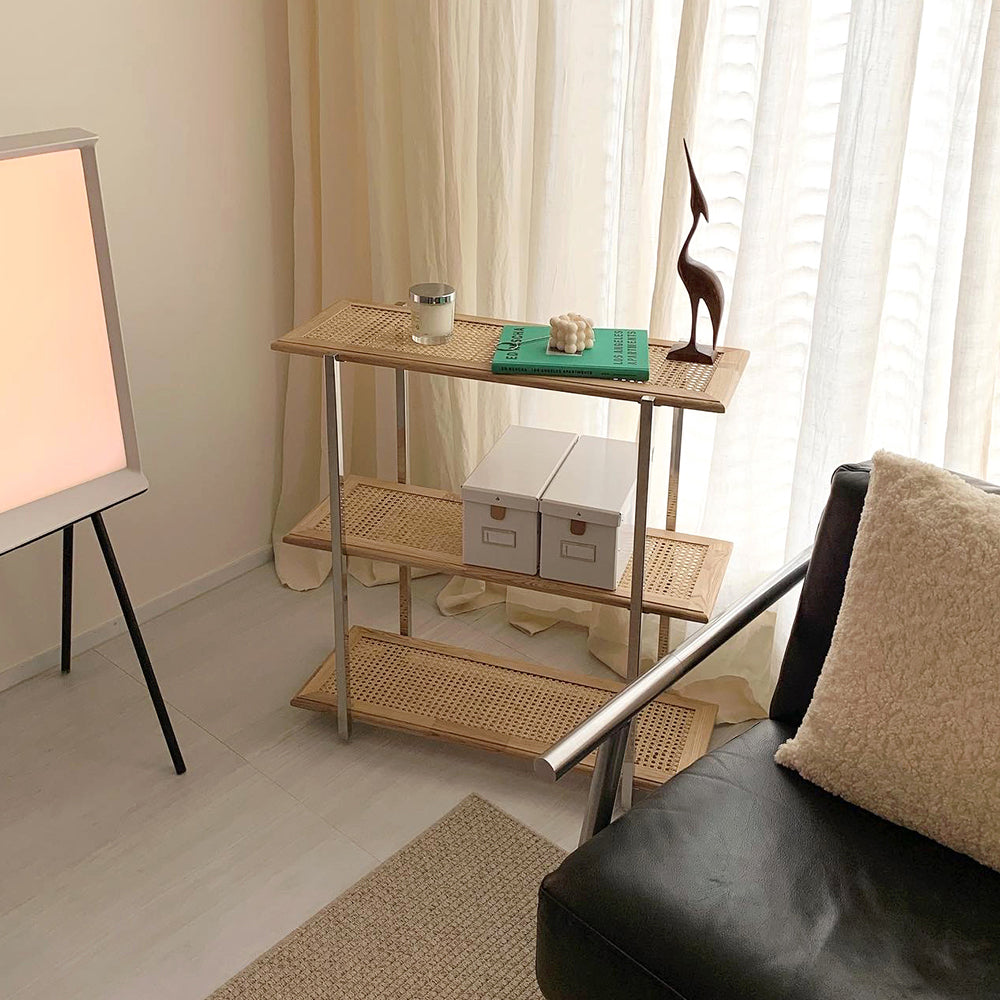 空間を圧迫せず軽やかに収納を楽しめる、VAMIR ステンレスケーン3段棚です。ナチュラルな風合いが部屋に馴染みます。