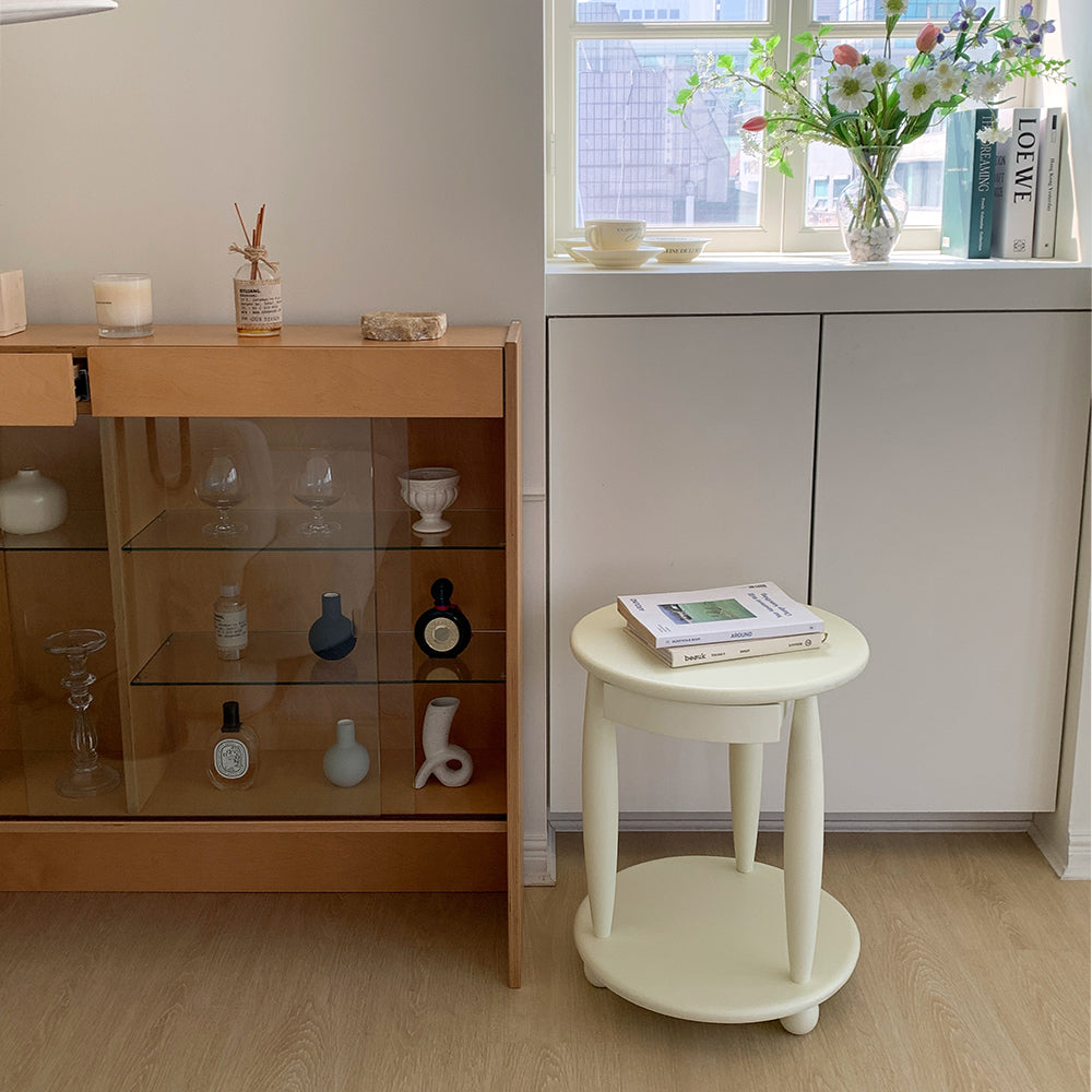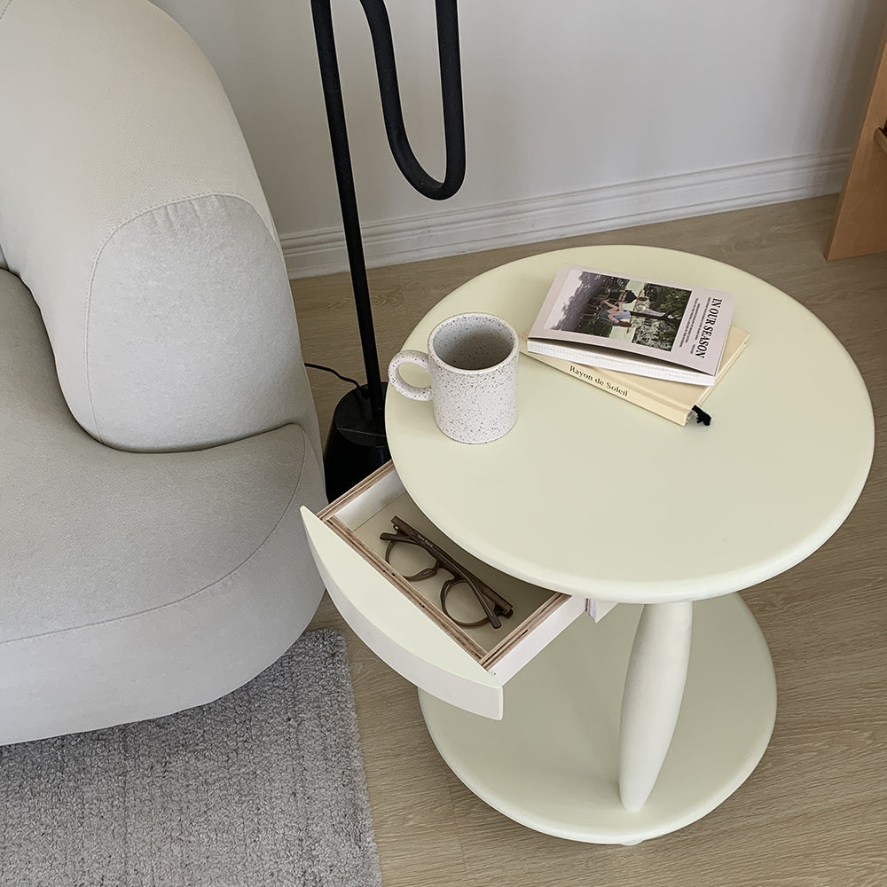 VAMIR メルシーサイドテーブルは、丸みのあるデザインと実用的な収納力で、リビングやベッドサイドにぴったりのアクセント家具です。