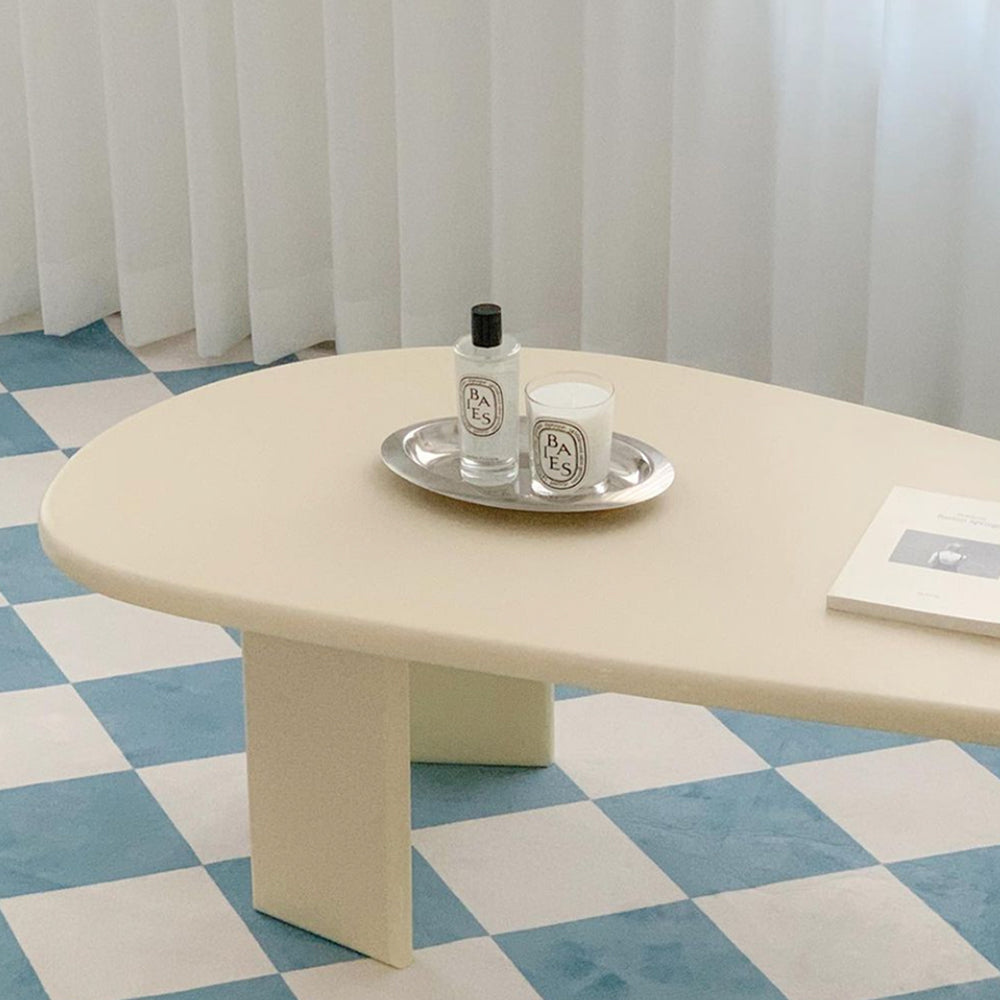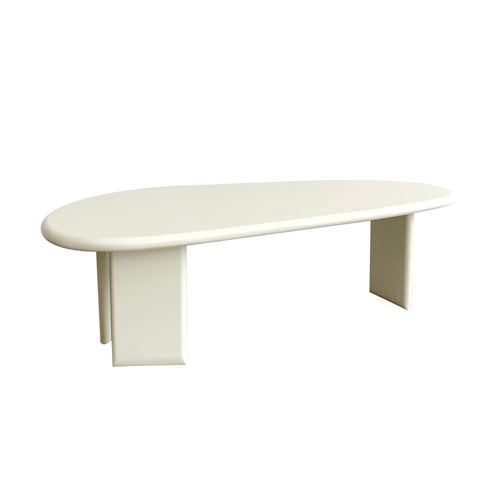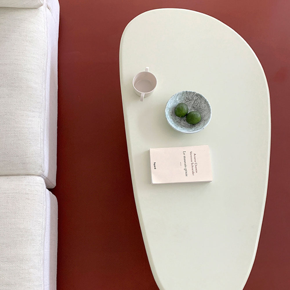 丸みのあるユニークなフォルムが目を引くVAMIR ピーナッツソファーのテーブル。柔らかな印象で、リビングをやさしく彩ります。