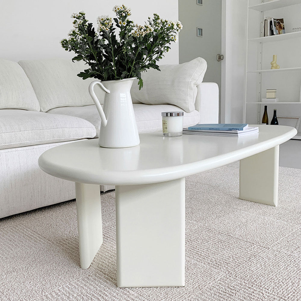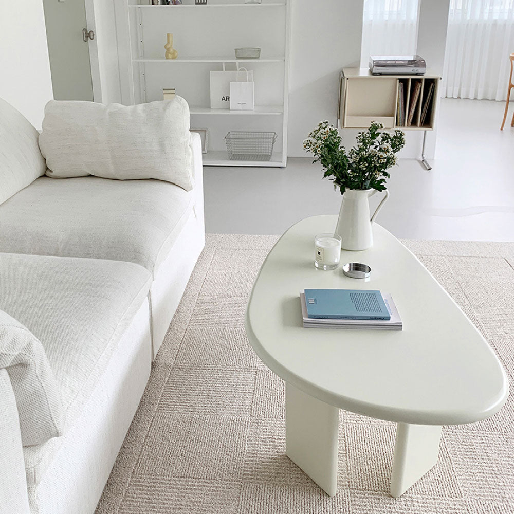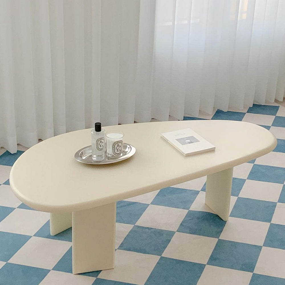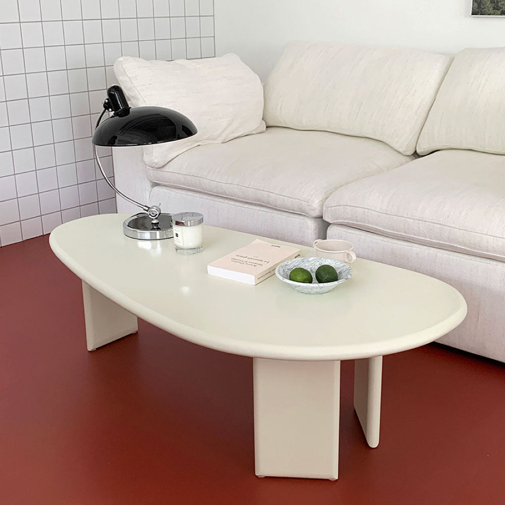丸みのあるユニークなフォルムが目を引くVAMIR ピーナッツソファーのテーブル。柔らかな印象で、リビングをやさしく彩ります。