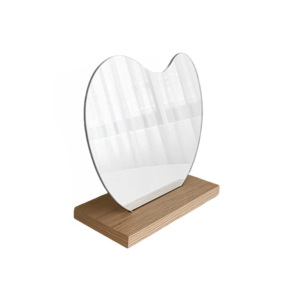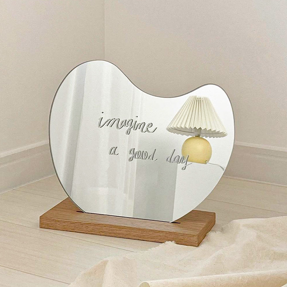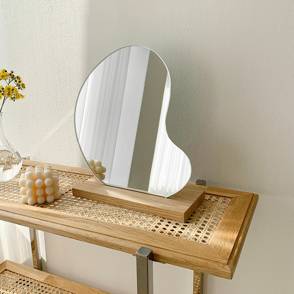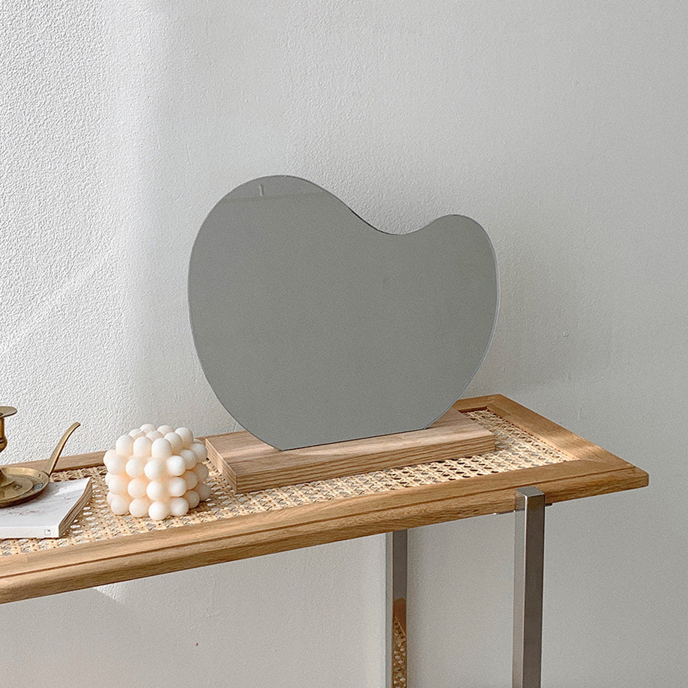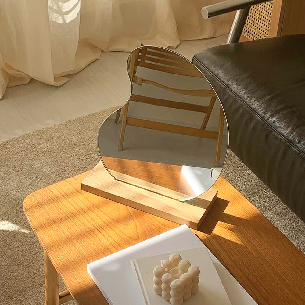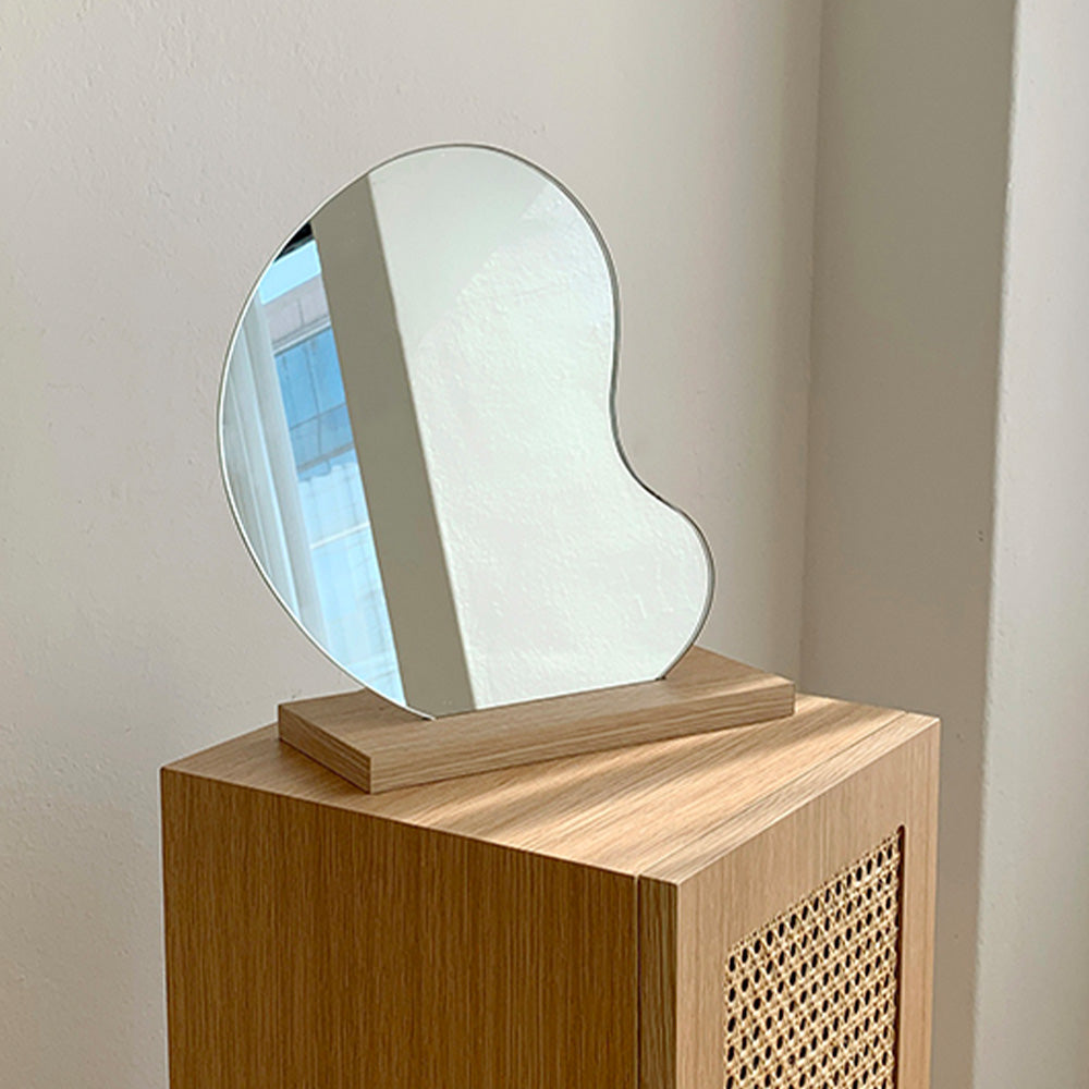 豆の形をした幾何学的なユニークなデザインで、スタンドにどのように置くかによって様々なシルエットを演出できるポイントミラーです。