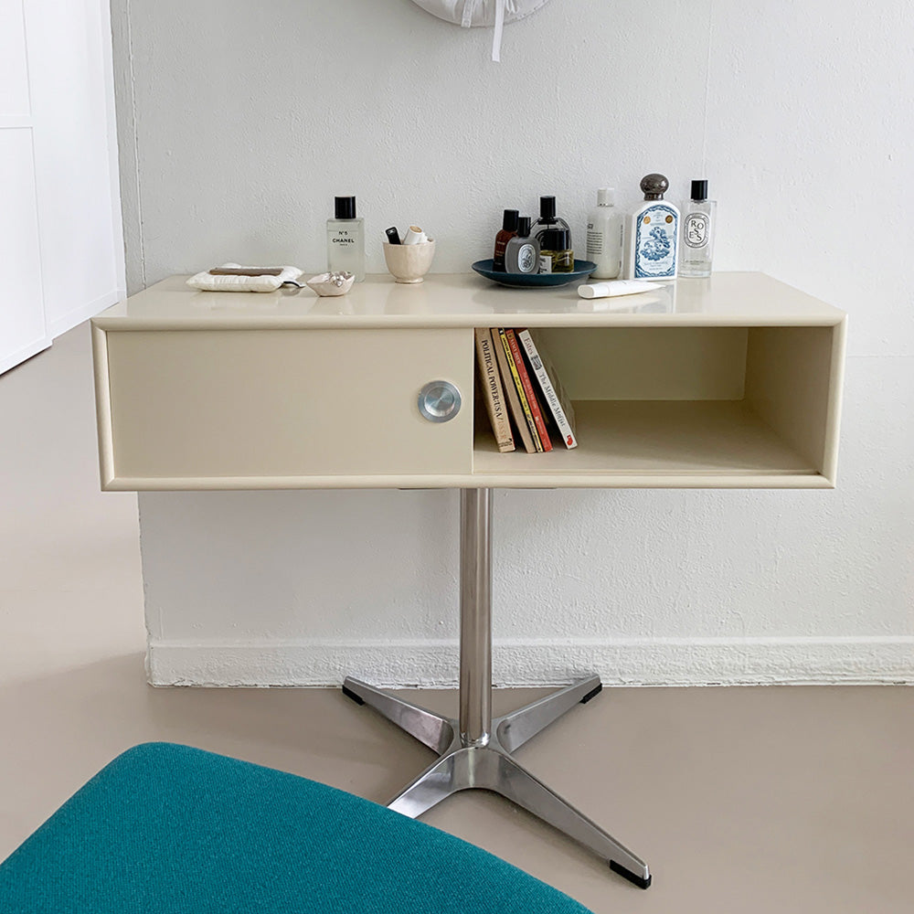 バミルバターモレナコンソールは、片脚と外開きドアのユニークなデザイン形状で、自分だけのアイテムを露出させ、空間を特別に演出できます。