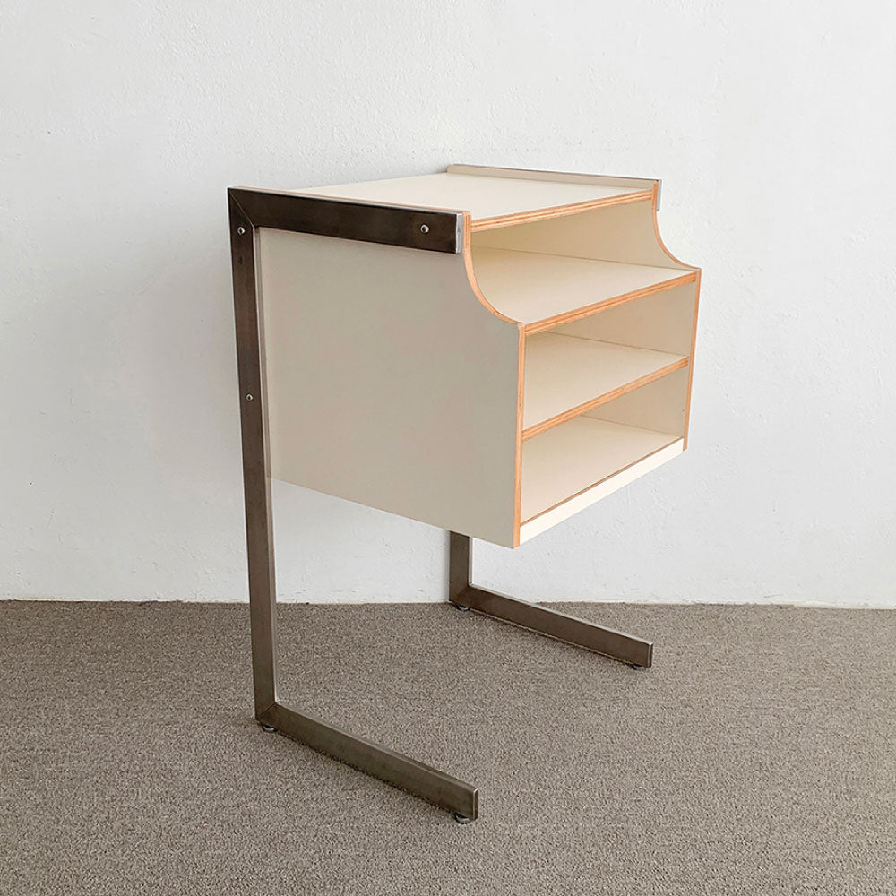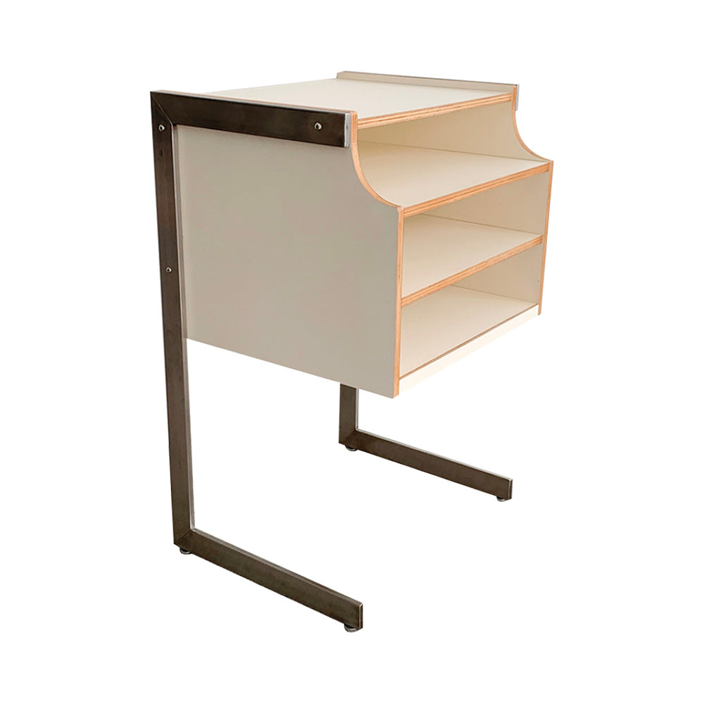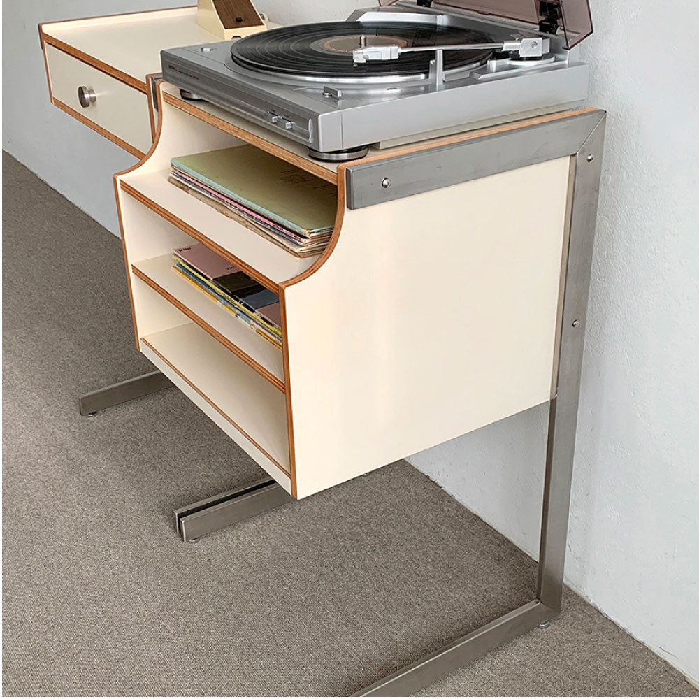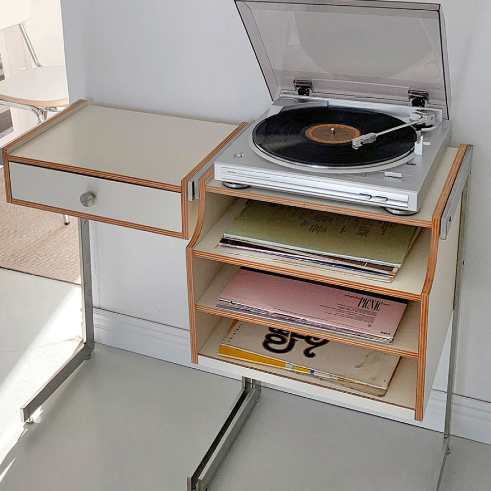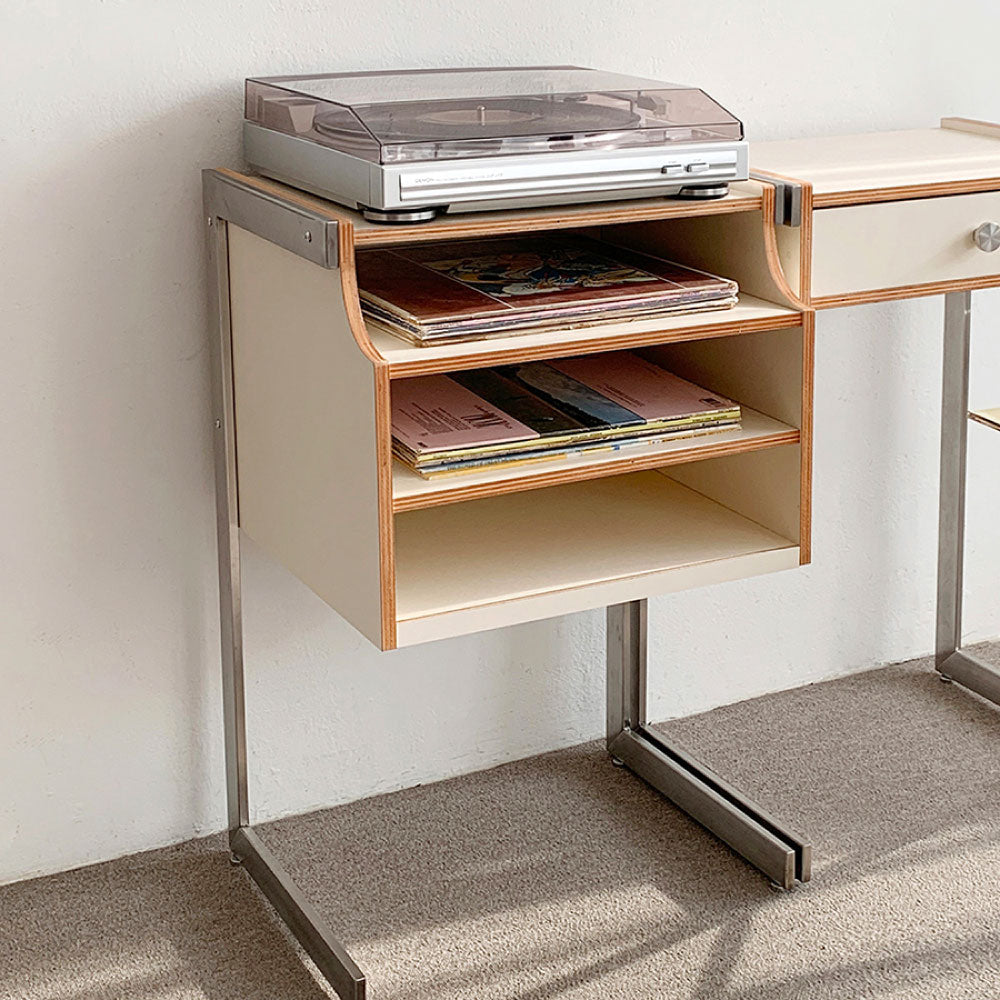 温かみのある色合いの無垢材とステンレス製の脚を組み合わせたLPテーブルで、バミル・モレナLPサイドテーブルならではのヴィンテージな雰囲気を醸し出します。