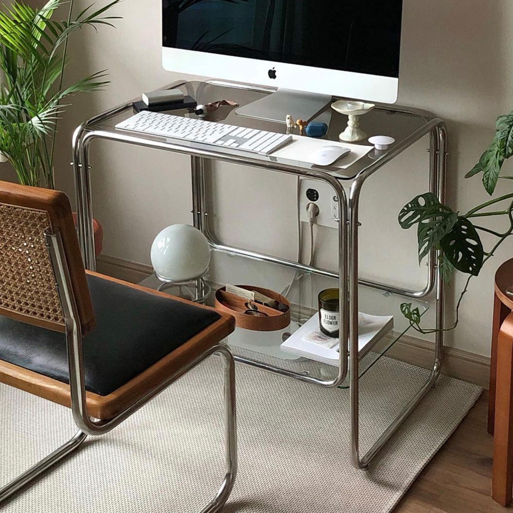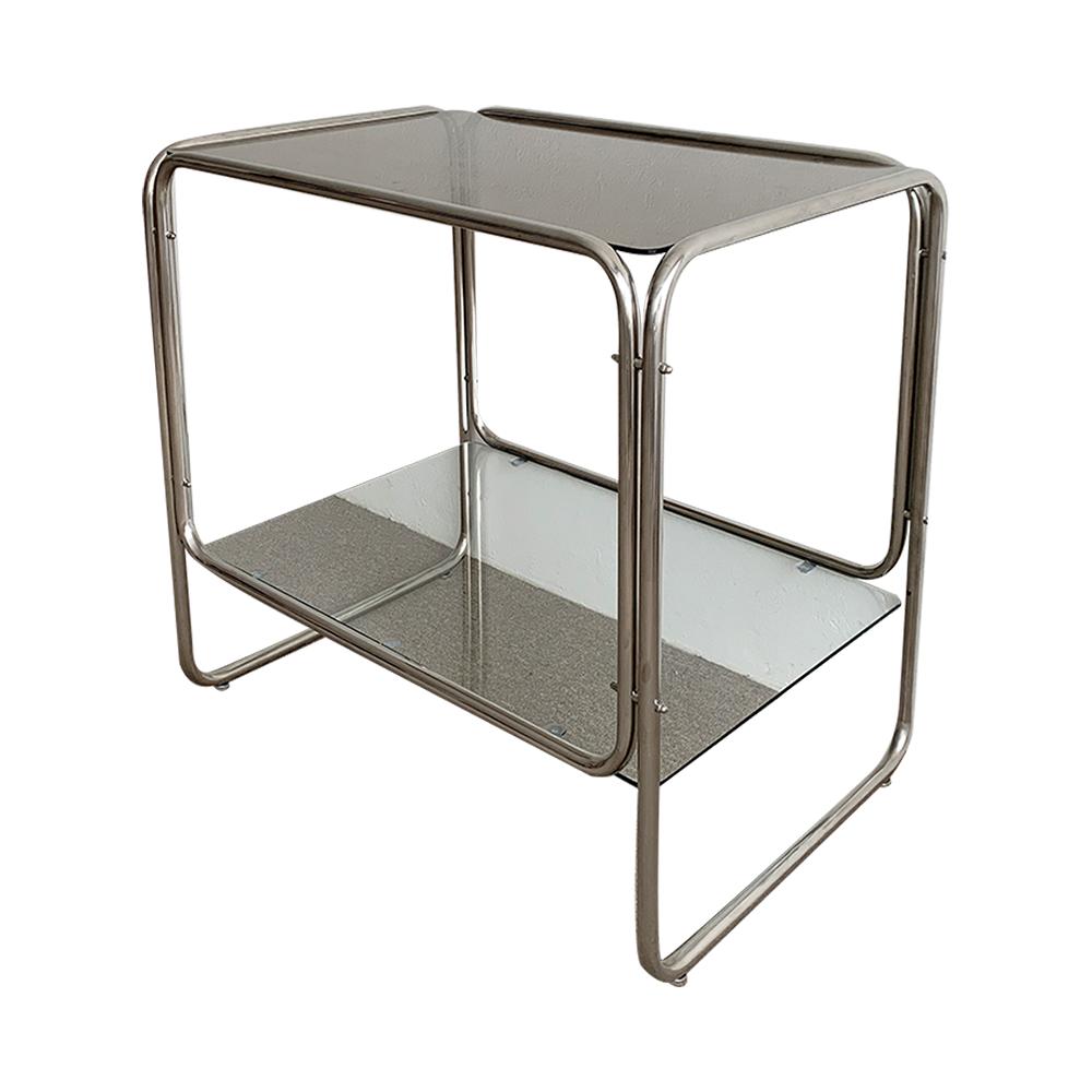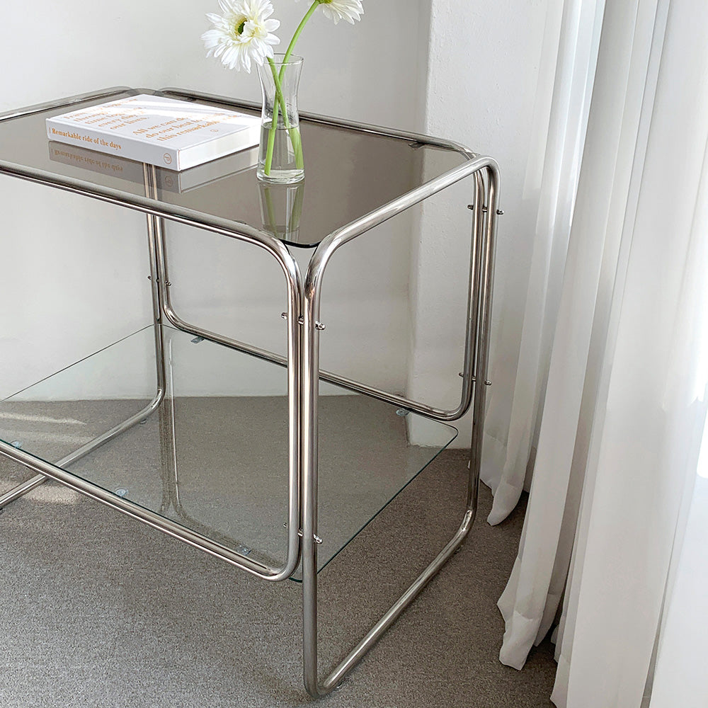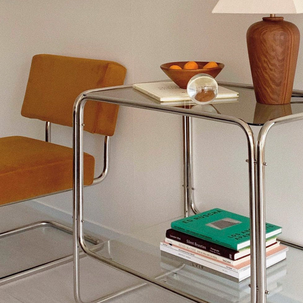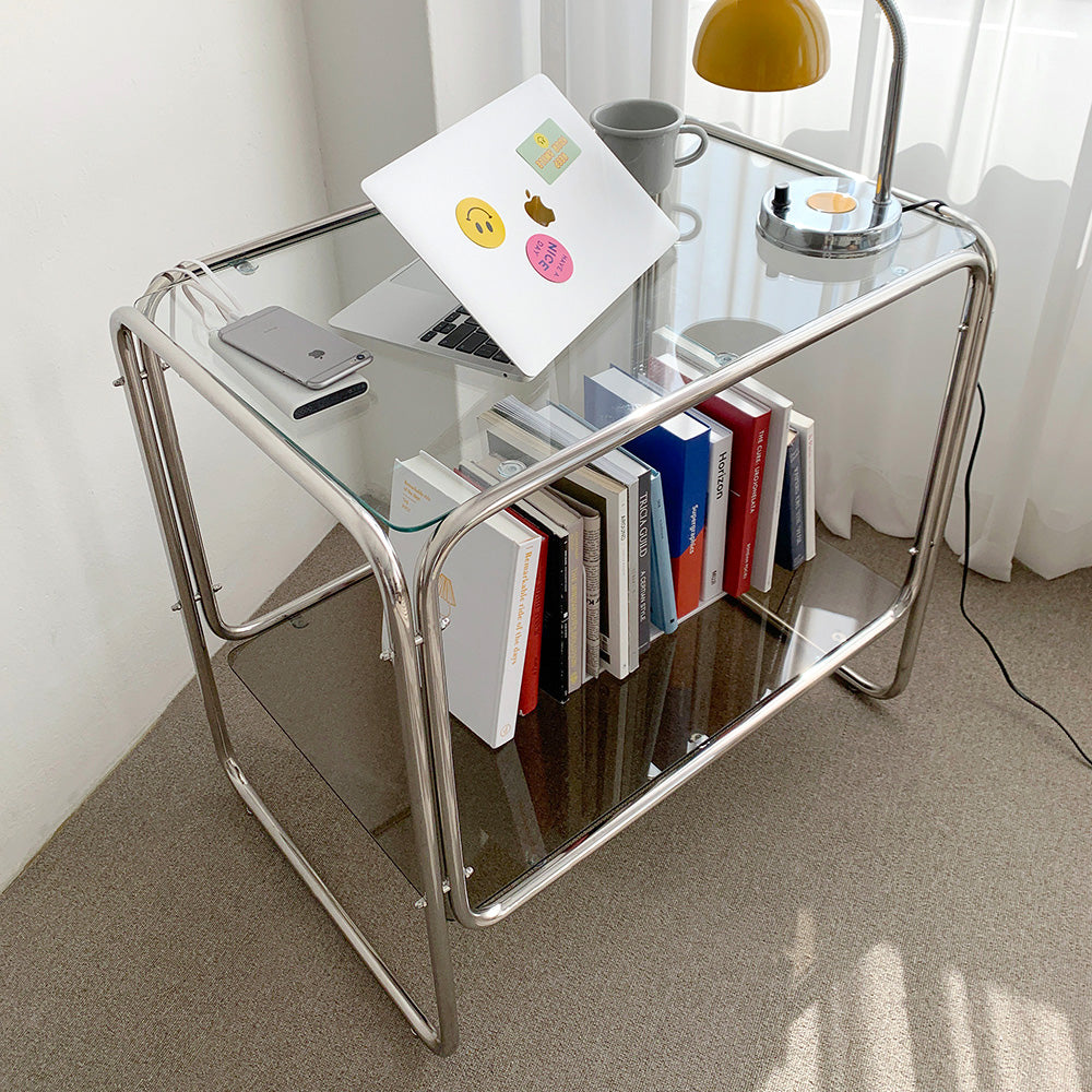 VAMIR ステンレス2段テーブルは、リビングやデスク横の収納棚として活躍。軽やかで洗練された佇まいが魅力。