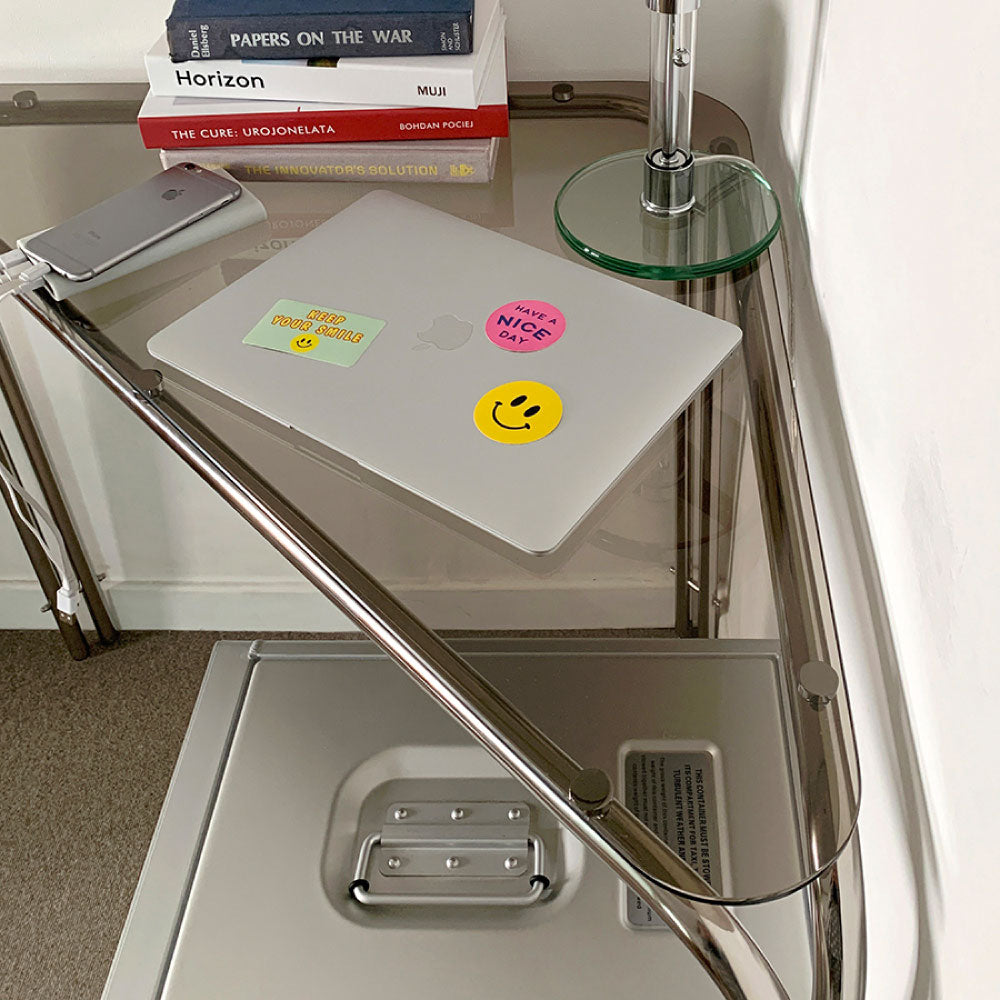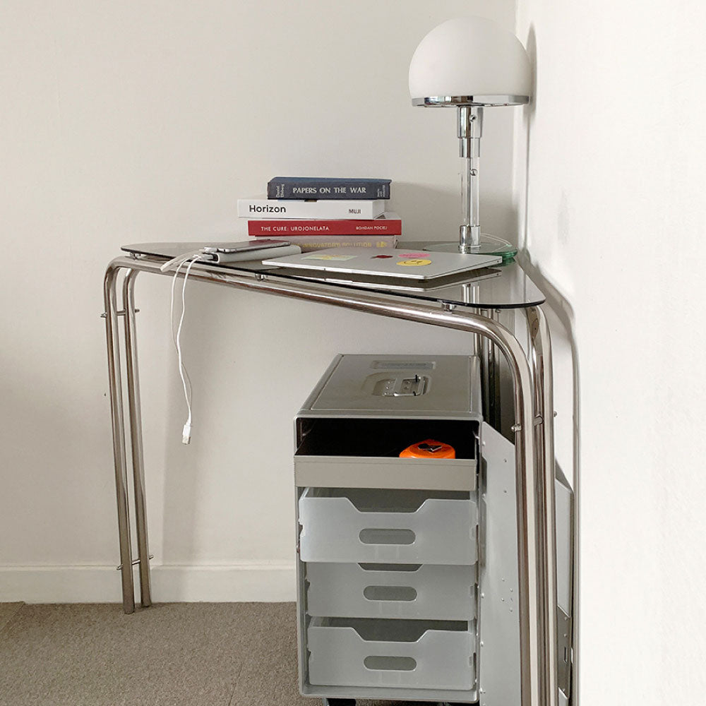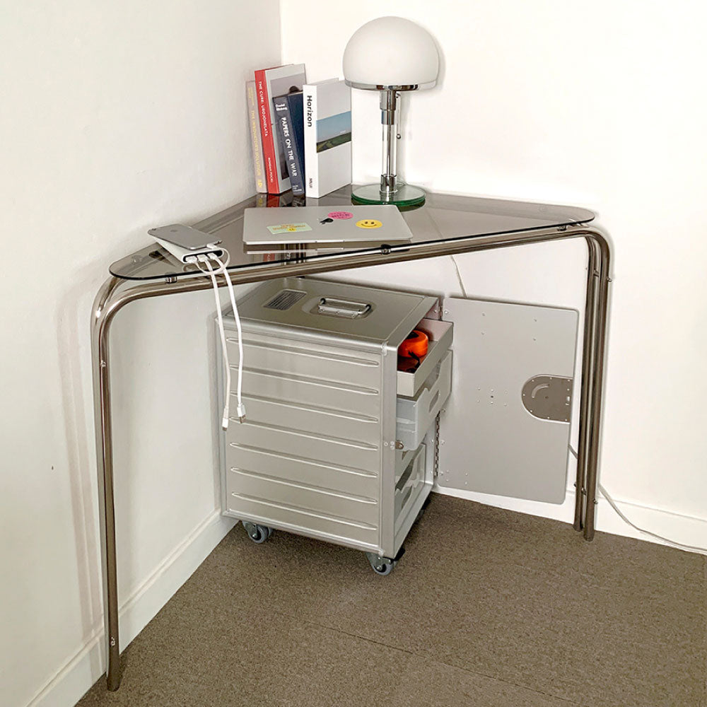 バミルステンレスコーナーテーブルのフレーム接続部ブリッジは組み立て式に設計されており、デザイン的にユニークさを加えています。
