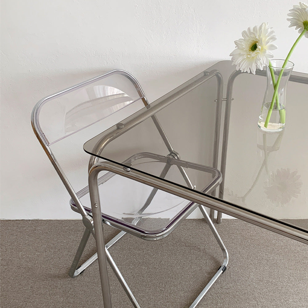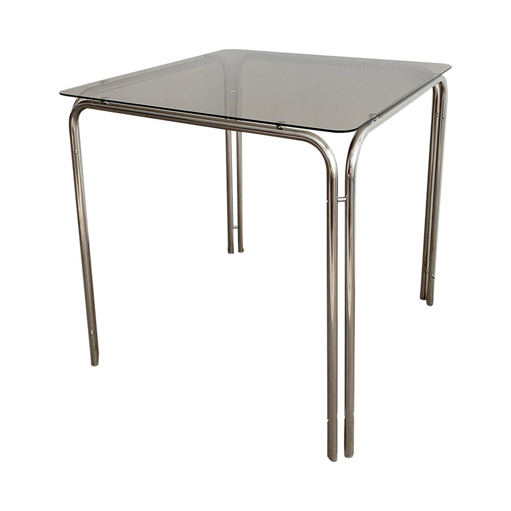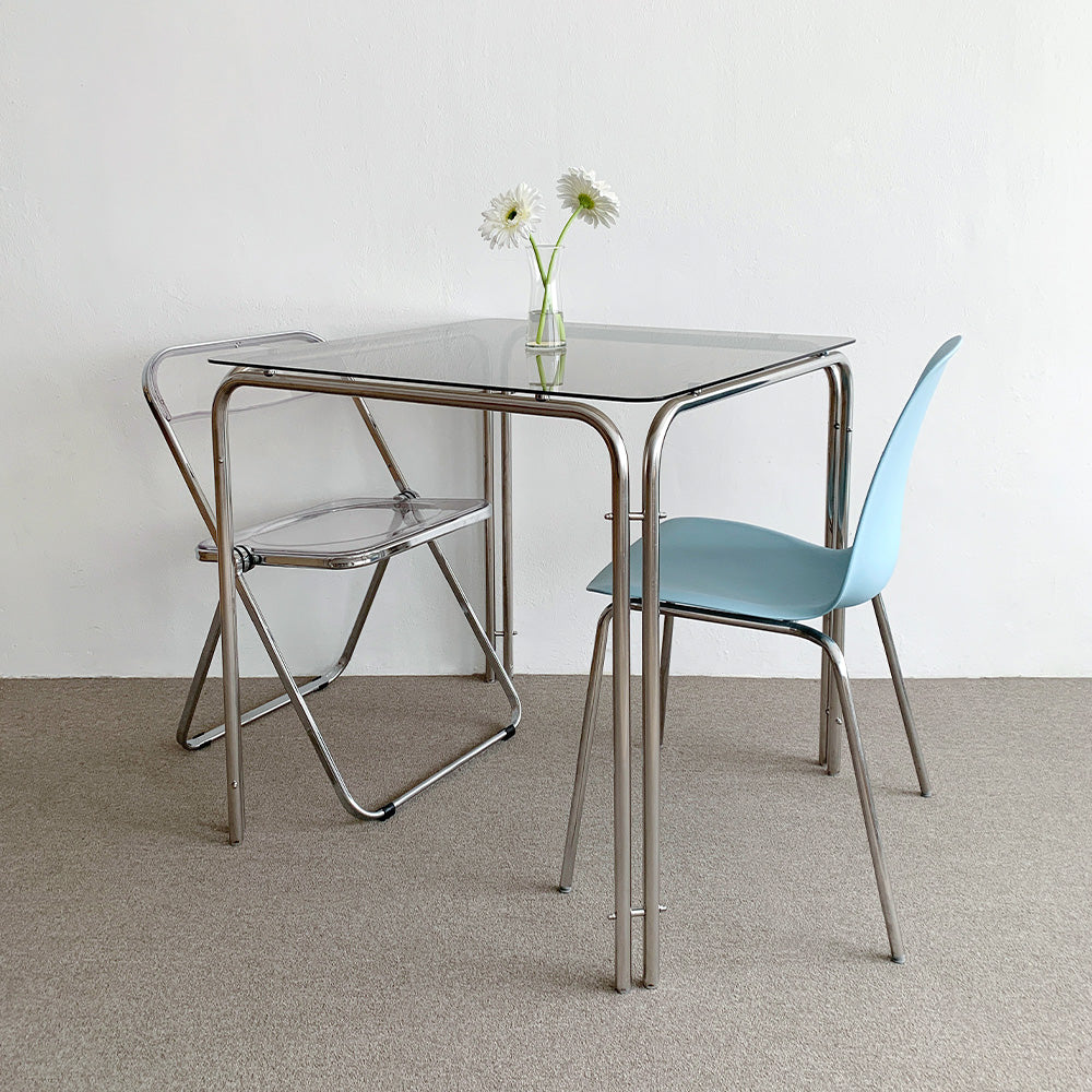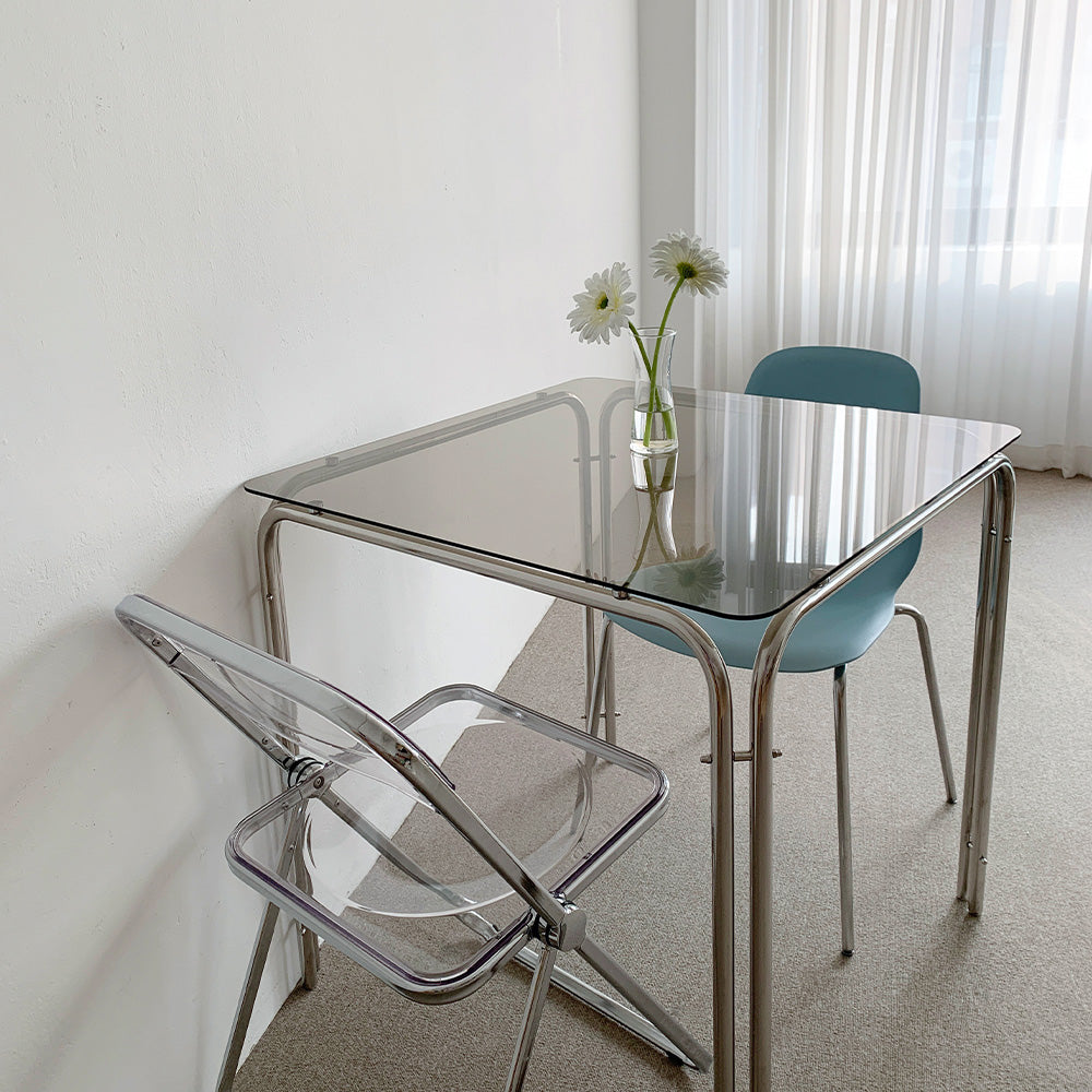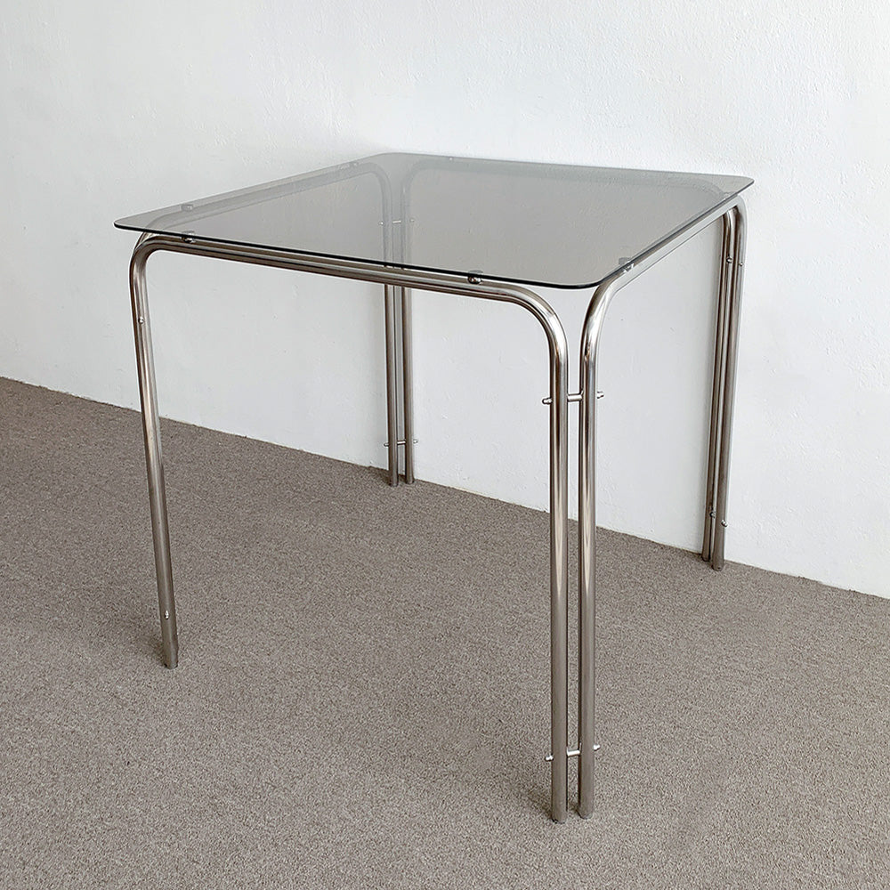 VAMIR ステンレス四角テーブルは、透明感あるガラス天板が魅力。カフェ風インテリアや2人用ダイニングにぴったり。