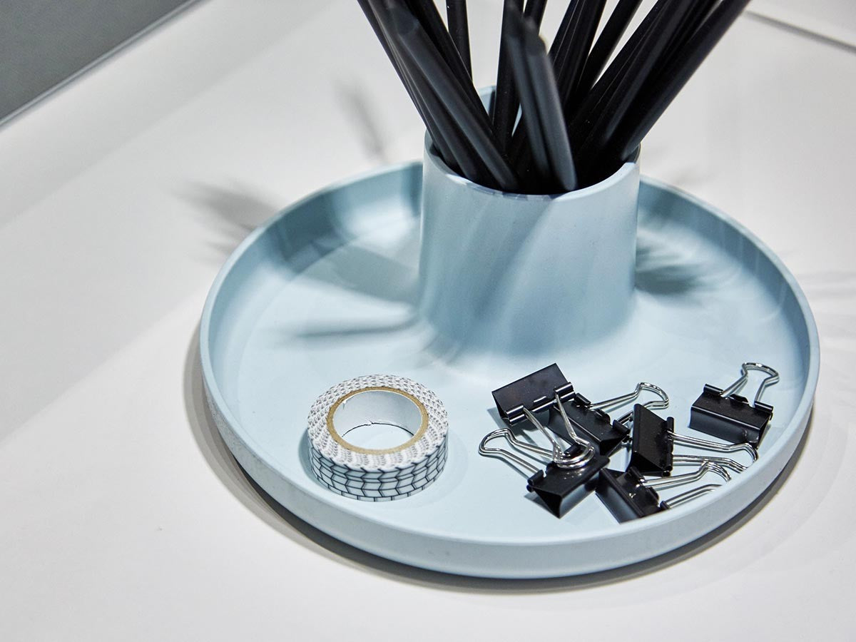 世界で数々の賞を受賞しているスイス人デザイナー、ミシェル・シャーロットによるデスクオーガナイザー。シンプルなお皿とカップを組み合わせたような、実用性のある小物用の収納アイテムです。漫画や彫刻にインスピレーションを得てデザインされたちょっと不思議なかたちで、明るく楽しい雰囲気を演出します。