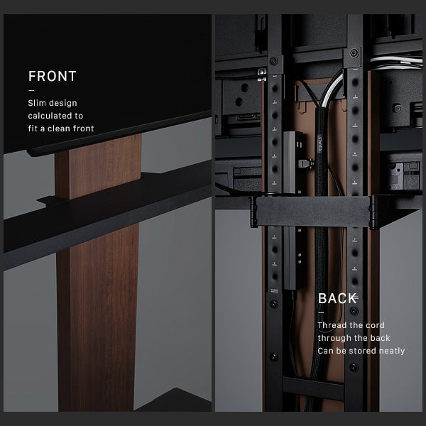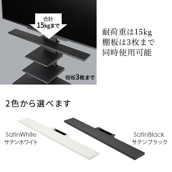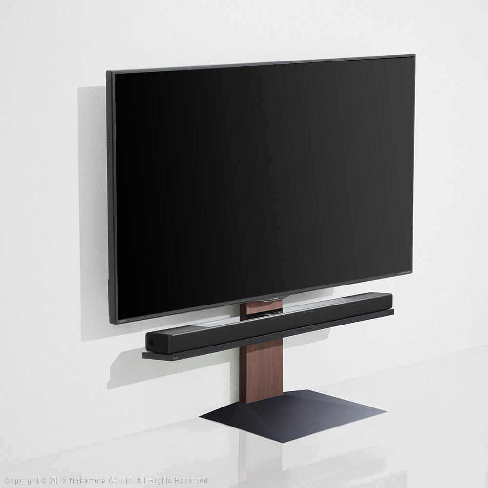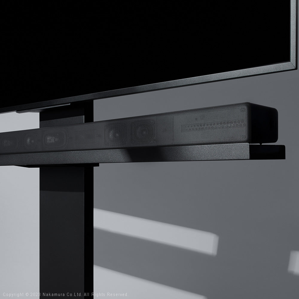 こだわりの位置に無段階調節可能な専用棚板です。テレビの脚に干渉しやすいサウンドバーをテレビ直下に設置することができます。