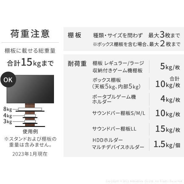 耐荷重: 15 kg重量: 4.5 kg