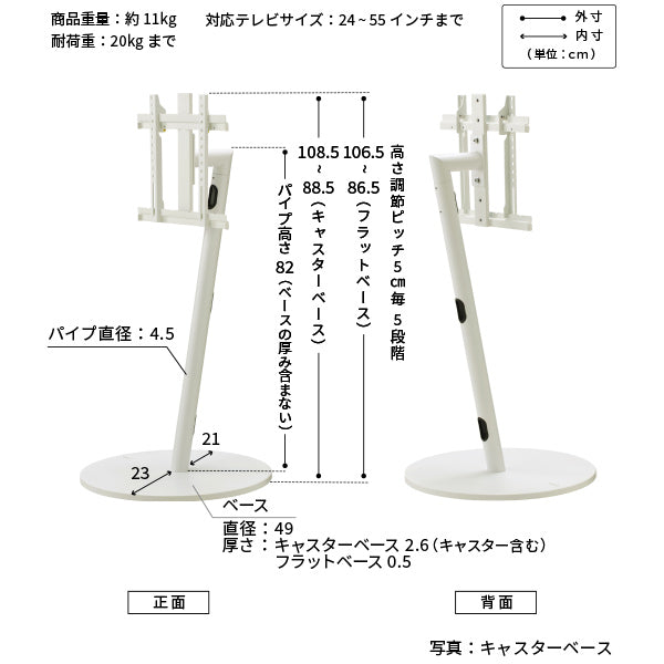 幅 49×奥行 49×高さ 88.5-108.5cm