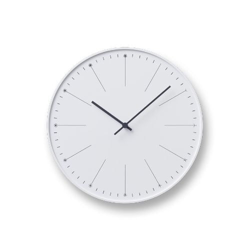 数字の代わりにタンポポ(= dandelion)の綿毛の本数によって時刻を伝える掛け時計です。綿毛がふわふわと風に舞い散るように、流れ続ける時を表現しています。タンポポの綿毛をモチーフにした繊細なデザインが特徴のこの時計は、シルク印刷の限界とされる本体枠の際から8mmの場所まで印刷することによって、時計盤面いっぱいに綿毛が舞い散るイメージを再現しています。