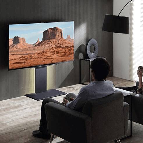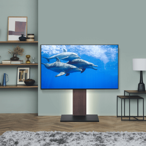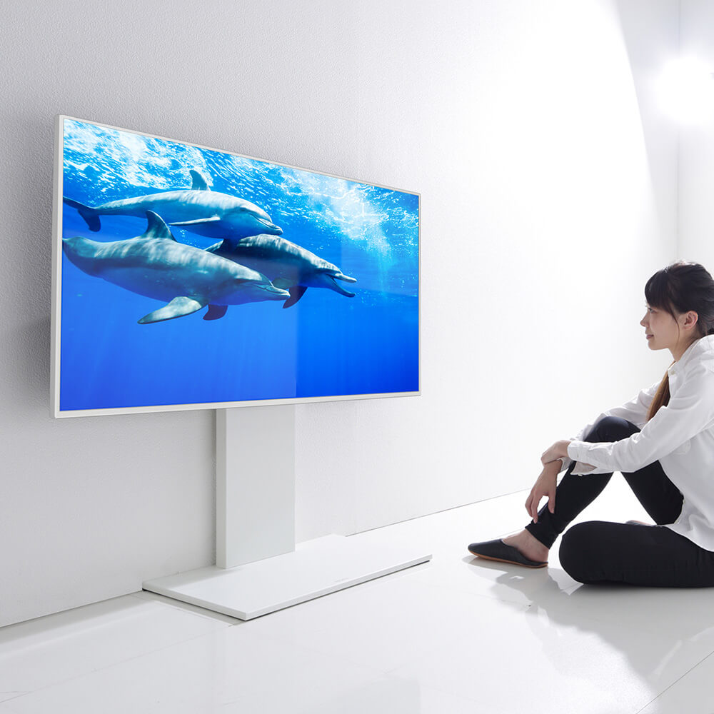 あるゆる空間で幅の広い視聴スタイルが楽しめるテレビスタンドです。壁との一体化を意識し、正面からネジ穴が見えないシンプルなデザインのモデルです。壁寄せタイプのため、壁から離さず設置してください。