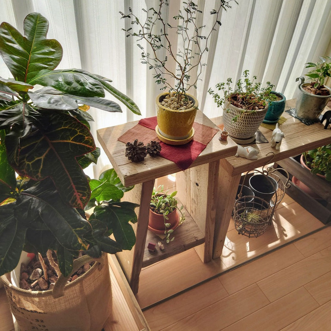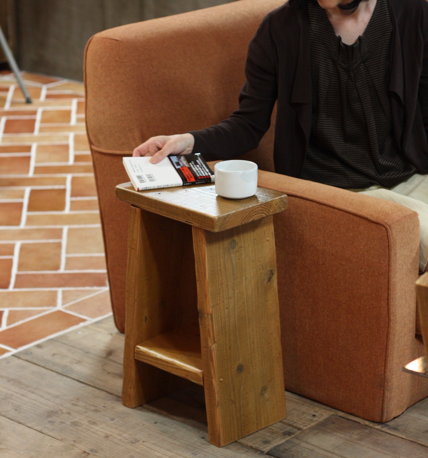 踏み台のカタチをした高さ50cmのスツールです。アルコールスプレースタンドとしてもちょうどいい高さです。観葉植物や照明の台など、家中で幅広く使えます。