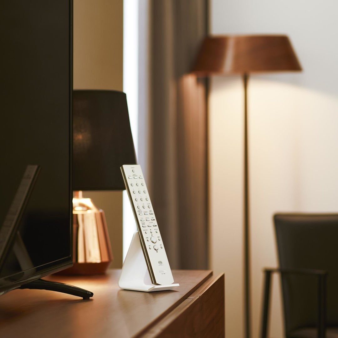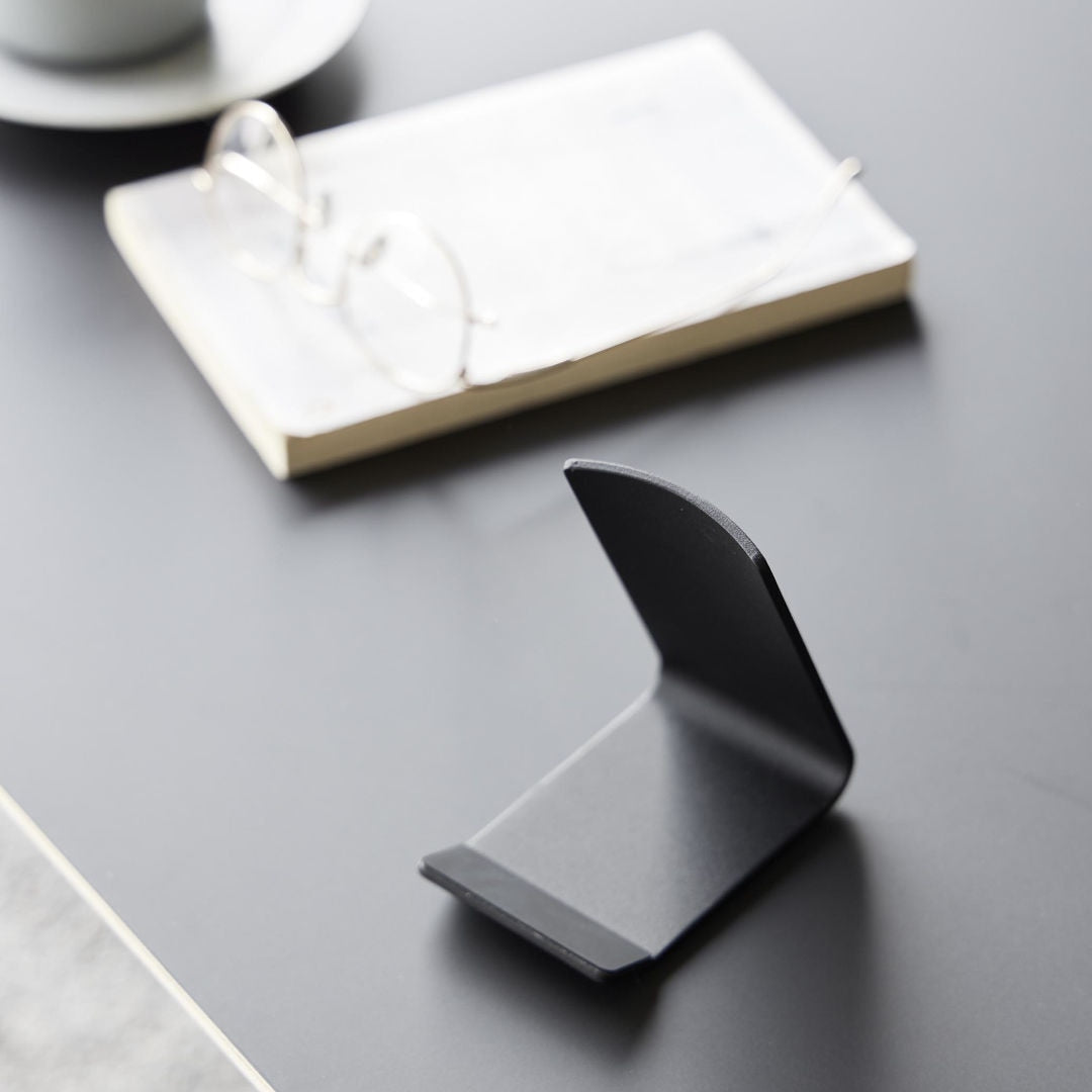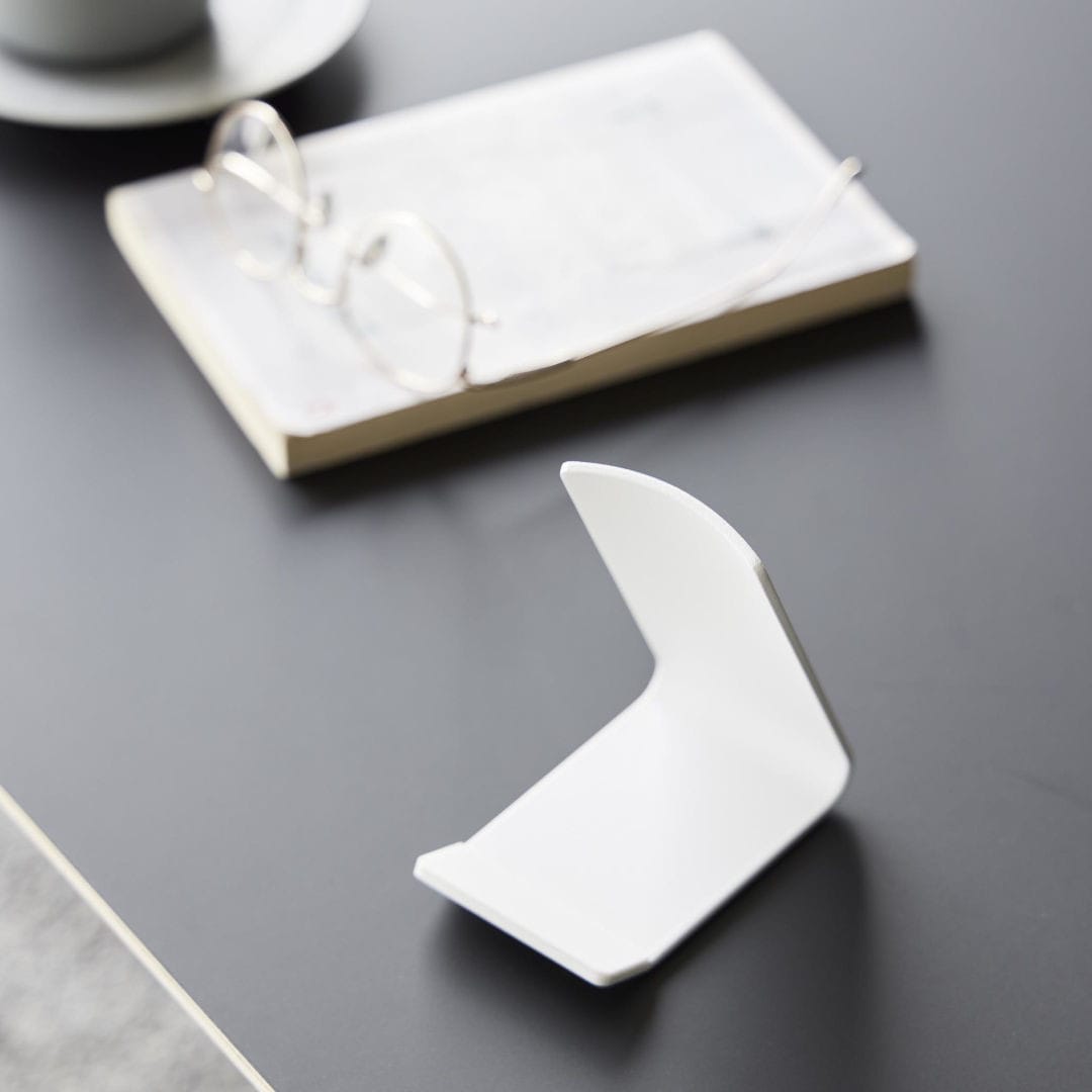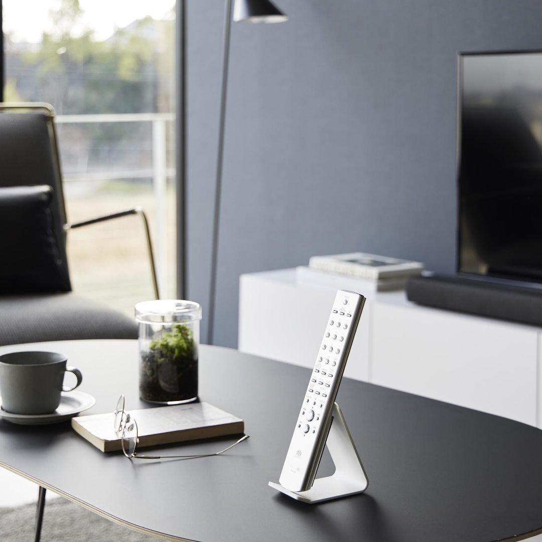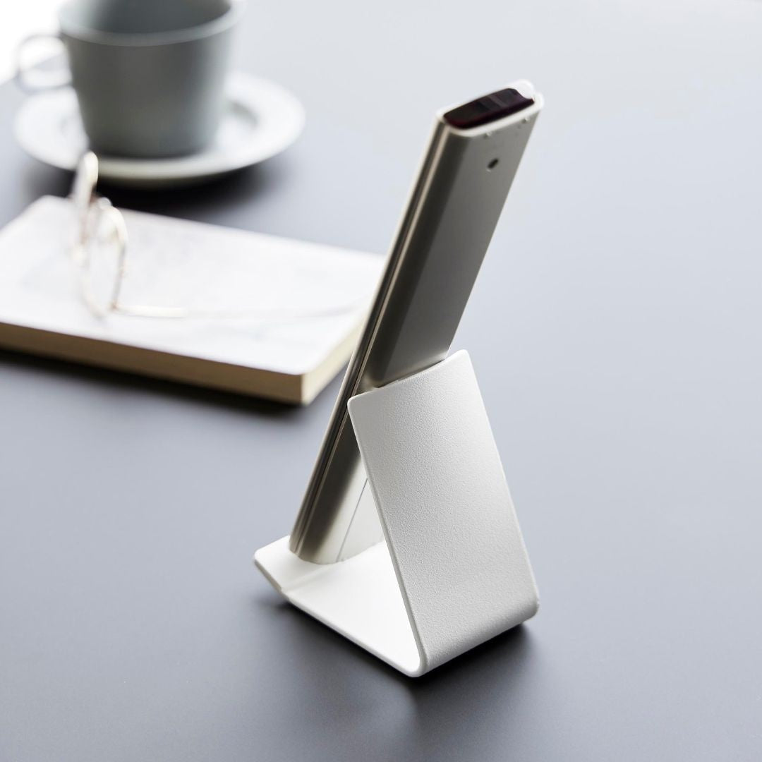 ディスプレイ収納ができる、リモコンスタンドテレビやエアコンなどのリモコンをすっきりと立てて収納できるアイテムです。無造作に置きがちなリモコンを定位置にまとめることで、リビングやデスク周りが整い、生活感を抑えた空間づくりができます◎リモコンの背面がフィットする構造で、さまざまなサイズに対応しているのも嬉しいポイント。モノトーンで洗練されたデザインカラーはホワイト・ブラックの2色展開。スチール素材の質感と直線的なフォルムが、空間に上質な印象を与え、まるでディスプレイのように美しく収納できます。緩やかな湾曲した背もたれで、安定感と保護性バッチリ◎スタンドの背もたれ部分はゆるやかに湾曲しており、様々なリモコンがフィットする形に◎またスタンド本体に適度な重みがあるから安定感抜群。底面にはシリコーンゴムの滑り止めとクッションが施されており、リモコンを傷つけず、しっかりとホールドします。1本専用の設計だからこそ、すっきりとした佇まいが際立ちます。省スペースで、どこでも使えるサイズ感サイズはW6×D9.9×H10.4cmとコンパクトで、テレビ横やデスクの隅など、ちょっとしたスペースに置けるのが魅力。ゲーム機のリモコンから大型のテレビリモコンまで対応可能で、家庭だけでなくオフィスやホテルの客室などでも活躍します。お手入れ・収納のしやすさも抜群スチール製の本体は汚れが付きにくく、乾いた布でサッと拭くだけで清潔を保てます。凹凸の少ないシンプルな構造で、掃除もラク。見た目も機能もスマートに整う、使い勝手の良さが光るアイテム◎