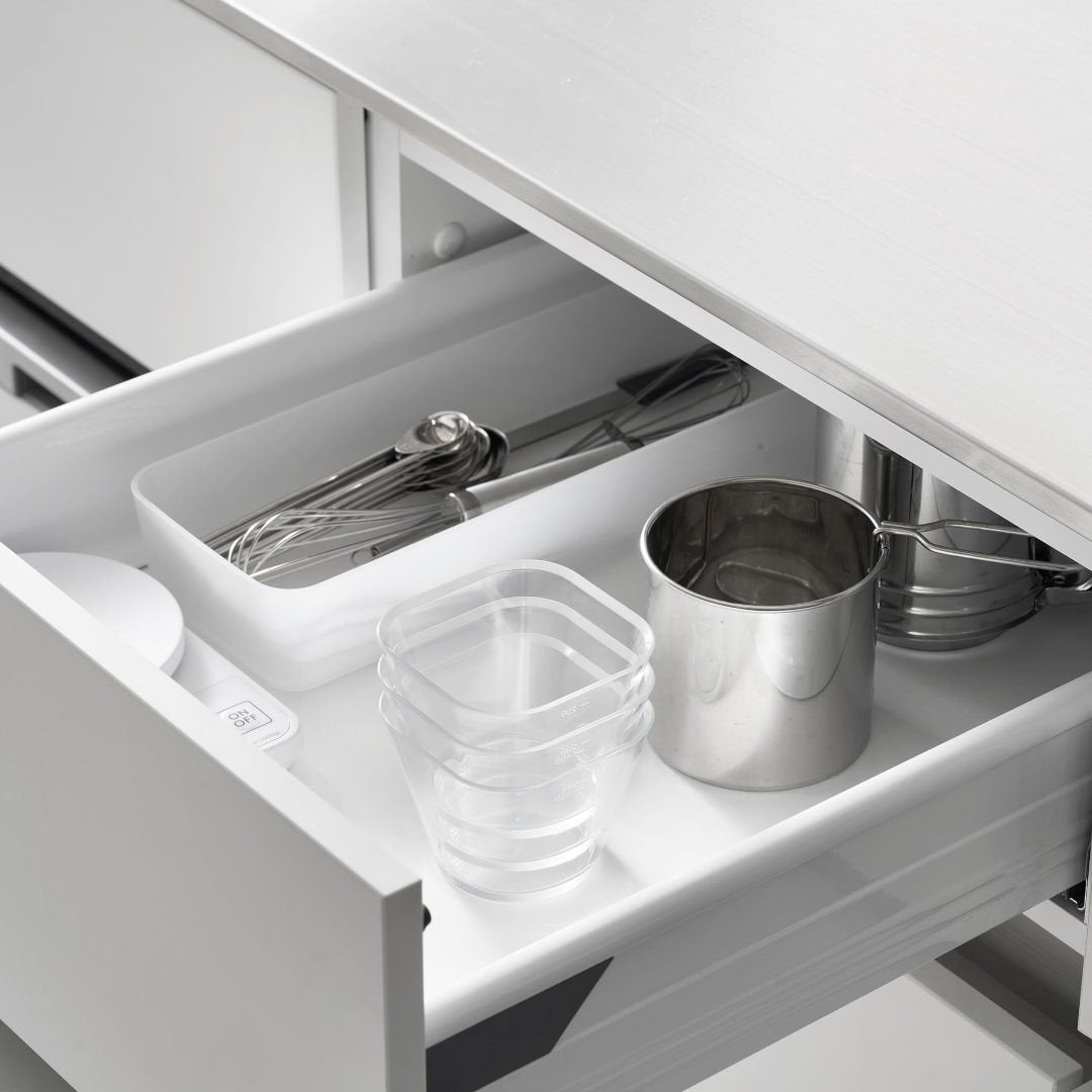 電子レンジ・食洗機・冷凍対応。 計量できる日本製の下ごしらえボウル 3個セット「TP×」という素材に注目。電子レンジ・冷凍・食洗機に対応しており、計量・加熱・保存・洗浄まで一連の作業をこのボウルひとつでこなせます。とにかく使い勝手を極めたSサイズのボウル3点セット。下ごしらえに便利ですし、50mlごとのメモリ付きで200mlまで計量できます。お菓子作りやドレッシング作りなど、日常の調理をスマートにサポートします◎※S/M/L3点セットは別ページにてご用意しております。ガラスのような透明感と、シンプルな美しさガラスのような透明感を持ちながら、割れにくく軽量な高機能樹脂「TP×」を使用しています。towerシリーズらしいミニマルなフォルムで、どんなキッチンとも馴染みます。上からでも横からでも中身が見やすいから使いやすい。プリン容器にしたり、果物を盛る器として使うのもグッド。また、レンジ調理した後にそのまま食卓に出しても違和感のない美しいデザインだから、洗い物が増えずに済むのもうれしいですね。高品質な素材で、安心の日本製素材には、三井化学のポリメチルペンテン(TP×)を使用。耐熱温度は170℃、耐冷温度は-40℃と、幅広い温度帯に対応しています◎この素材は軽量で耐久性が高く、離型性・防汚性にも優れているため、汚れが付きにくく、衛生的に使えるのが特長です。さらに安心の日本製で、品質にも信頼が持てます。片手で持ちやすく、注ぎやすい形状で快適な調理。持ちやすく、液体が注ぎやすい設計だから、ドレッシングやソースの調合、卵を溶く作業など、細かい調理にもぴったりです◎軽くて扱いやすいので、子どもと一緒のクッキングにもおすすめ。3個セットなので、用途ごとに使い分けられるのも便利ですよね。お手入れ簡単。重ねて収納できる省スペース設計表面は汚れが落ちやすく、におい移りもしにくい素材で、いつでも清潔に保てます。使用後は食洗機で洗えるほか、「TP×」素材は、離型・防汚性も高いので、手洗いでもさっと汚れが落ちるのもポイント。さらに、使わないときは3つを重ねてコンパクトに収納できるから、キッチンの限られたスペースでも場所を取りません。