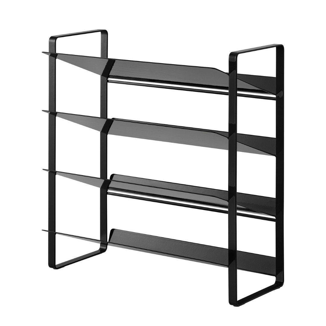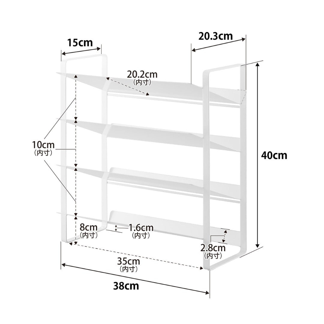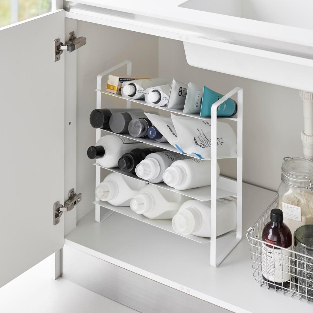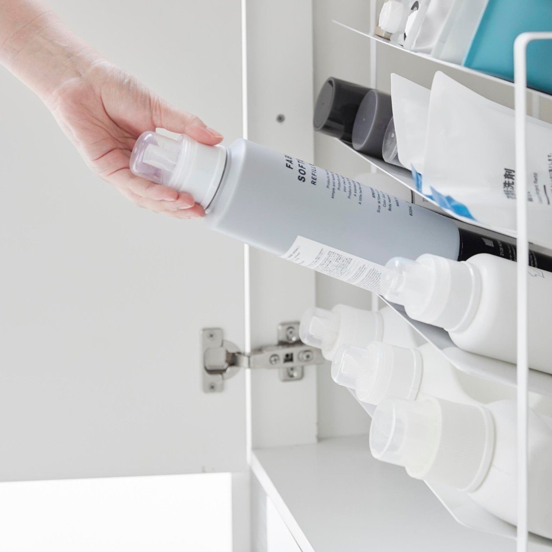 出し入れしやすい、ワイドな大容量ボトルストッカー調味料・洗剤・ストック品などの収納に。キッチン・洗面下収納で使えて、便利な大容量ボトルストッカー。斜めになっているので出し入れしやすく、500mLのペットボトルはなんと20本収納可能。インテリアに馴染みやすい、2色のカラーバリエーションカラーは、清潔感のあるホワイト、スタイリッシュなブラックをご用意しました。ストッカーを置く場所や、ストッカーに置くものの雰囲気に合わせてお好みのカラーをお選びください。たっぷり入って、取り出しやすい目安として、500mLのペットボトルなら20本収納可能。また棚が上向きに傾斜が付いているので、低い位置の収納でも取り出しやすいです。大量にストック買いしがちな飲料水は、ストッカーを活用してキレイにまとめましょう。キッチン以外に、様々な場所で大活躍。キッチンに限らず、洗面台下に設置するのもおすすめ。シャンプーボトル・洗剤ボトル・スプレー缶やチューブ類などを、一か所にまとめて収納しておくのもグッド。ゴチャゴチャしているものを、ストッカーを活用してスッキリ。