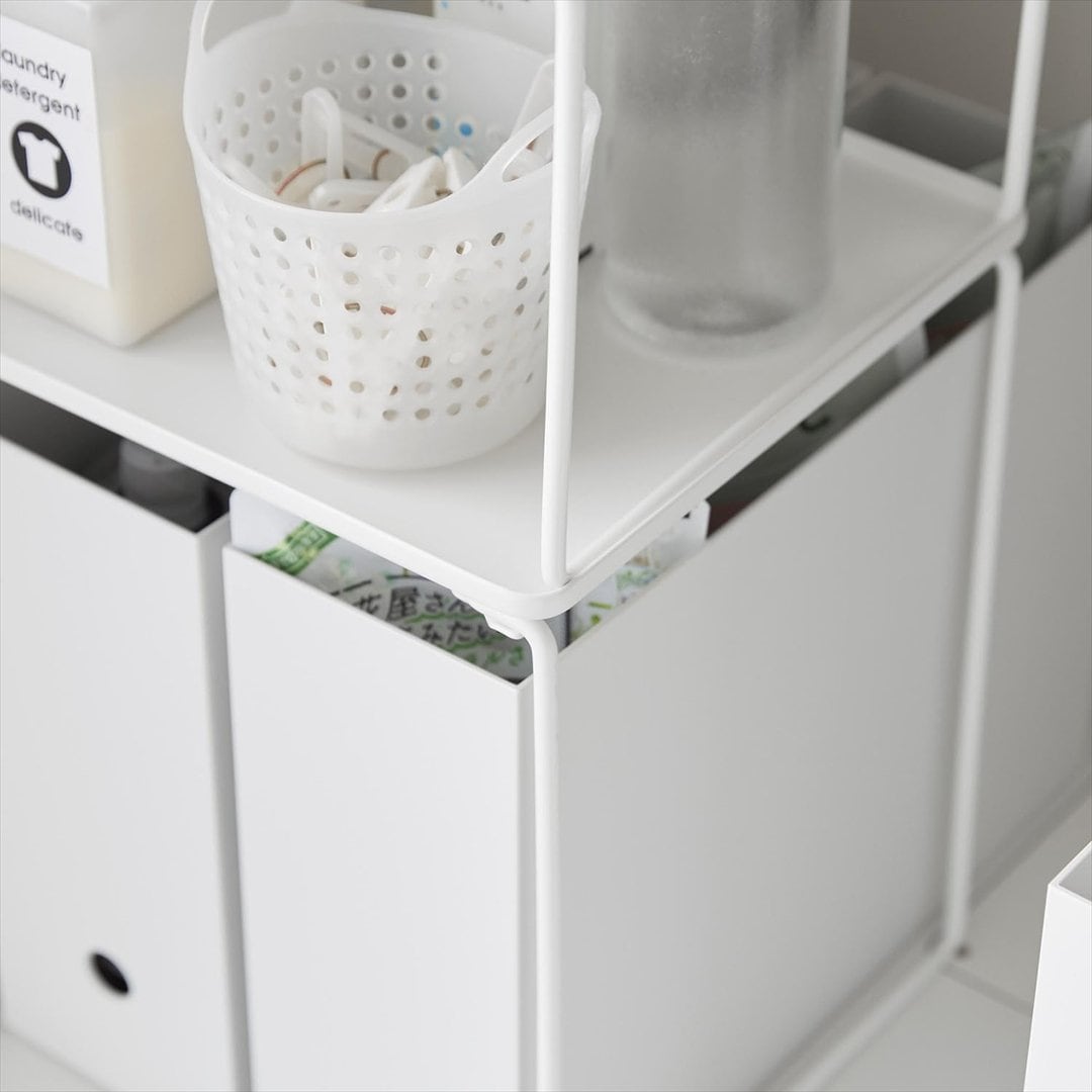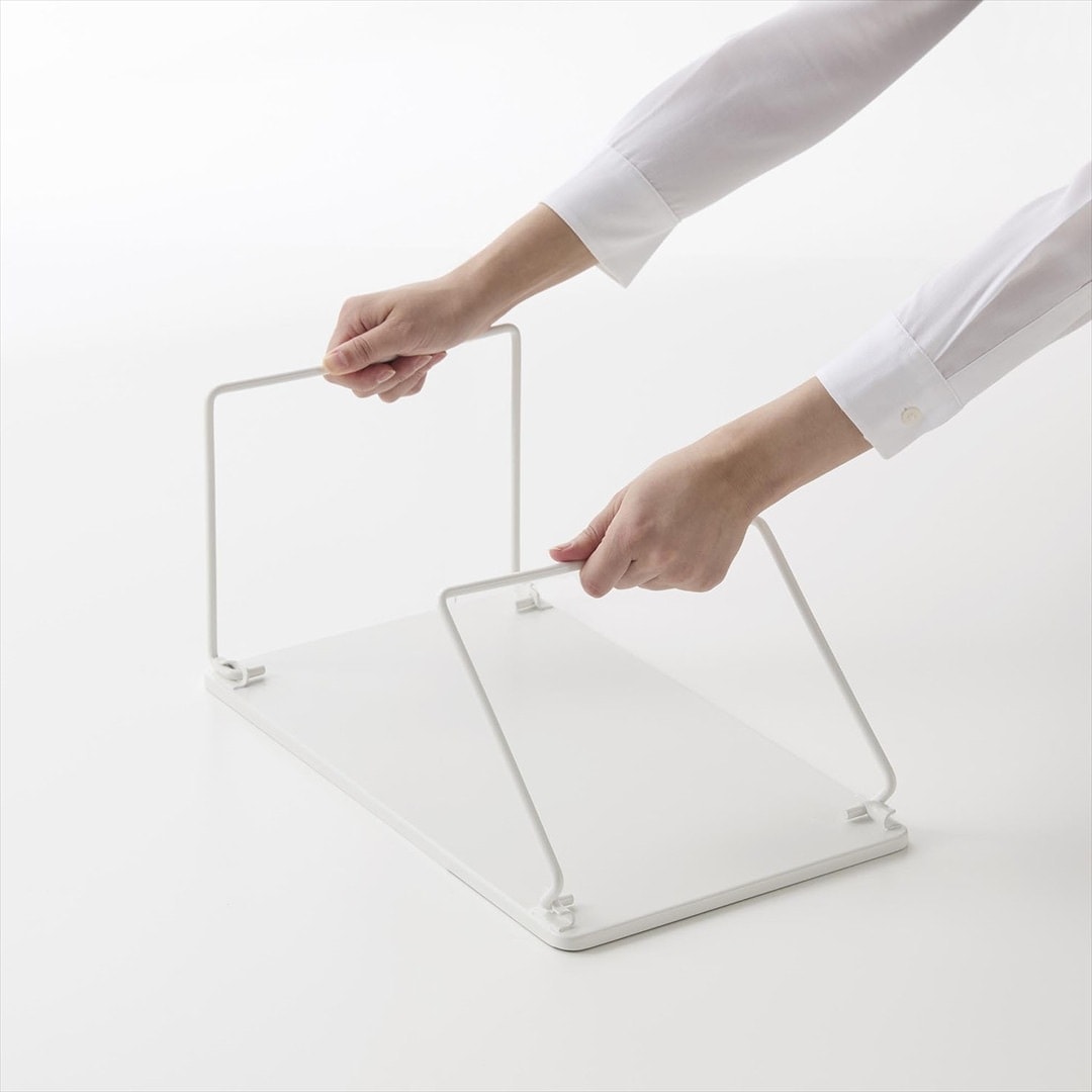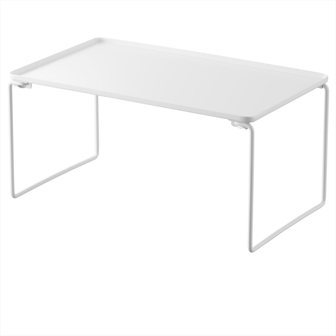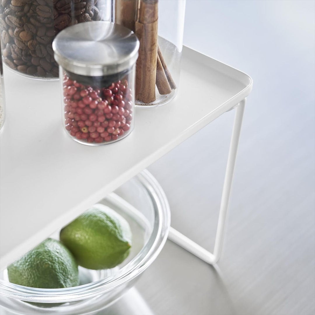 シンク下のスペースを有効活用して収納力をUP。キッチンシンク下や洗面所下のデッドスペースを収納スペースとして活用する積み重ね棚です。利用しないときは折りたたんでスリムに収納できるので邪魔になりません。キッチンシンク上に置いて調味料ラックとしてもご使用いただけます。どんなインテリアにもなじむ、2色のカラーバリエーションカラーは、明るい印象のホワイト、スタイリッシュなブラックをご用意しました。キッチンになじみやすいシンプルなモノトーンカラーです。キッチンや洗面所など設置場所の雰囲気に合わせてお好みのカラーをお選びください。スタッキングして三段収納に収納したお鍋やボウルの上に種を作ることで、いままでデッドスペースになっていた空間を新たな収納スペースとして有効活用します。二個を縦にスタッキングして使えば三段収納にも。お手持ちの収納ボックスと組み合わせれば引き出しのようにも使えます。※こちらは一個組の商品です。調味料を乗せても落下しづらいフチ付き天板天板はフチ付きになっているので上に乗せたものがすべり落ちにくい設計です。耐荷重は4kgあるため調理用油や調味料のストックなども無理なく収納できて便利。使わないときにはスリムに折りたためるので場所を取りません。使用場所に合わせて選べる2サイズ展開高さ19cm/28cmの2パターンをご用意しました。奥行きと横幅は同サイズなので、サイズ違いでも重ねたり並べたりしてご使用いただけます。設置スペースや収納物に合わせて最適なサイズをお選びください。※こちらの商品は『折り畳み積み重ね棚 M』の商品となり、『折り畳み積み重ね棚 L』の商品は別売です。