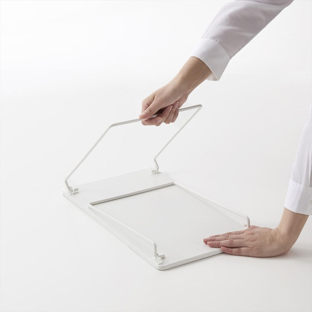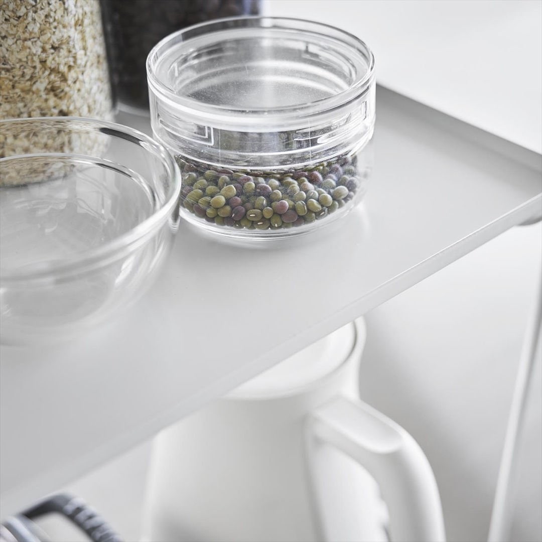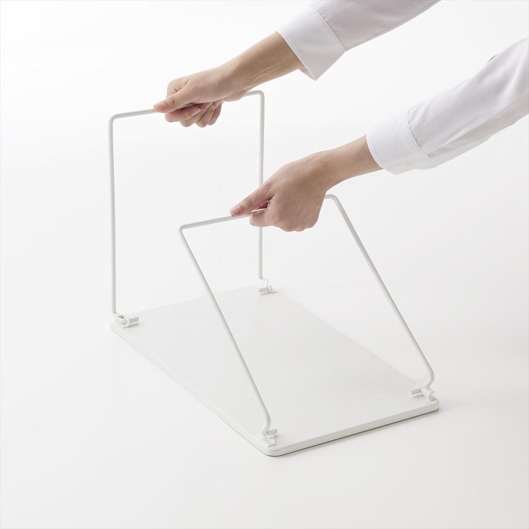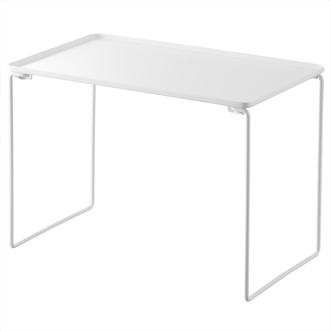 シンク下のスペースを有効活用して収納力をUP。キッチンシンク下や洗面所下のデッドスペースを収納スペースとして活用する積み重ね棚です。利用しないときは折りたたんでスリムに収納できるので邪魔になりません。キッチンシンク上に置いて調味料ラックとしてもご使用いただけます。どんなインテリアにもなじむ、2色のカラーバリエーションカラーは、明るい印象のホワイト、スタイリッシュなブラックをご用意しました。キッチンになじみやすいシンプルなモノトーンカラーです。キッチンや洗面所など設置場所の雰囲気に合わせてお好みのカラーをお選びください。スタッキングして三段収納に収納したお鍋やボウルの上に種を作ることで、いままでデッドスペースになっていた空間を新たな収納スペースとして有効活用します。二個を縦にスタッキングして使えば三段収納にも。お手持ちの収納ボックスと組み合わせれば引き出しのようにも使えます。※こちらは一個組の商品です。調味料を乗せても落下しづらいフチ付き天板天板はフチ付きになっているので上に乗せたものがすべり落ちにくい設計です。耐荷重は4kgあるため調理用油や調味料のストックなども無理なく収納できて便利。使わないときにはスリムに折りたためるので場所を取りません。使用場所に合わせて選べる2サイズ展開高さ19cm/28cmの2パターンをご用意しました。奥行きと横幅は同サイズなので、サイズ違いでも重ねたり並べたりしてご使用いただけます。設置スペースや収納物に合わせて最適なサイズをお選びください。※こちらの商品は『折り畳み積み重ね棚 L』の商品となり、『折り畳み積み重ね棚 M』の商品は別売です。