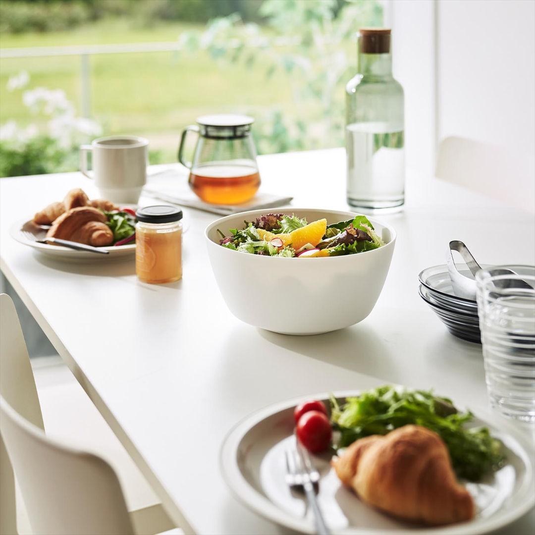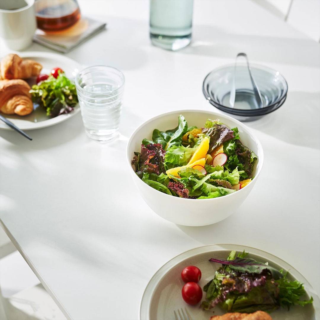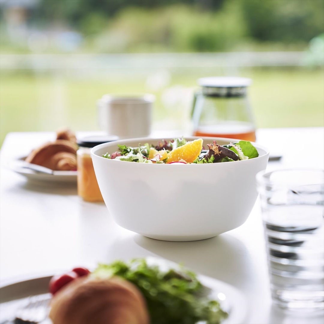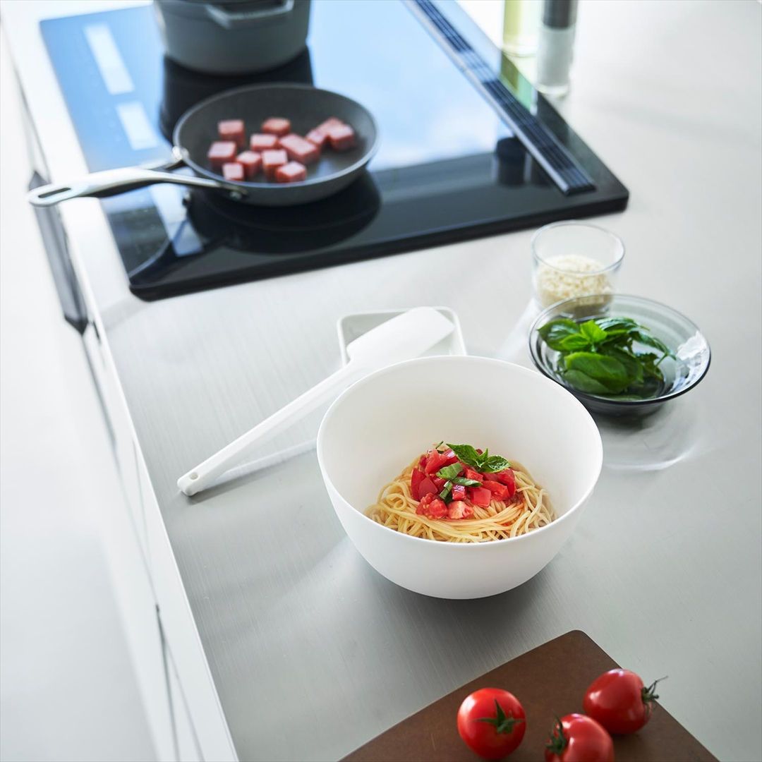 安定感抜群。 斜めがキープできる万能ボウル材料を混ぜ合わせるときに斜めの角度をキープしてくれるから手首が疲れにくい。卵や生クリームの混ぜ合わせがしやすくなった万能調理ボウルです。電子レンジにも使える耐熱タイプなのであらゆる調理に対応可能。スタイリッシュなデザインだから器としてそのまま食卓にも出せます。キッチンになじむ、2色のカラーバリエーションカラーは、清潔感のあるホワイト、シックなブラックをご用意しました。キッチンになじみやすいシンプルなモノトーンカラーです。お手持ちの調理ツールやテーブルウェアに合わせてお好みのカラーをお選びください。軽い力で角度をキープできる底面が傾斜構造になっていて、ボウルを傾けた際に斜めをキープしてくれる設計です。軽く持つだけで角度が保たれるので抑えている手首に負担が掛かりにくいのがうれしいポイント。混ぜている最中に斜めに傾けすぎて中身がこぼれる、なんてアクシデントを起こしづらく作業がスムーズです。電子レンジ・食洗機対応で使い勝手◎電子レンジにもご使用いただける耐熱ボウルです。電子レンジでの野菜の下茹でや、お菓子づくりでよく使う溶かしバターを作ったりもできます。ガラス製とは異なり非常に軽量なので重さを感じづらく扱いやすいです。食洗機にも対応しているのでお手入れもラクちんです。用途に合わせて選べる3サイズ展開調味料の混ぜ合わせやドレッシング作りにぴったりなSサイズ、野菜やフルーツなどを洗うのに程よいサイズ感のMサイズ、かさばる葉物野菜や家族でシェアするのにちょうど良いLサイズの3サイズをご用意しました。ご使用シーンに合わせて最適なサイズをお選びください。※こちらの商品は『傾けて混ぜやすい調理ボウル M 電子レンジ対応』の商品となり、他サイズは別ページにてご用意しております。