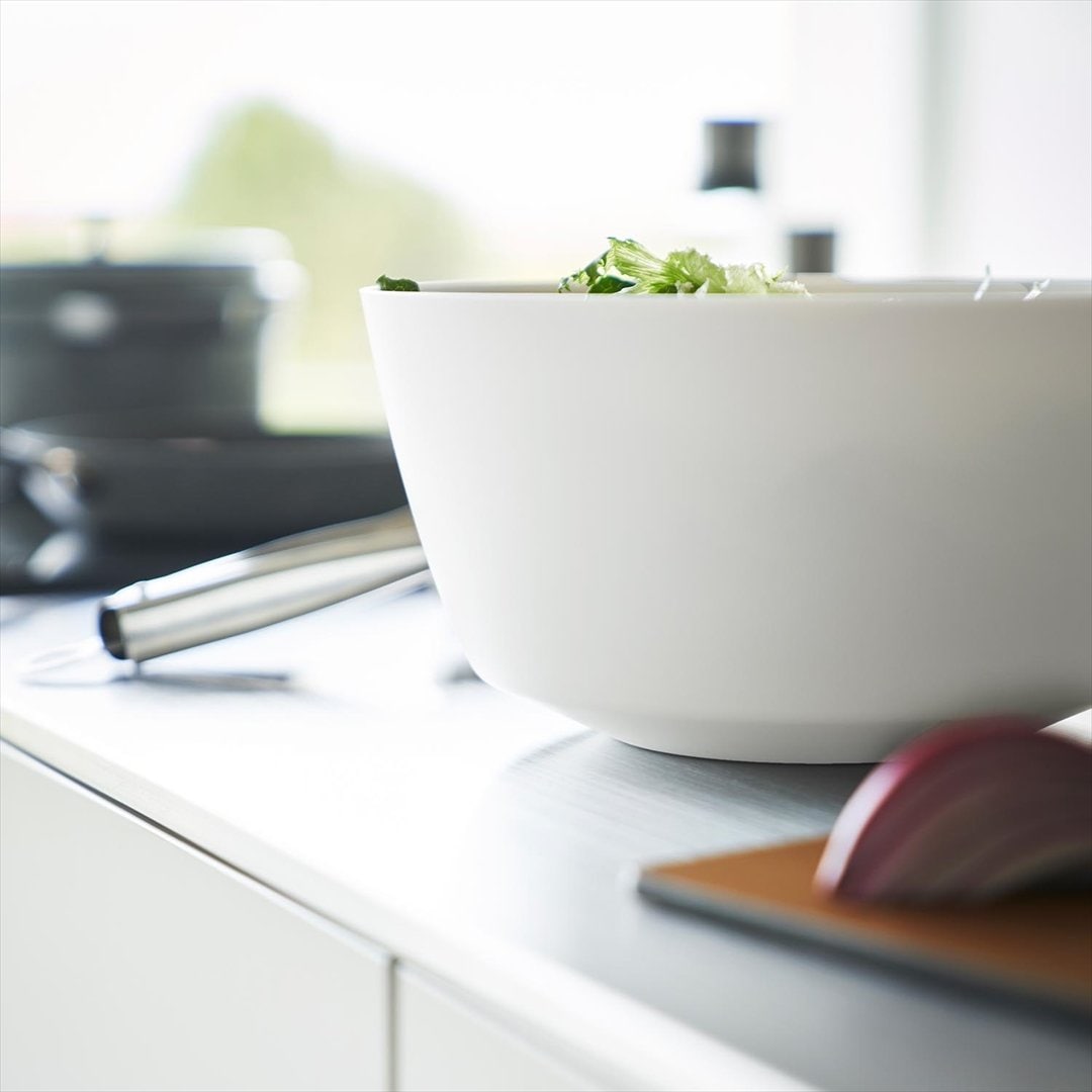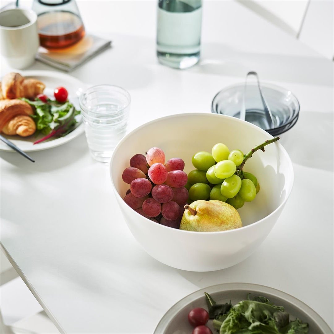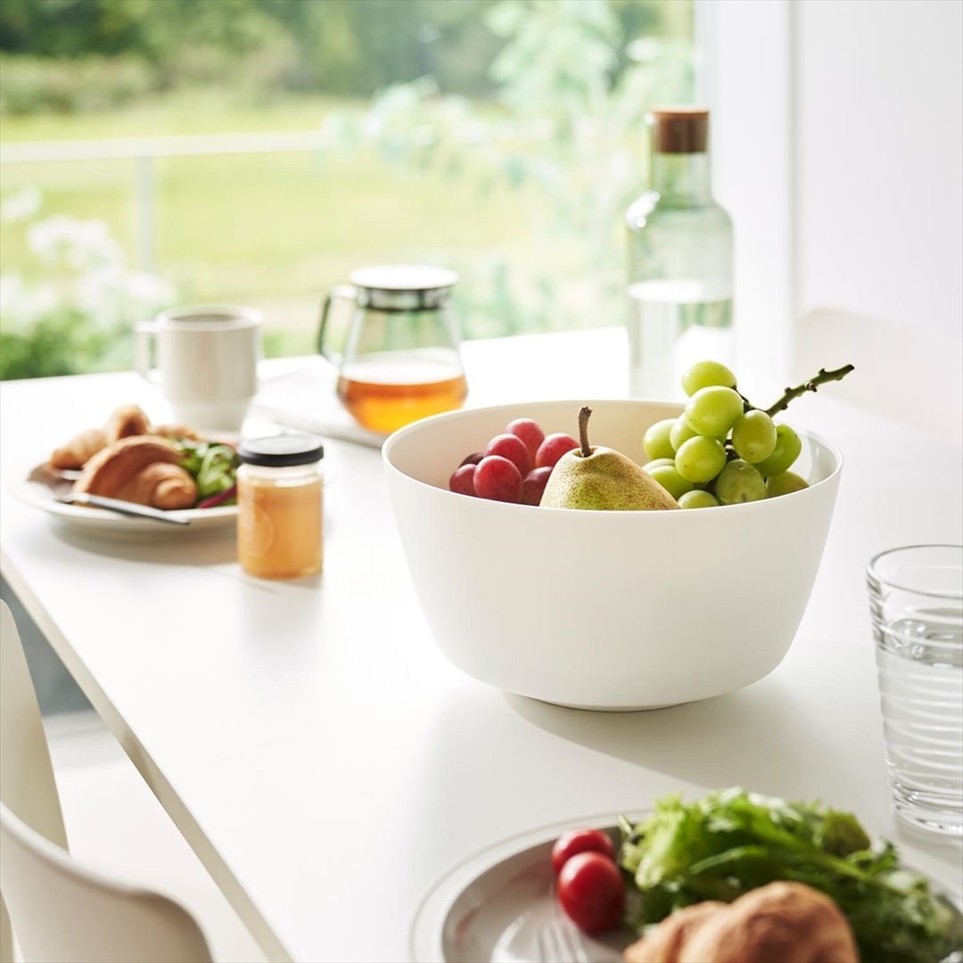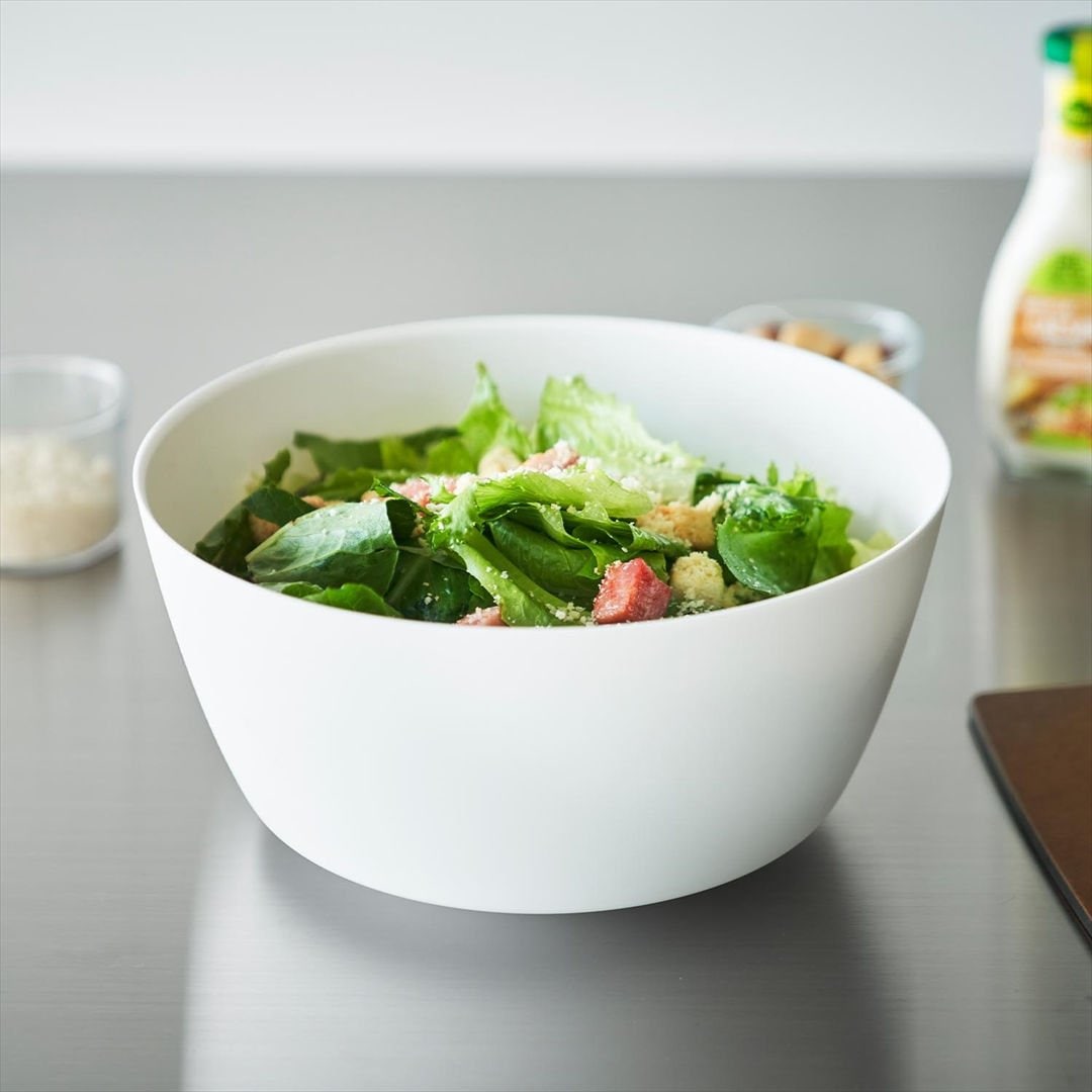 安定感抜群。 斜めがキープできる万能ボウル材料を混ぜ合わせるときに斜めの角度をキープしてくれるから手首が疲れにくい。卵や生クリームの混ぜ合わせがしやすくなった万能調理ボウルです。電子レンジにも使える耐熱タイプなのであらゆる調理に対応可能。スタイリッシュなデザインだから器としてそのまま食卓にも出せます。キッチンになじむ、2色のカラーバリエーションカラーは、清潔感のあるホワイト、シックなブラックをご用意しました。キッチンになじみやすいシンプルなモノトーンカラーです。お手持ちの調理ツールやテーブルウェアに合わせてお好みのカラーをお選びください。軽い力で角度をキープできる底面が傾斜構造になっていて、ボウルを傾けた際に斜めをキープしてくれる設計です。軽く持つだけで角度が保たれるので抑えている手首に負担が掛かりにくいのがうれしいポイント。混ぜている最中に斜めに傾けすぎて中身がこぼれる、なんてアクシデントを起こしづらく作業がスムーズです。電子レンジ・食洗機対応で使い勝手◎電子レンジにもご使用いただける耐熱ボウルです。電子レンジでの野菜の下茹でや、お菓子づくりでよく使う溶かしバターを作ったりもできます。ガラス製とは異なり非常に軽量なので重さを感じづらく扱いやすいです。食洗機にも対応しているのでお手入れもラクちんです。用途に合わせて選べる3サイズ展開調味料の混ぜ合わせやドレッシング作りにぴったりなSサイズ、野菜やフルーツなどを洗うのに程よいサイズ感のMサイズ、かさばる葉物野菜や家族でシェアするのにちょうど良いLサイズの3サイズをご用意しました。ご使用シーンに合わせて最適なサイズをお選びください。※こちらの商品は『傾けて混ぜやすい調理ボウル L 電子レンジ対応』の商品となり、他サイズは別ページにてご用意しております。