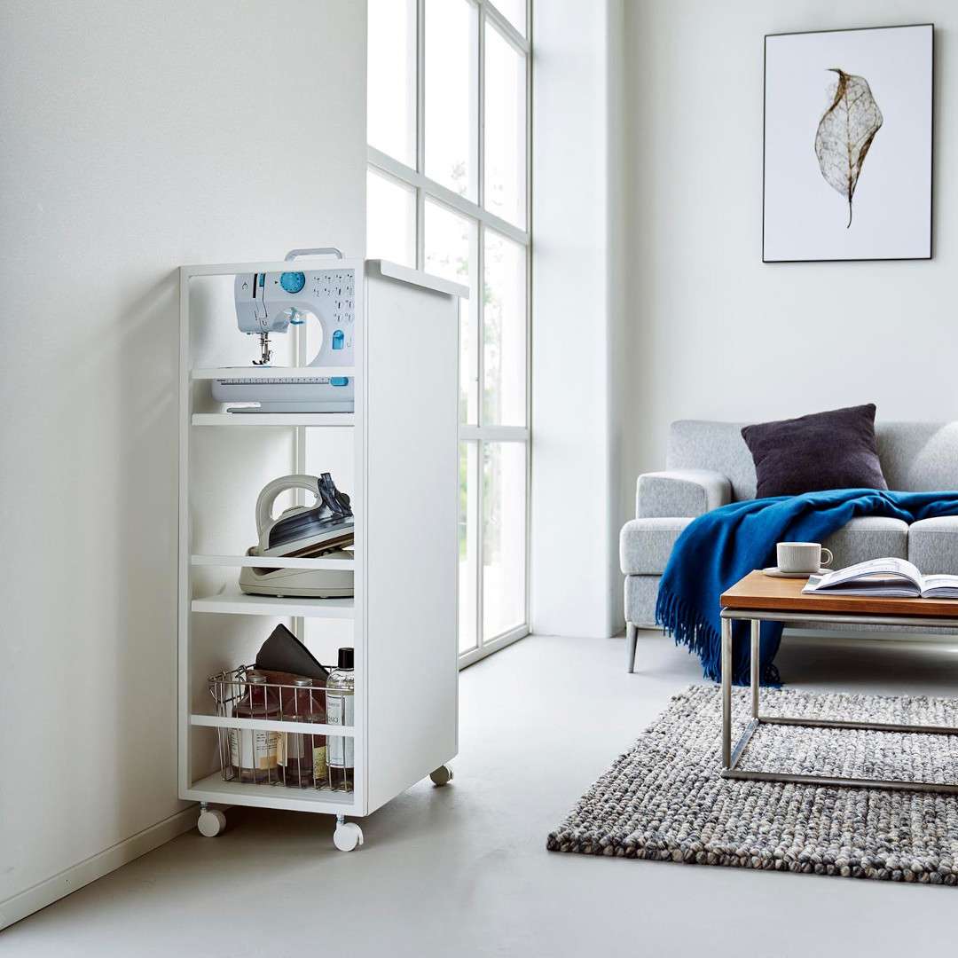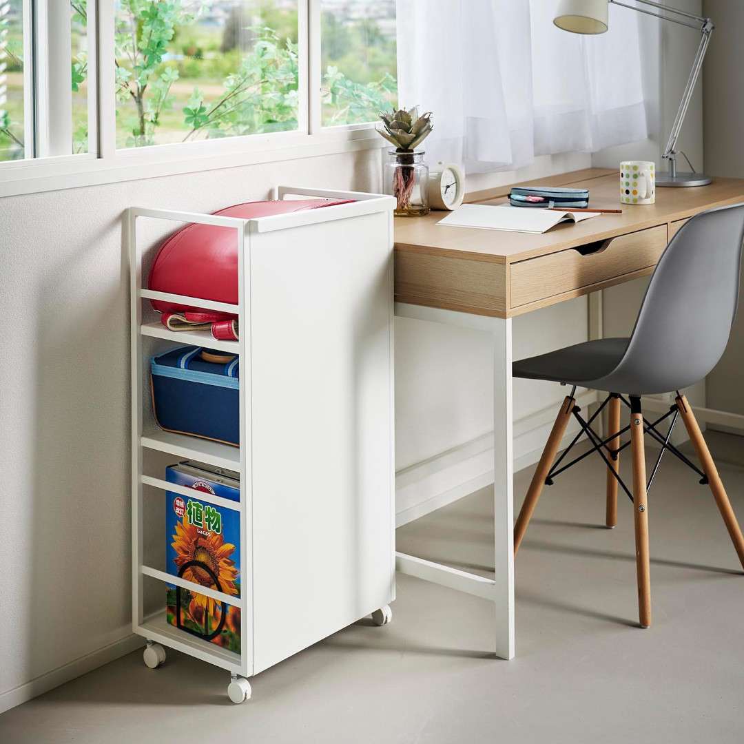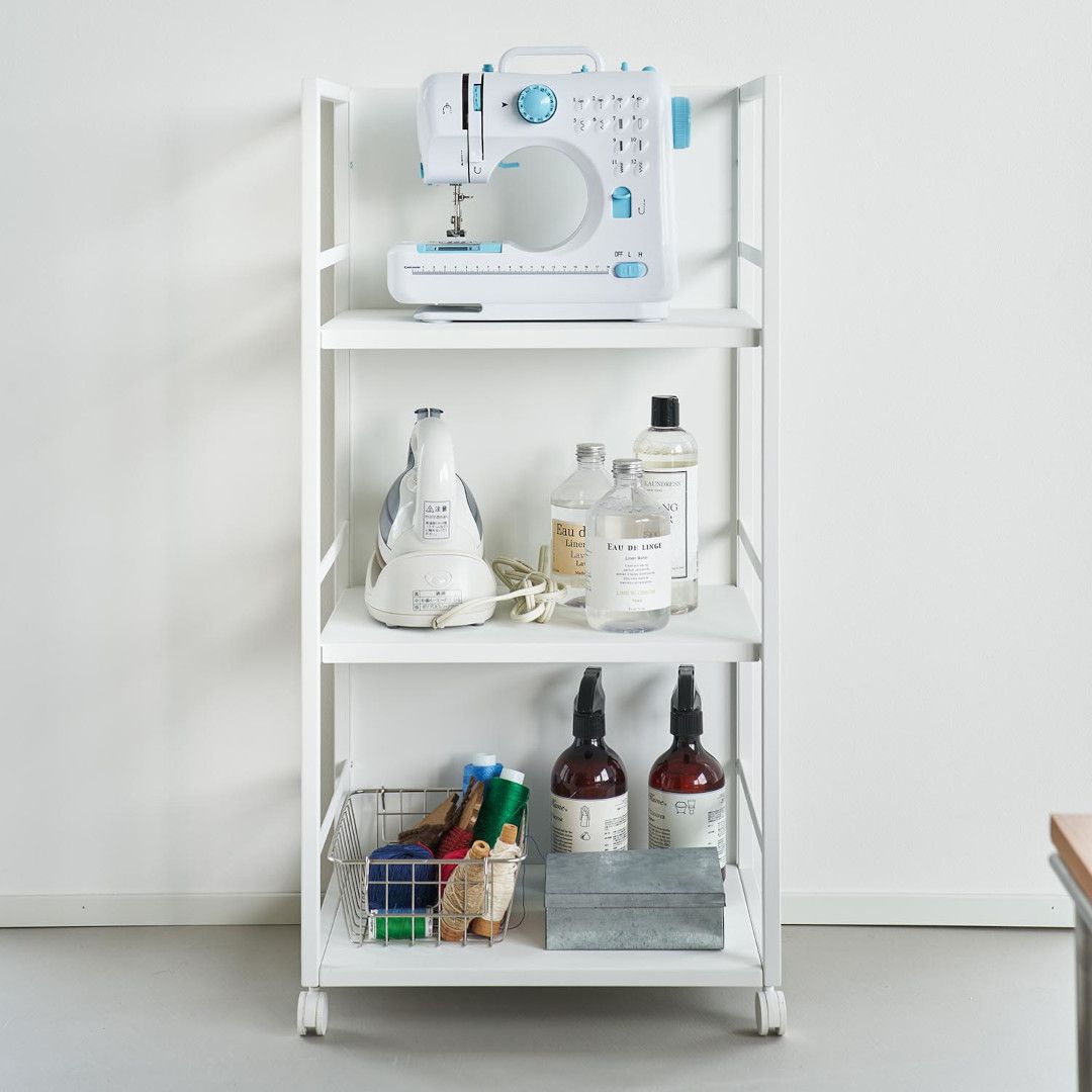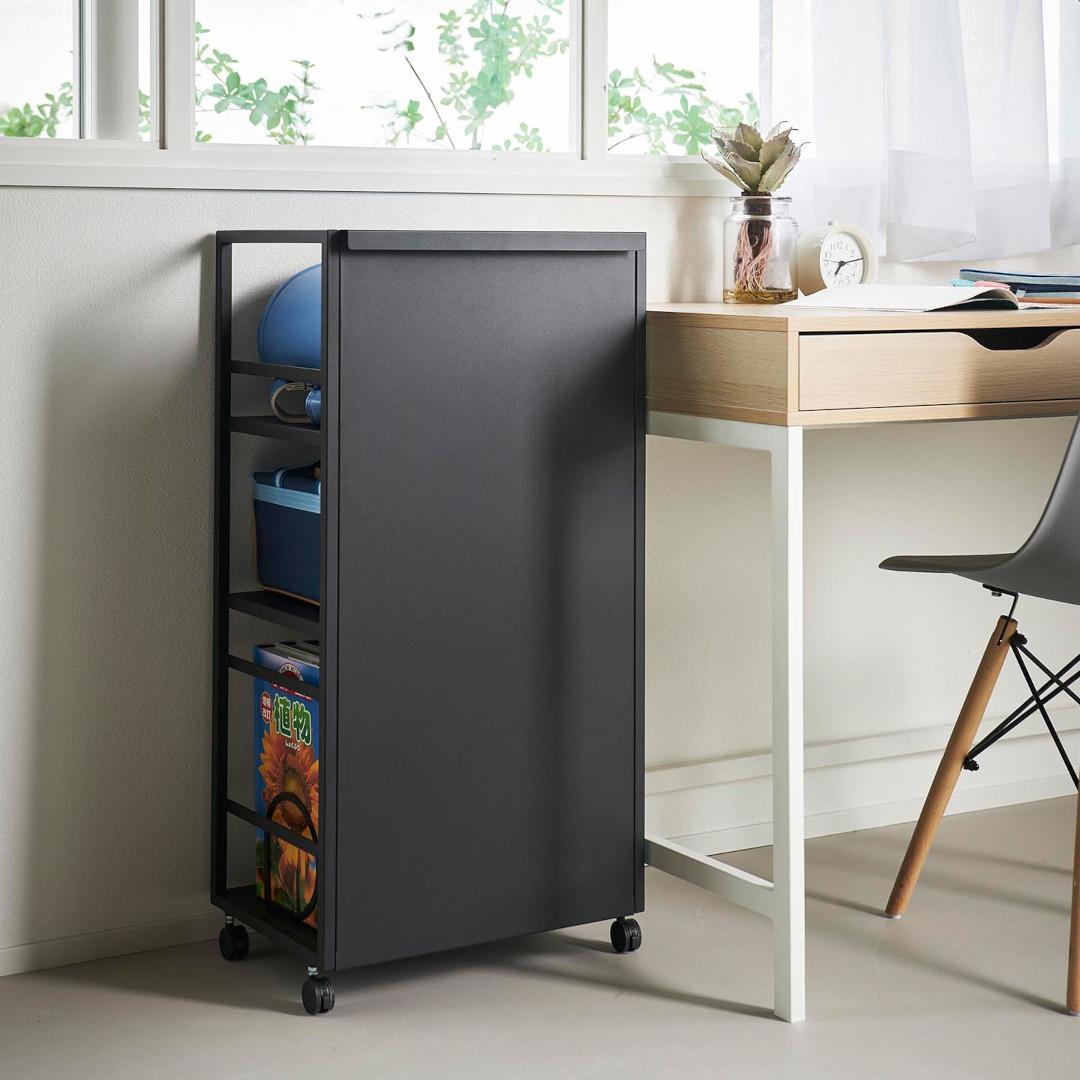 生活感をシャットアウト。 目隠しワゴン子ども部屋、書斎、リビングなどでかさばる物を目隠ししながら収納できるキャスター付き3段ワゴンです。ワゴンの前後を裏返せば収納物を隠せるのでお部屋がすっきりとして見えます。小物収納に使えるフック4つ付きです。どのお部屋にもなじみやすい、2色のカラーバリエーションカラーは、明るい印象のホワイト、スタイリッシュなブラックをご用意しました。リビングにも書斎にもマッチするシンプルなモノトーンカラーです。お部屋の雰囲気にあわせてお好みのカラーをお選びください。子ども部屋でランドセル置き場にも一段目にはランドセル、二段目には絵の具やお習字の道具、三段目には図鑑や国語辞典など分類しながらすっきりと収納できます。学用品がひとまとめに片付くのでお部屋がすっきりとし、物の定位置を決めることでお子さんの片付け習慣も身に付きます。生活雑貨・日用品の収納にミシンやアイロンなど毎日は使わないけれど、必要なシーンが必ずあるアイテムも目隠しワゴンに収納。めったに使わないアイテムこそ取り出しにくい場所に収納していると途端に面倒くさくなってしまうので、普段は隠していつでも使えるように。収納物に合わせて棚の高さを二段階調整サイドフレームに棚板を掛けて簡単に取り付けられます。工具などは不要で、3つの棚はすべて収納する物に合わせて二段階で調整が可能です。付属のフックをサイドフレームに取り付ければ小物を引っ掛けて収納もできます。